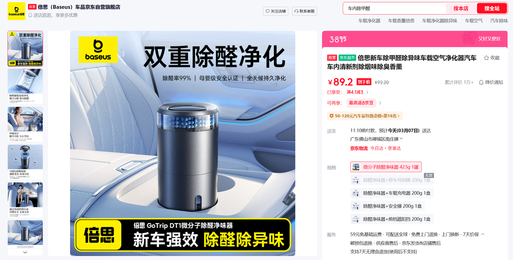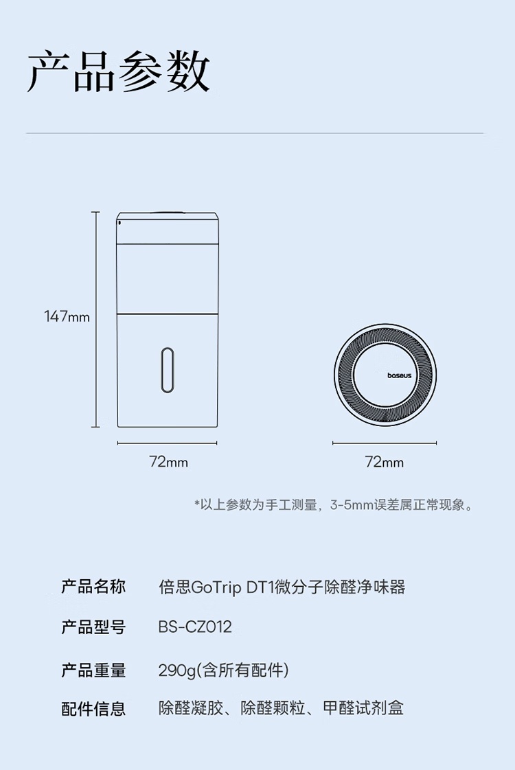 Baseus/倍思 GoTrip DT1 微分子除醛净味器车载空气净化器 BS-CZ012