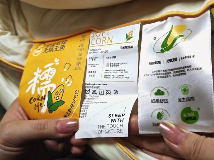 2)被芯采用由玉米淀粉发酵聚合而成的玉米纤维,轻柔顺滑,吸湿透气性好,有类似鹅绒的软和“呼吸感的舒服”。