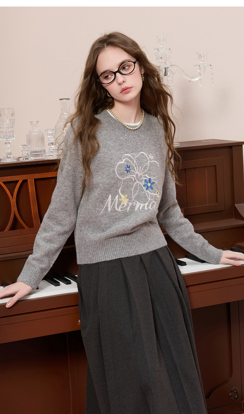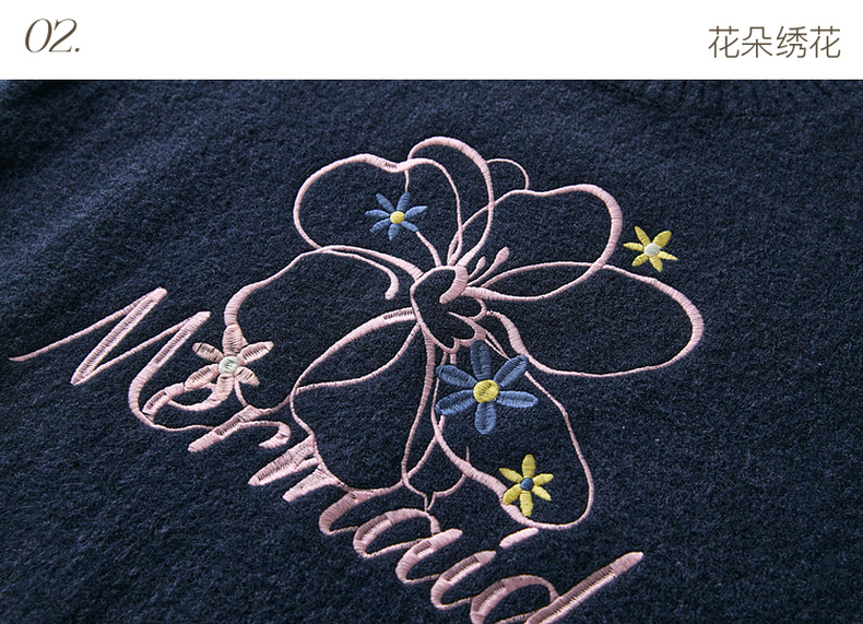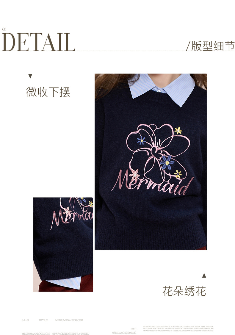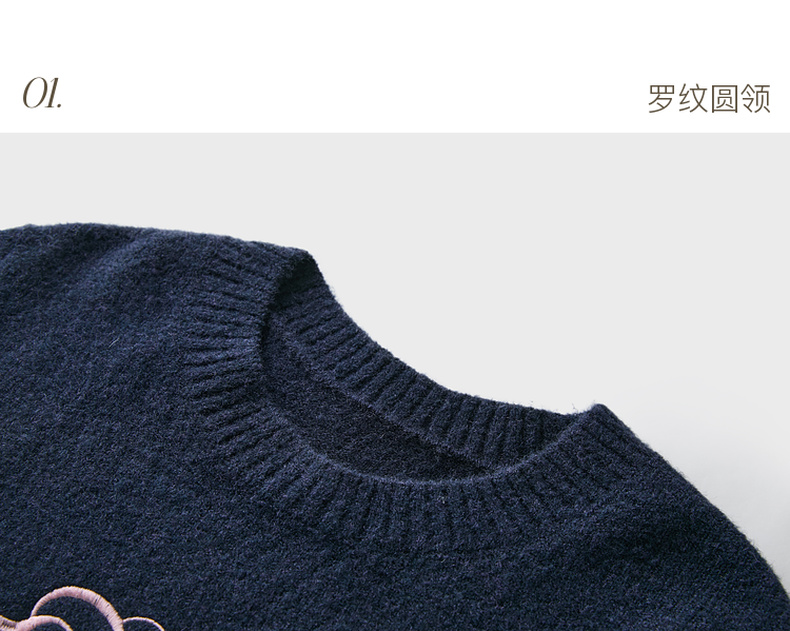 三彩2025冬季新款圆领绣花字母针织衫长袖套头上衣慵懒宽松M