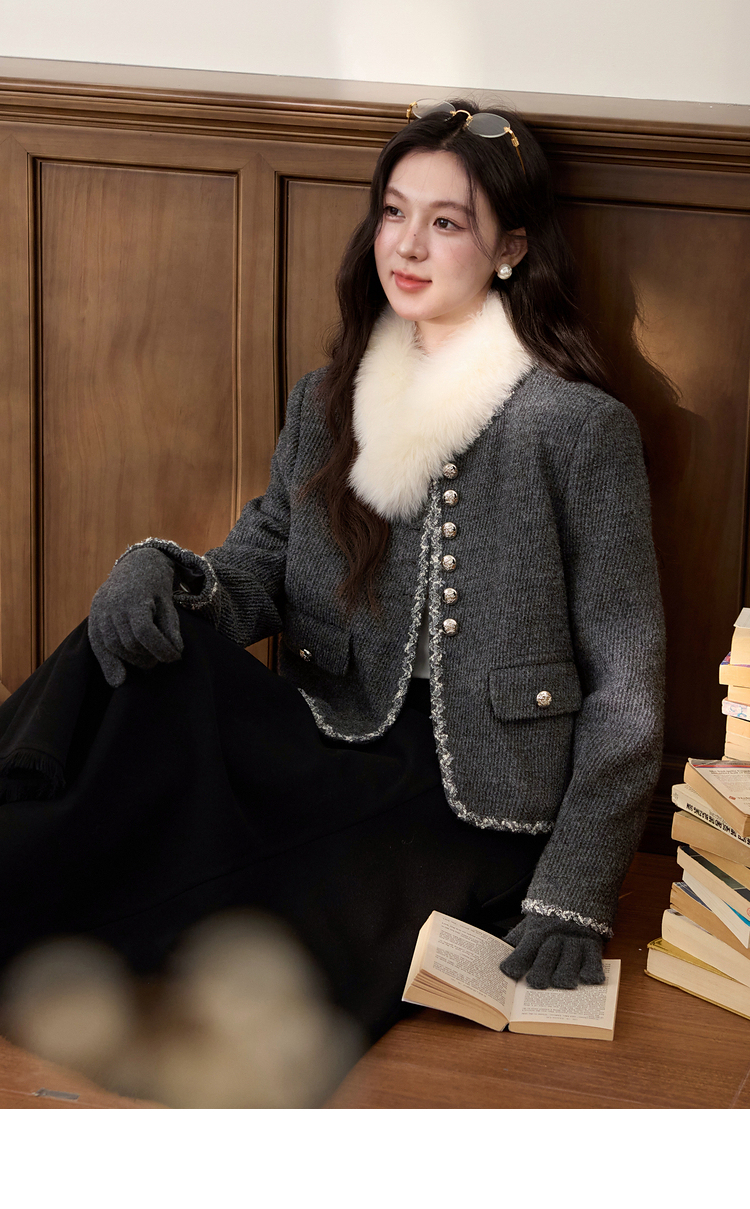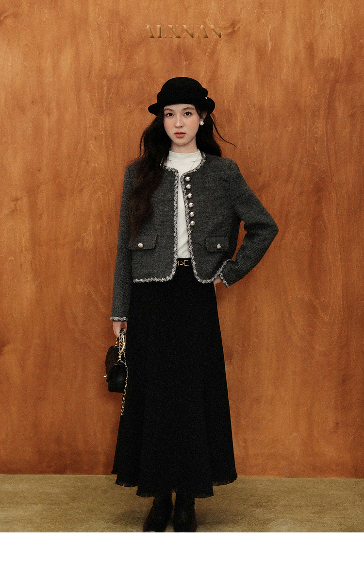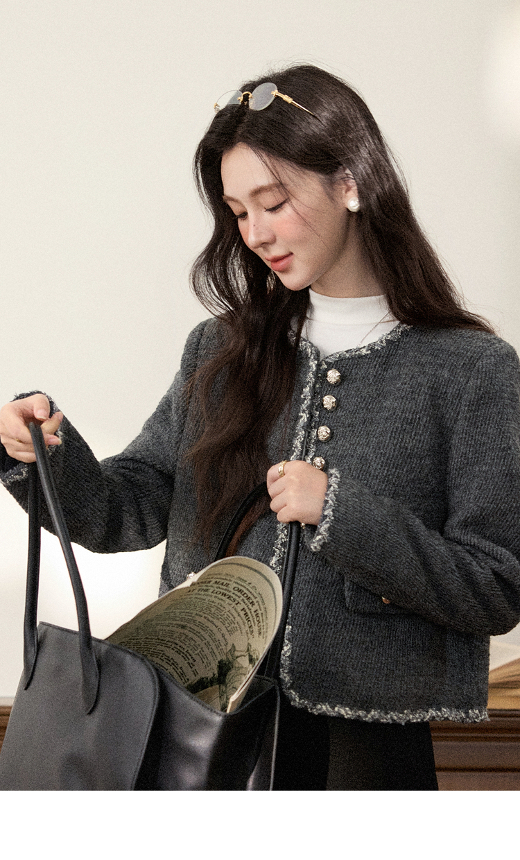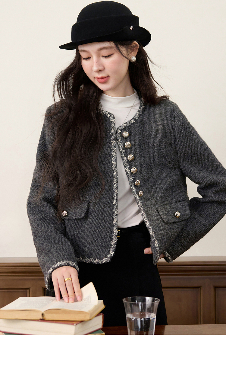 鹿向南「松柏回廊」气质灰色小香风短外套女秋新款轻奢千金风上衣