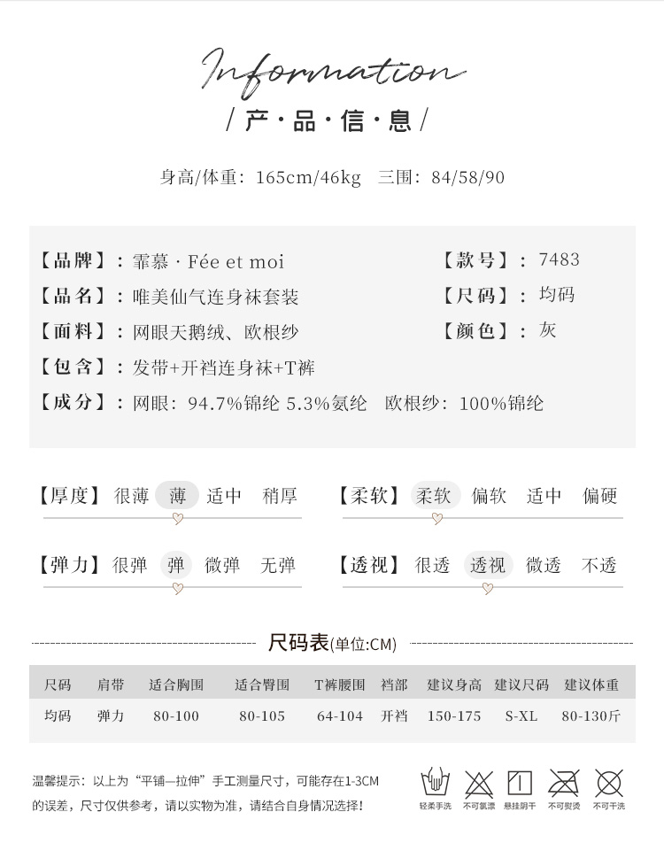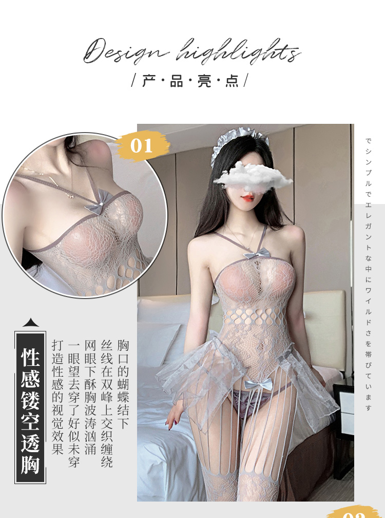 【情趣内衣】霏慕 唯美仙气网袜制服连身袜套装7483