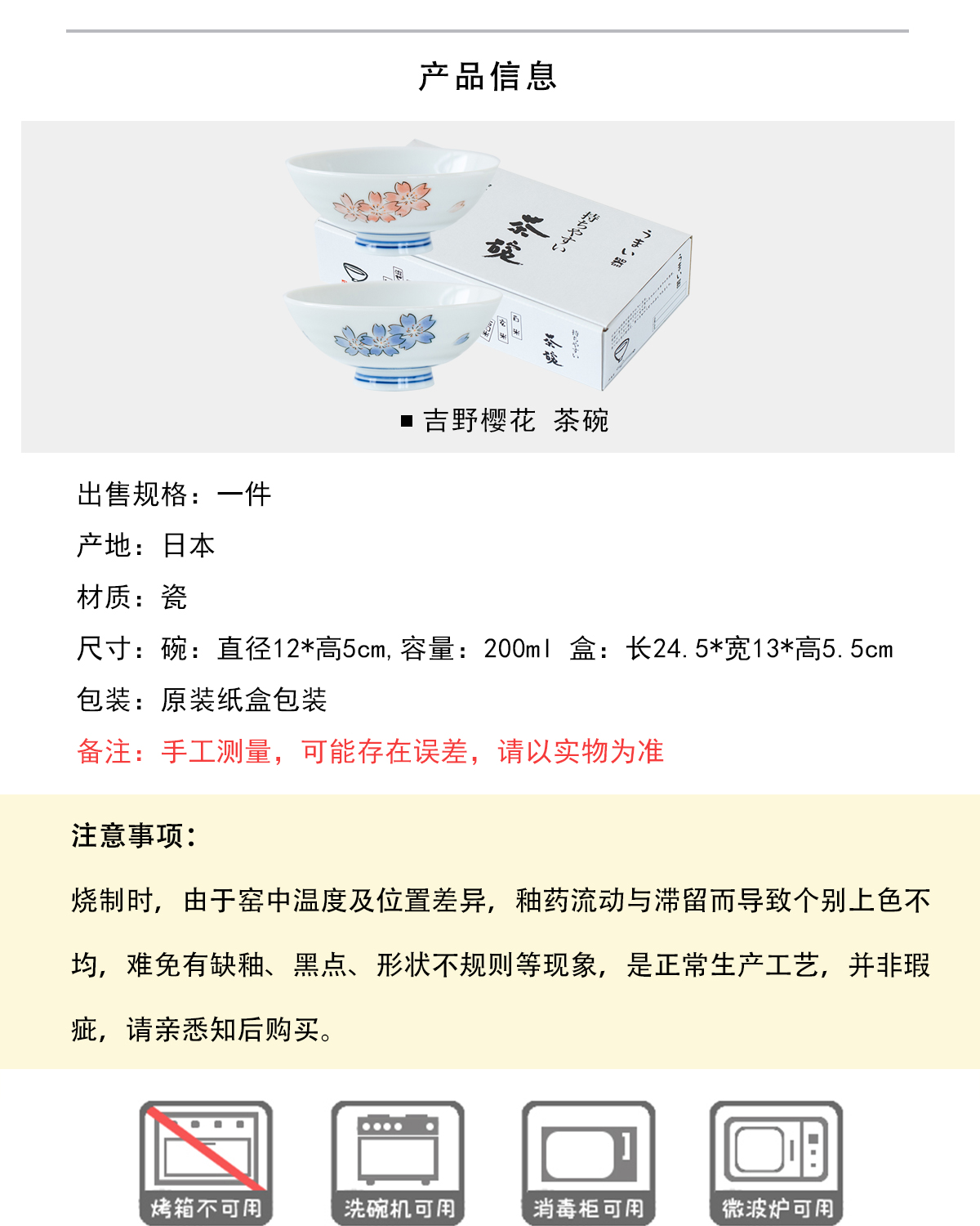 日本进口西庵窑手感舒适茶碗套装吉野樱
