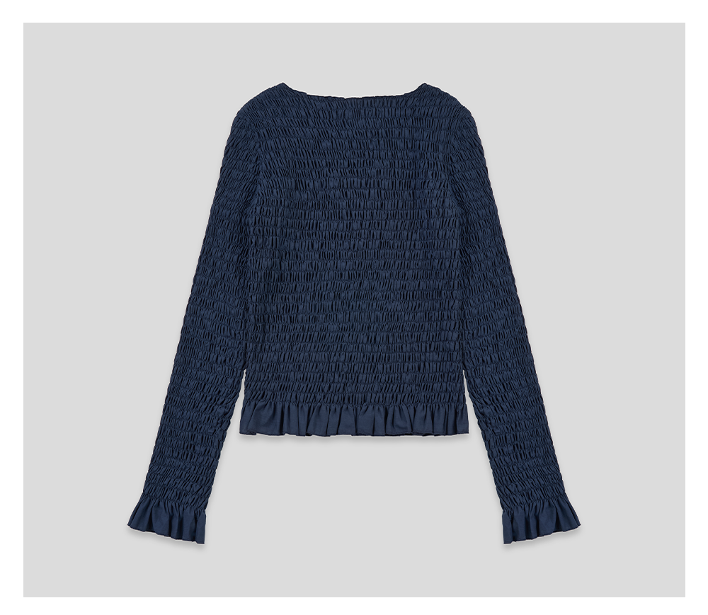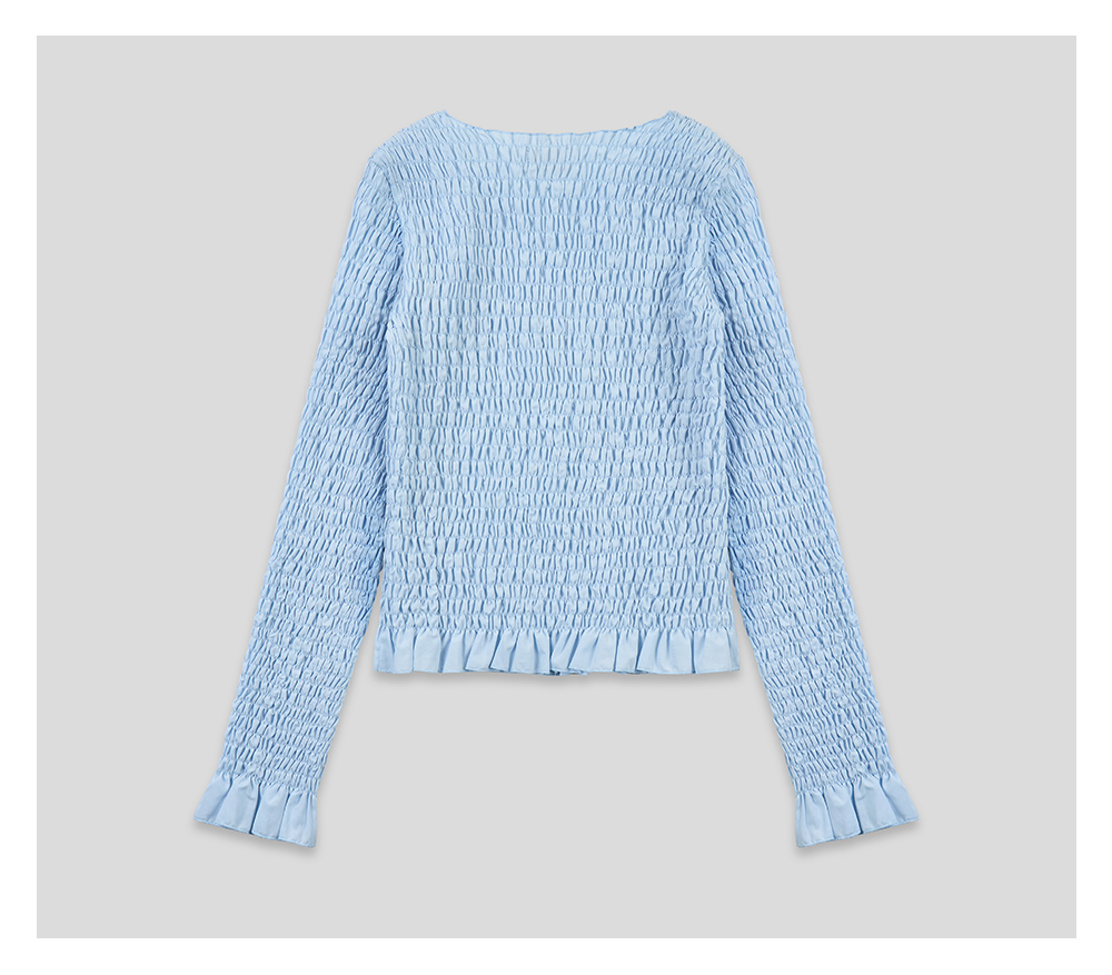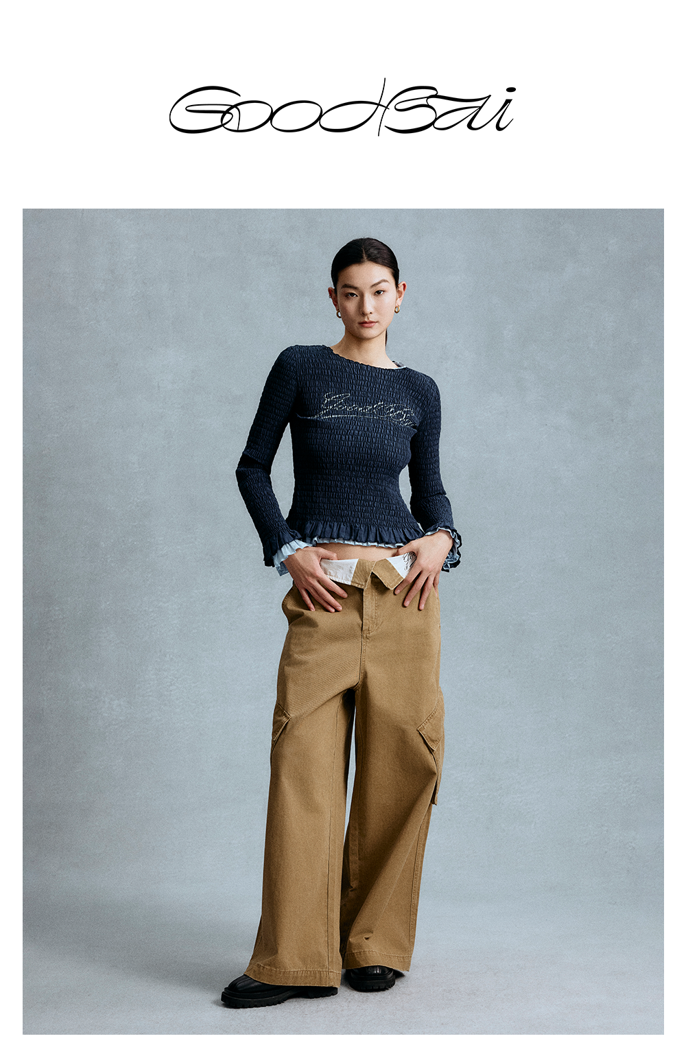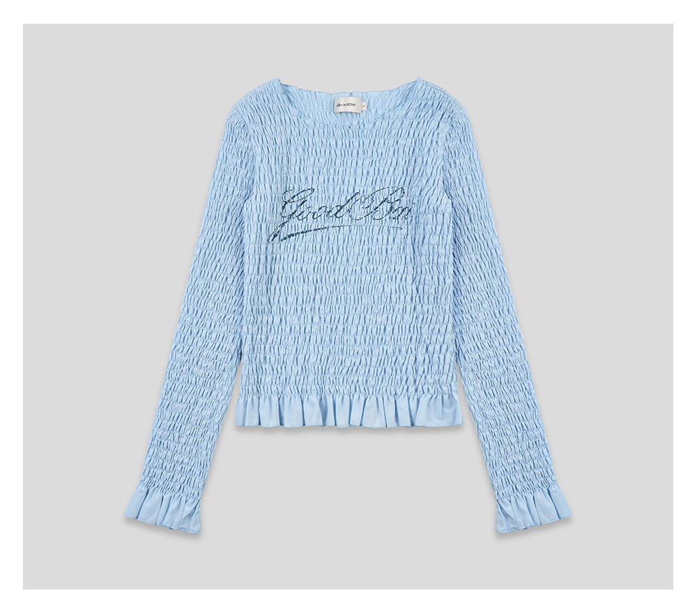 GOODBAI 斜体logo印花褶皱面料收身长袖T恤