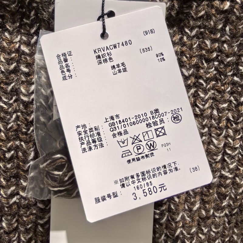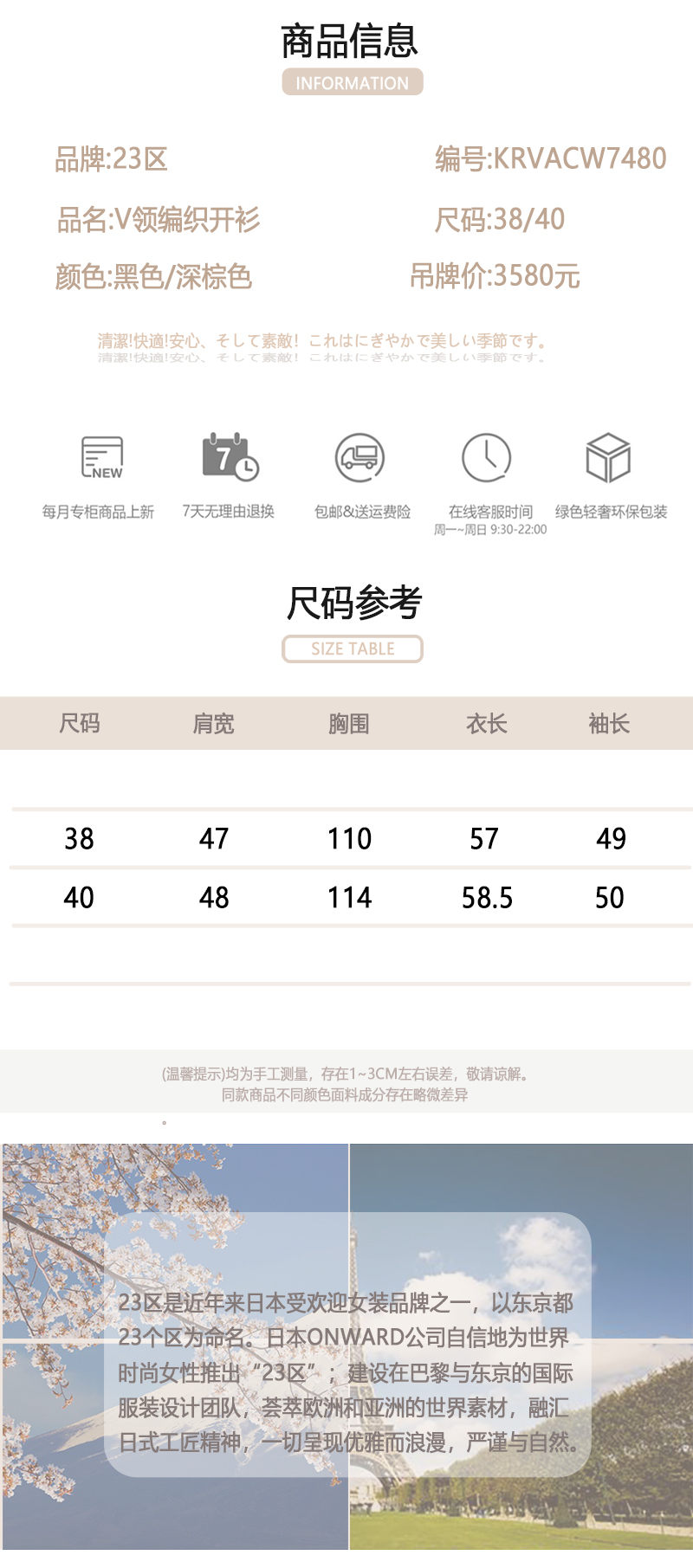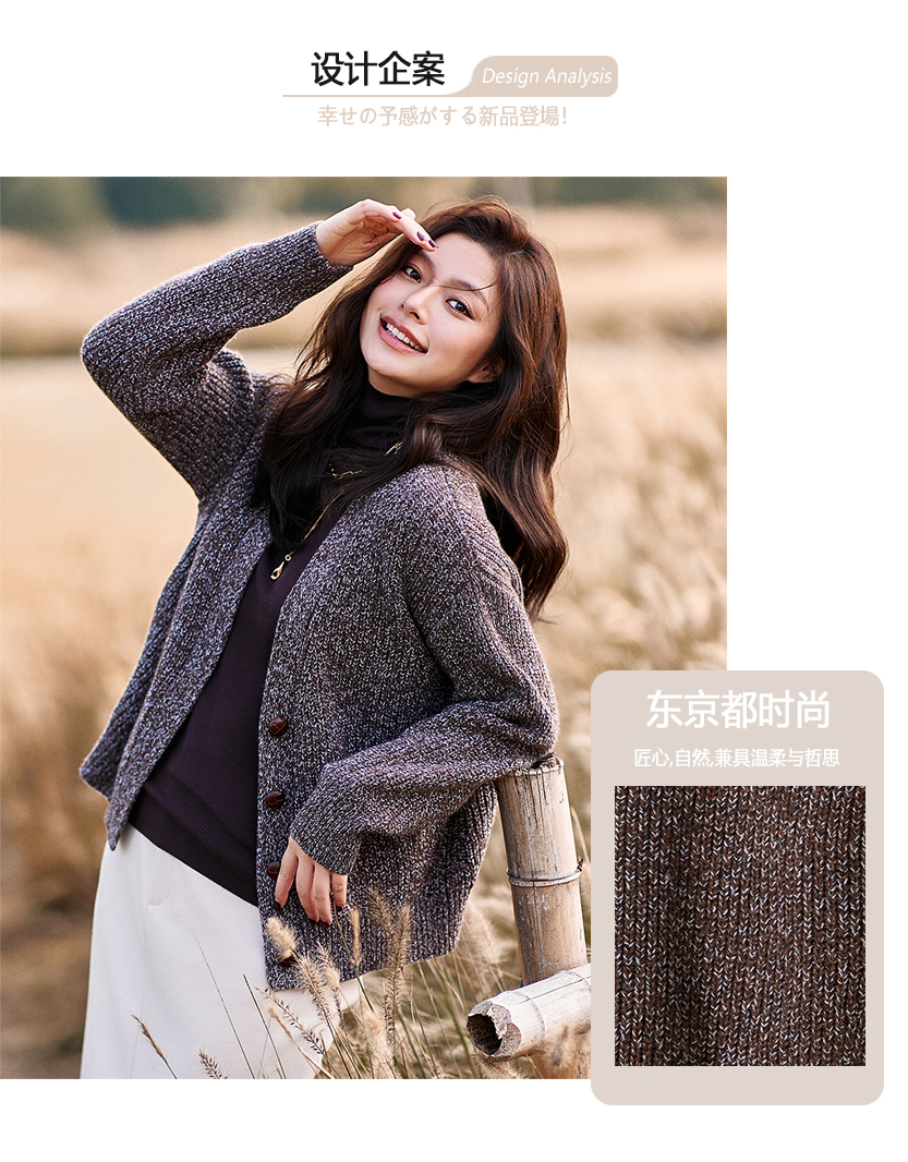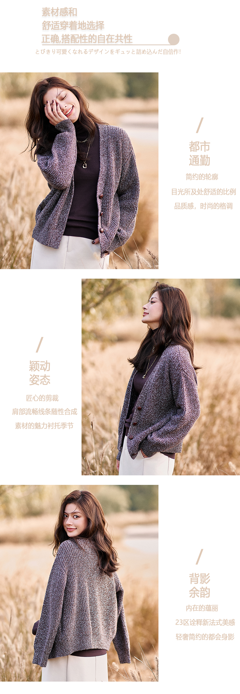 23区日系秋季通勤宽松羊毛羊绒混纺V领毛衣开衫针织毛衣商场同款