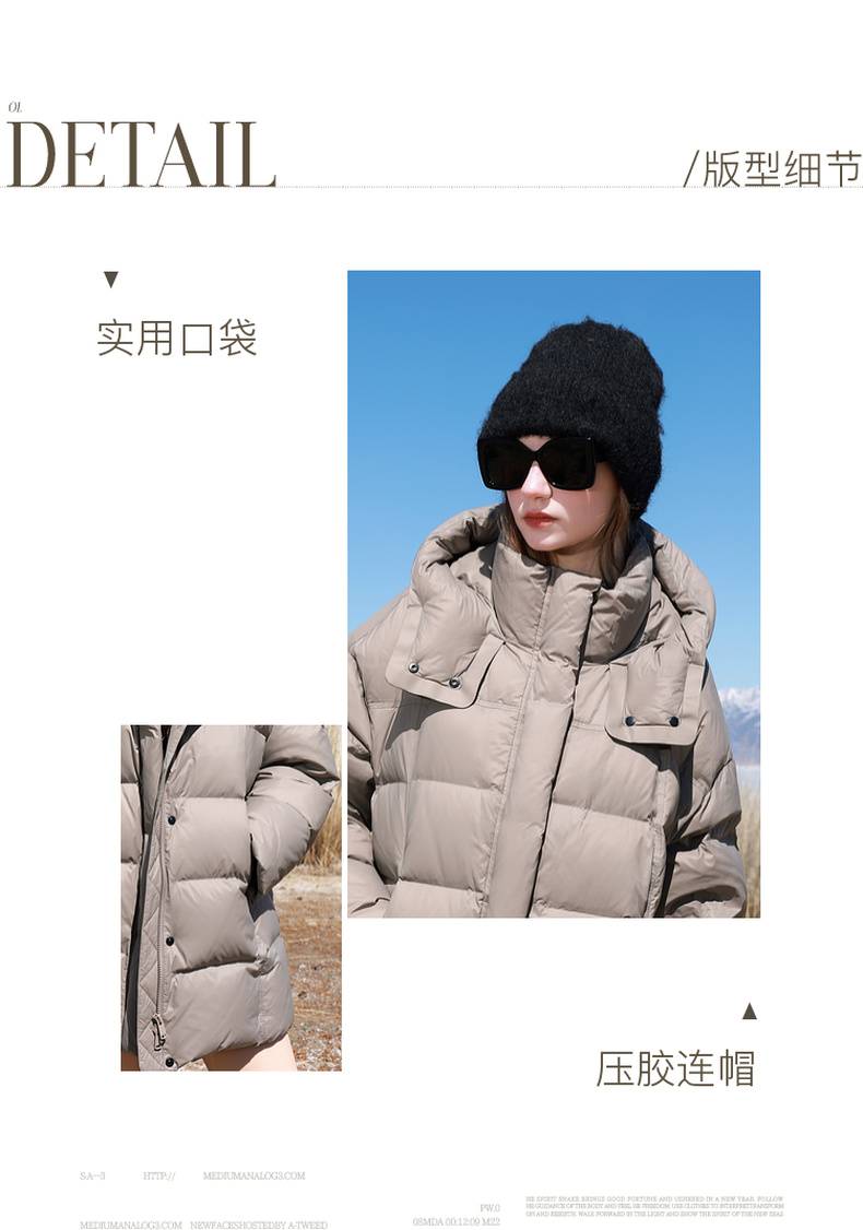 【90白鹅绒】三彩2025冬季新款连帽鹅绒服防水羽绒服中长M