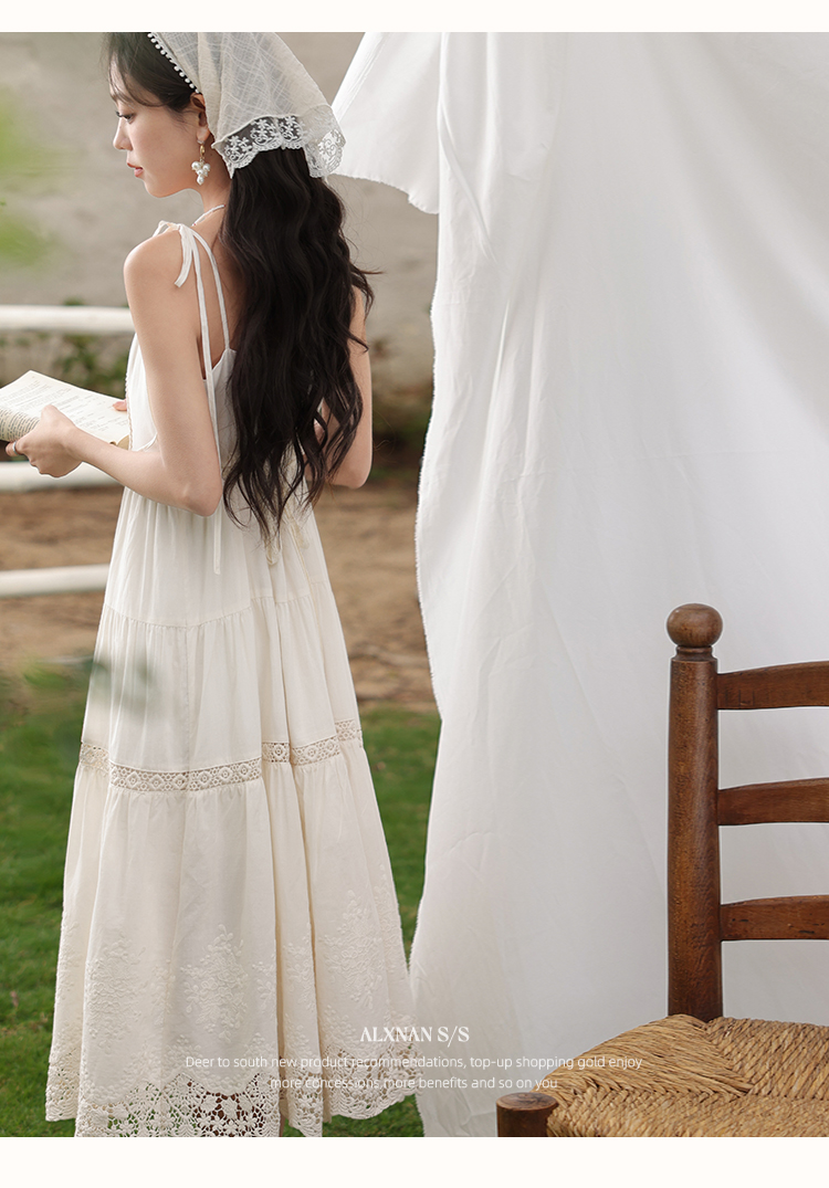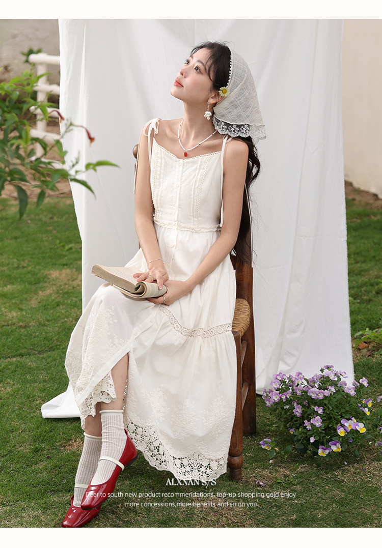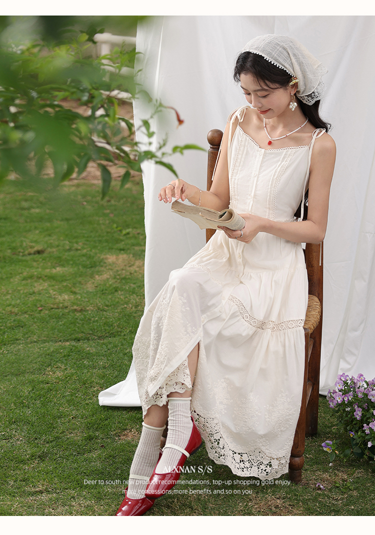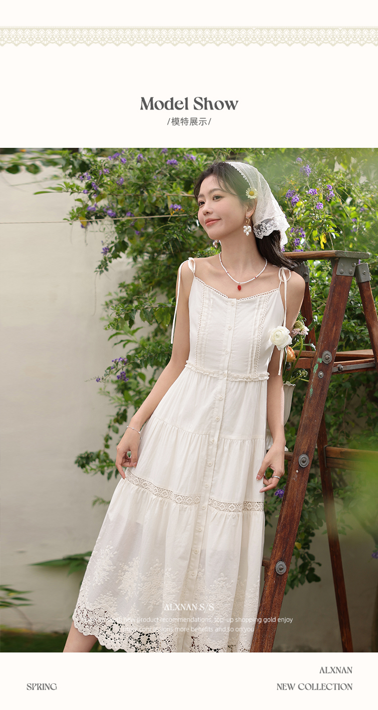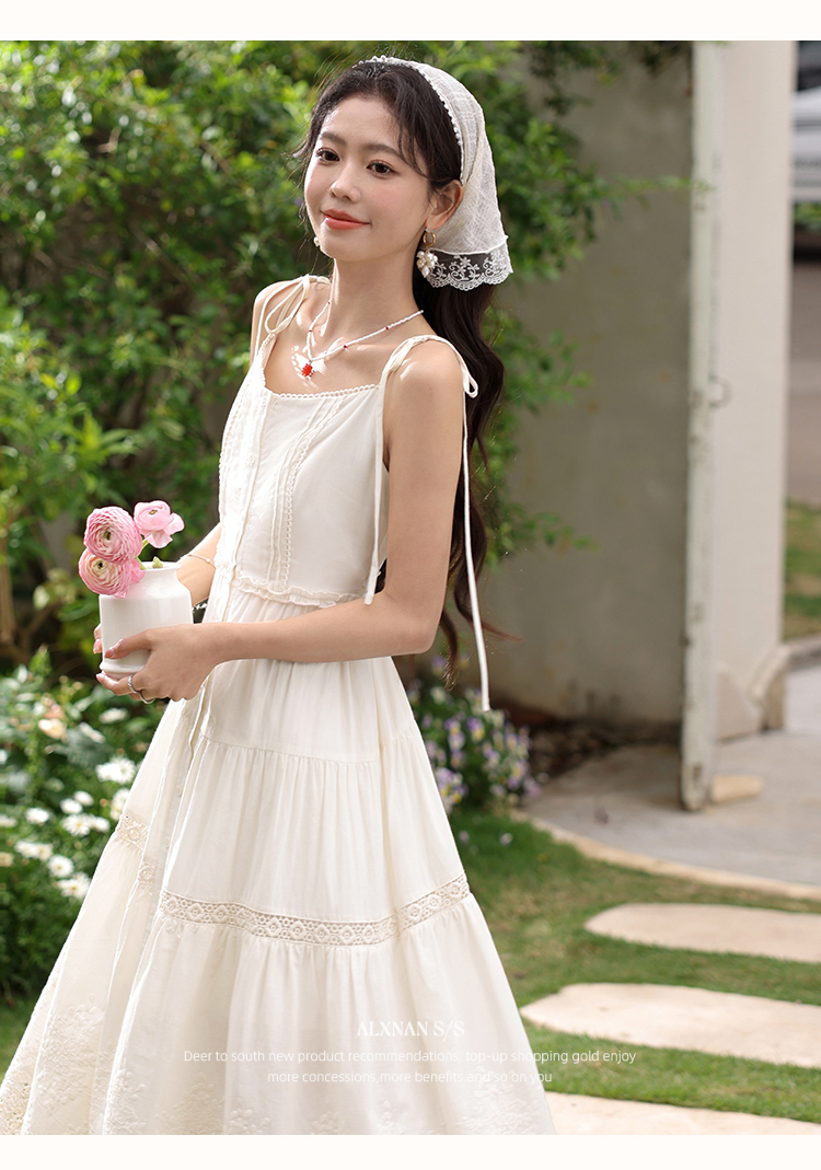 鹿向南「椿野之诗」杏色连衣裙2025夏装新款无袖裙子QYM002473