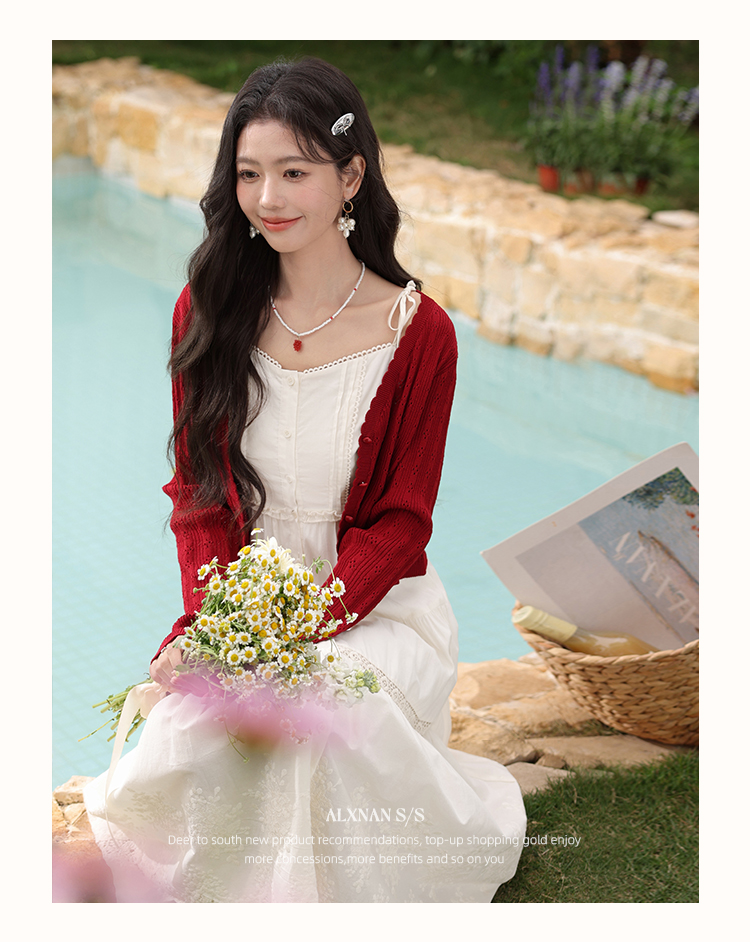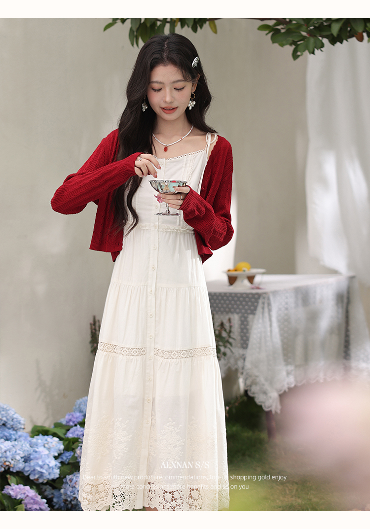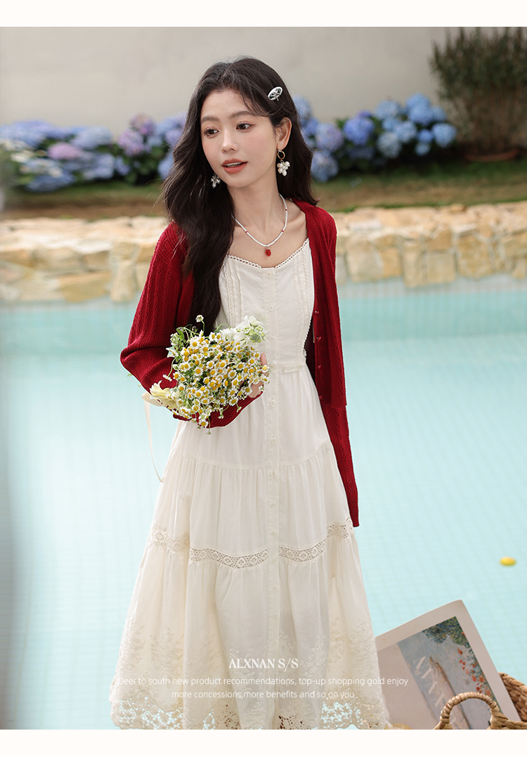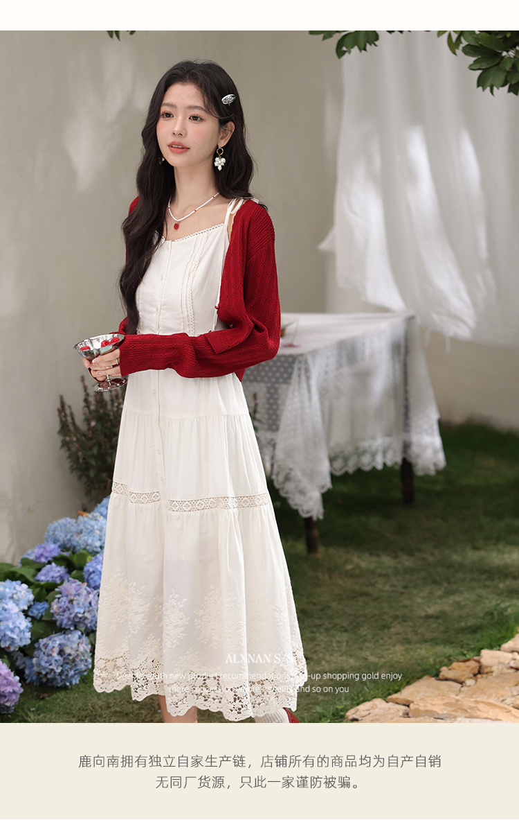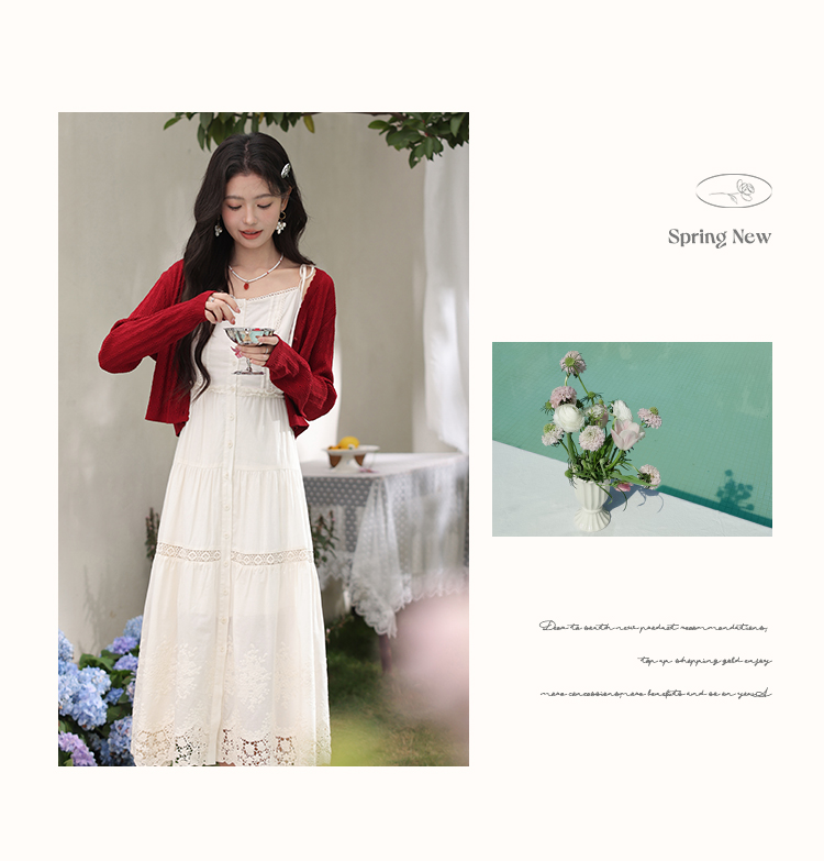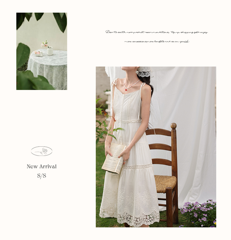 鹿向南「椿野之诗」杏色连衣裙2025夏装新款无袖裙子QYM002473