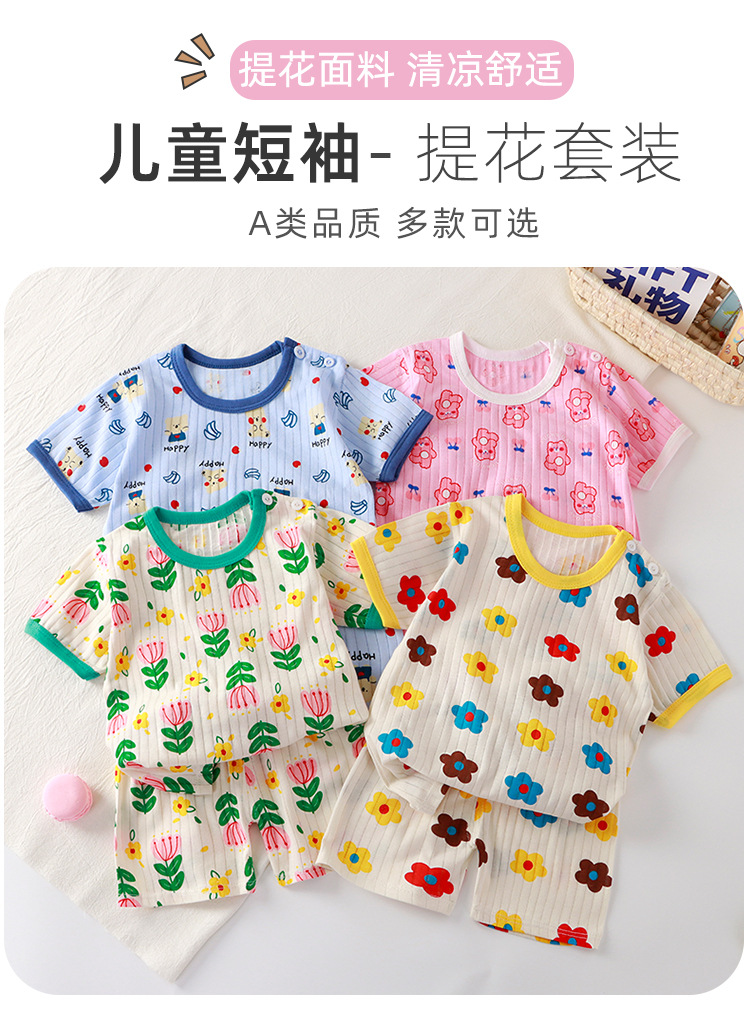 【39/2套】儿童短袖套装A类纯棉韩版T恤宝宝夏季童装短袖短裤家居服聚