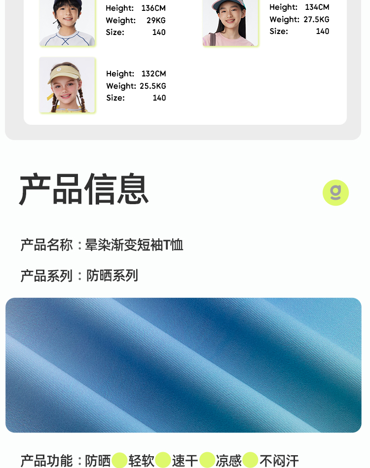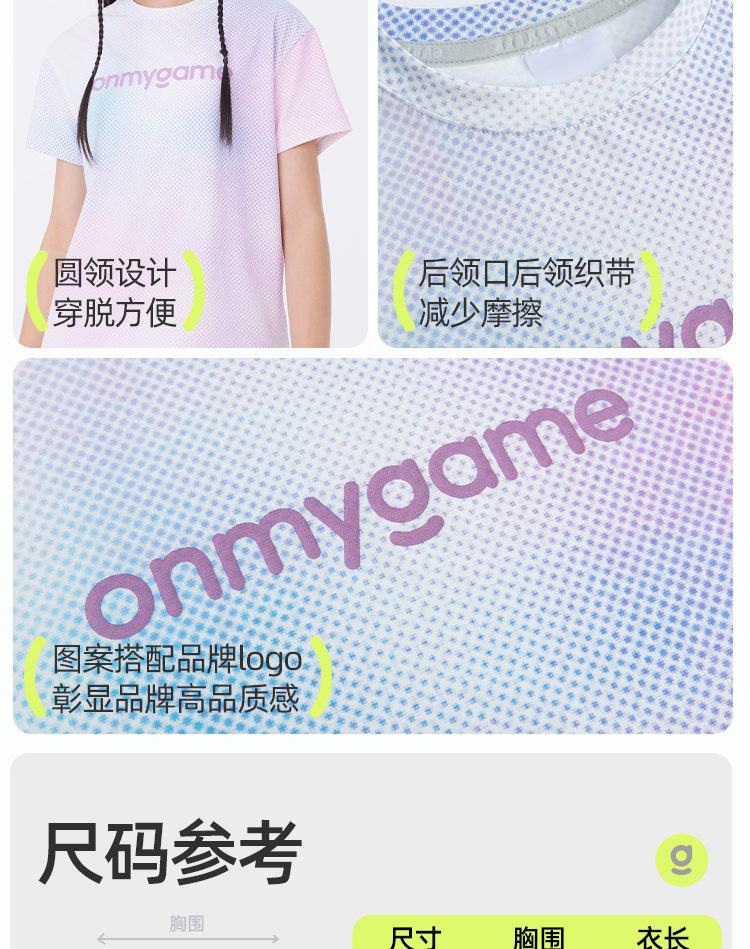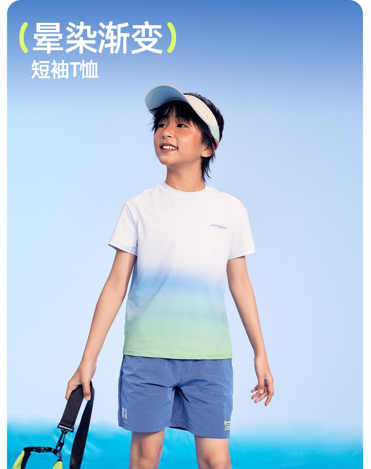 onmygame【晕染渐变】男女童短袖速干儿童T恤凉感2025年夏季新款