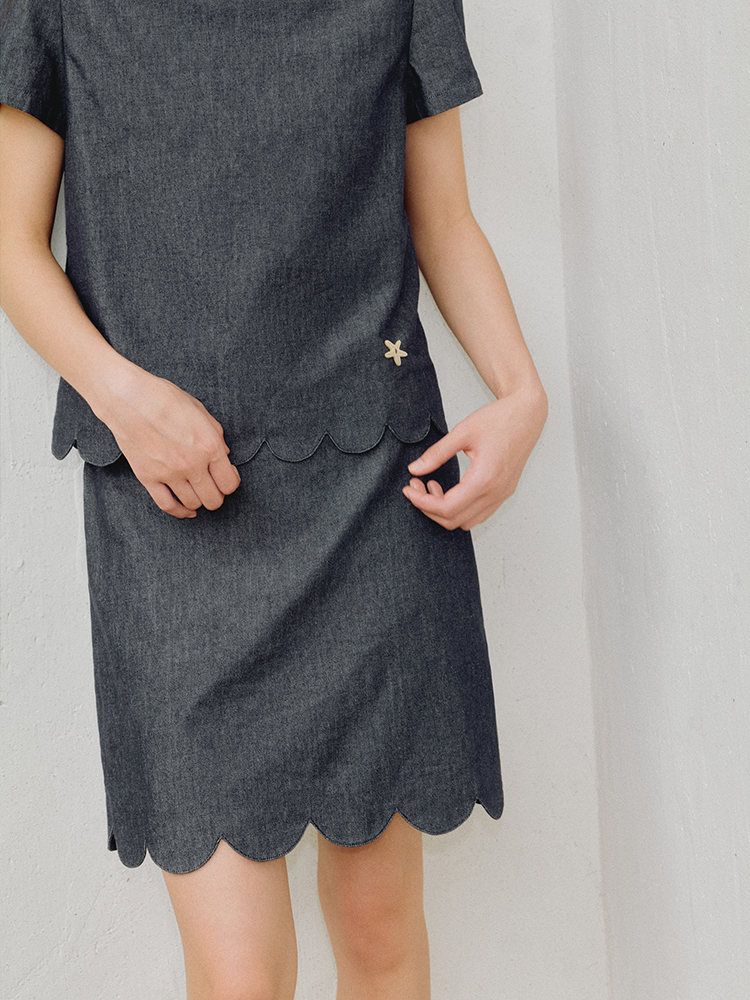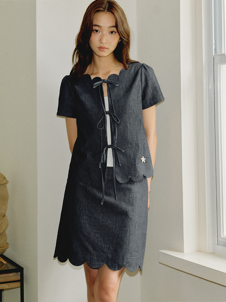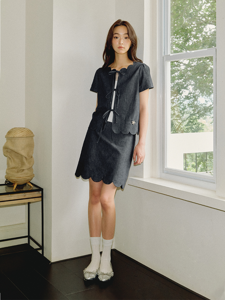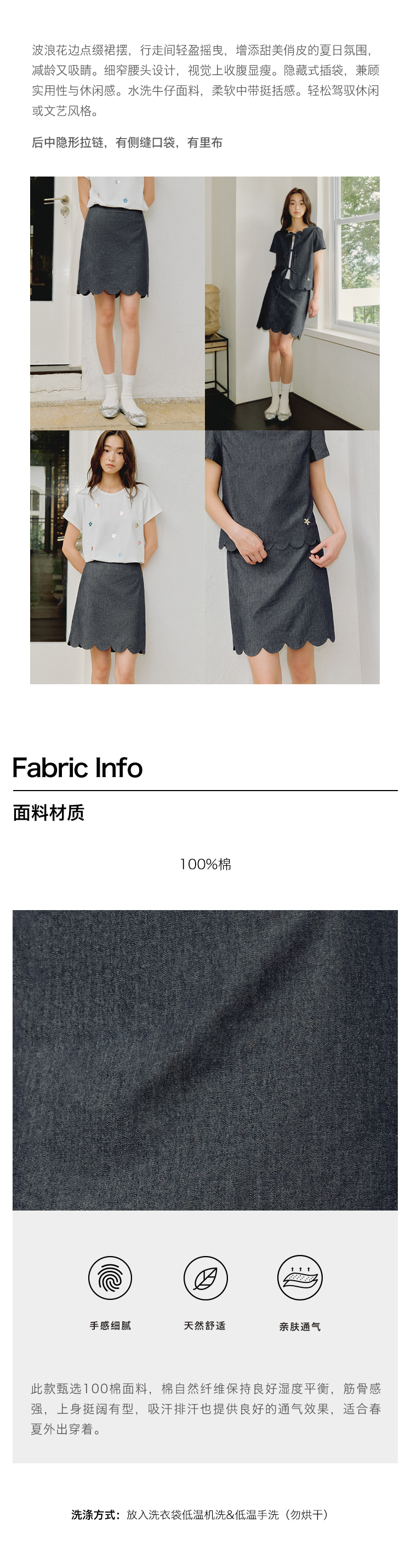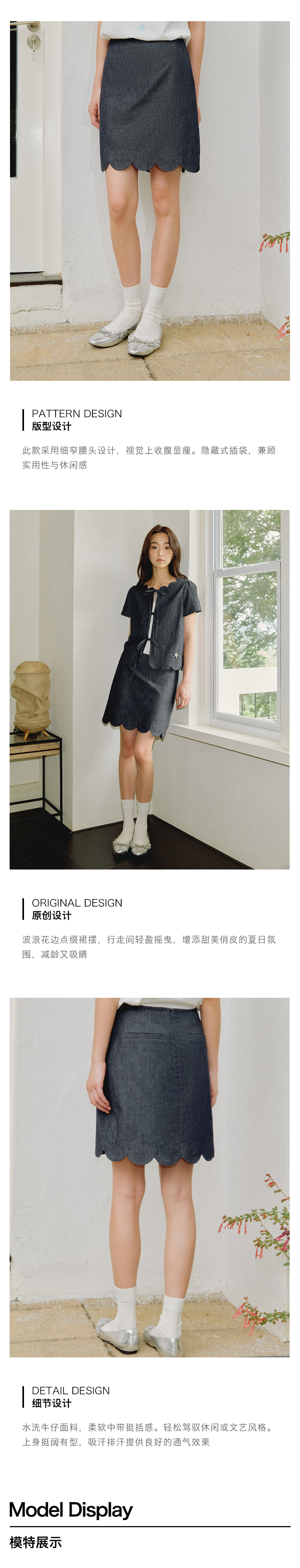 ForPoem 现货 25/SS原创设计100棉牛仔花瓣边半身裙