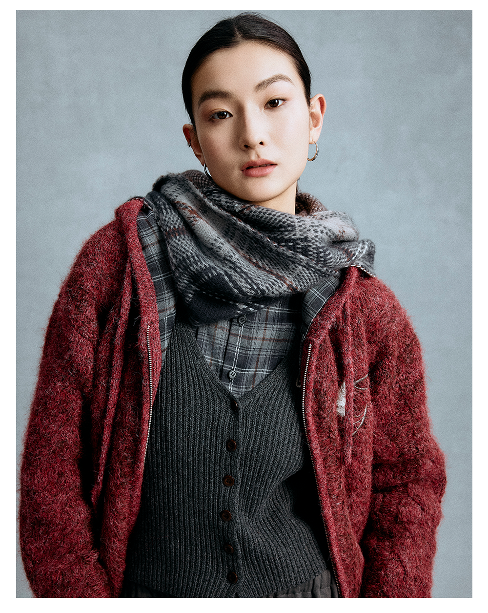 GOODBAI 格纹连帽多种穿搭长款围巾