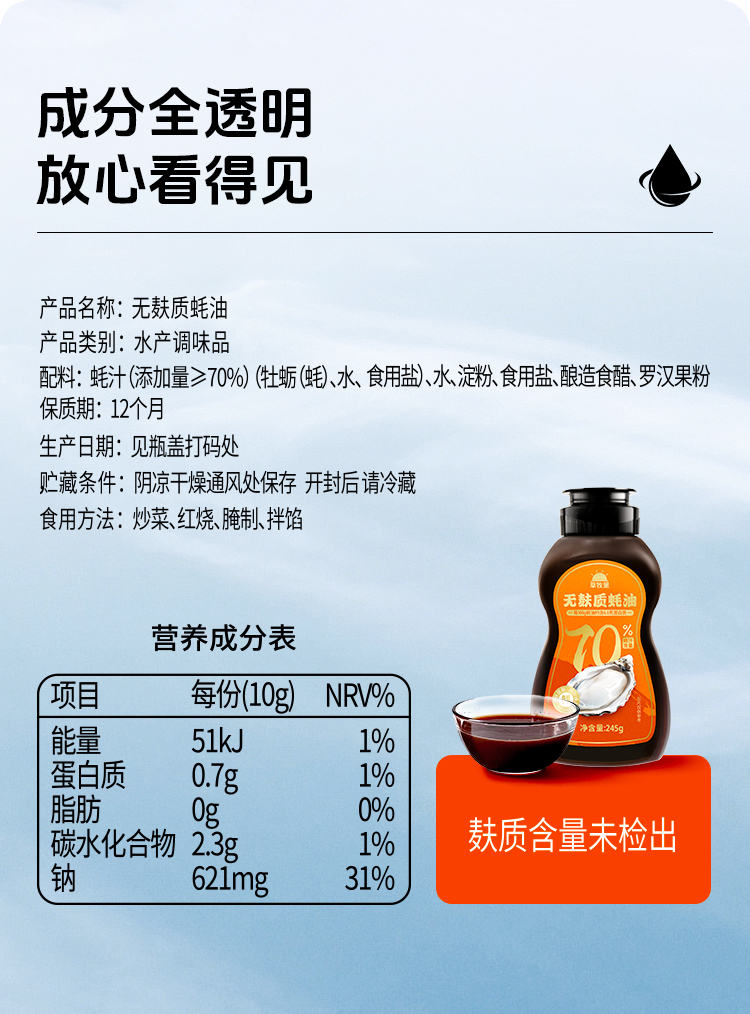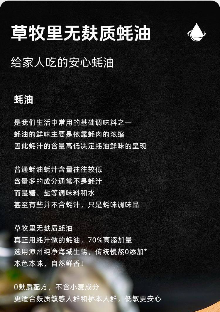 【本色本味】草牧里 无麸质蚝油 245g/瓶 5道工艺还原蚝鲜