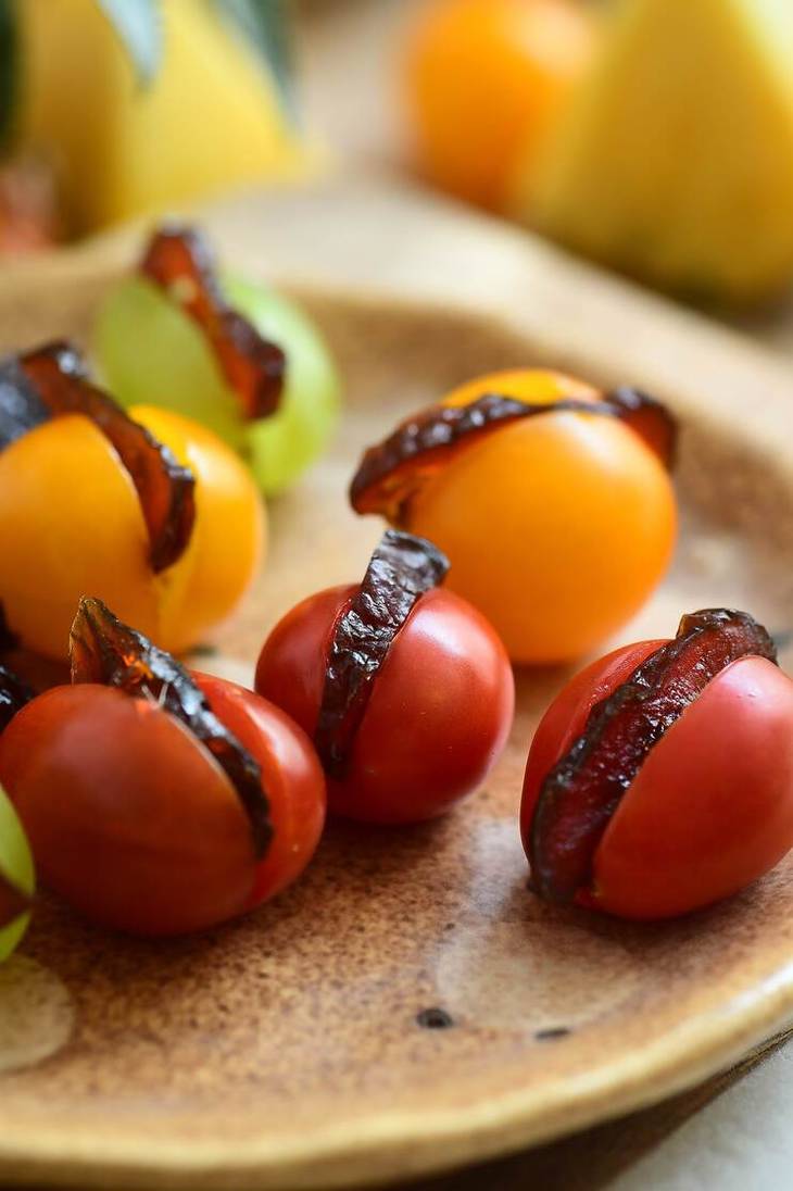 ✅ 万物皆可夹的公式手册 12种小创意吃法来分享。 /水果派对/ ① 乌梅凤梨:切片夹入,冷藏1小时=热带风情tapas ② 乌梅番茄:对半挖籽填入=爆汁分子料理 ③ 乌梅葡萄:冷冻后夹入=清甜冰沙球 ④ 乌梅荔枝:去核填入→冷冻2h=夏天限定冰沙球