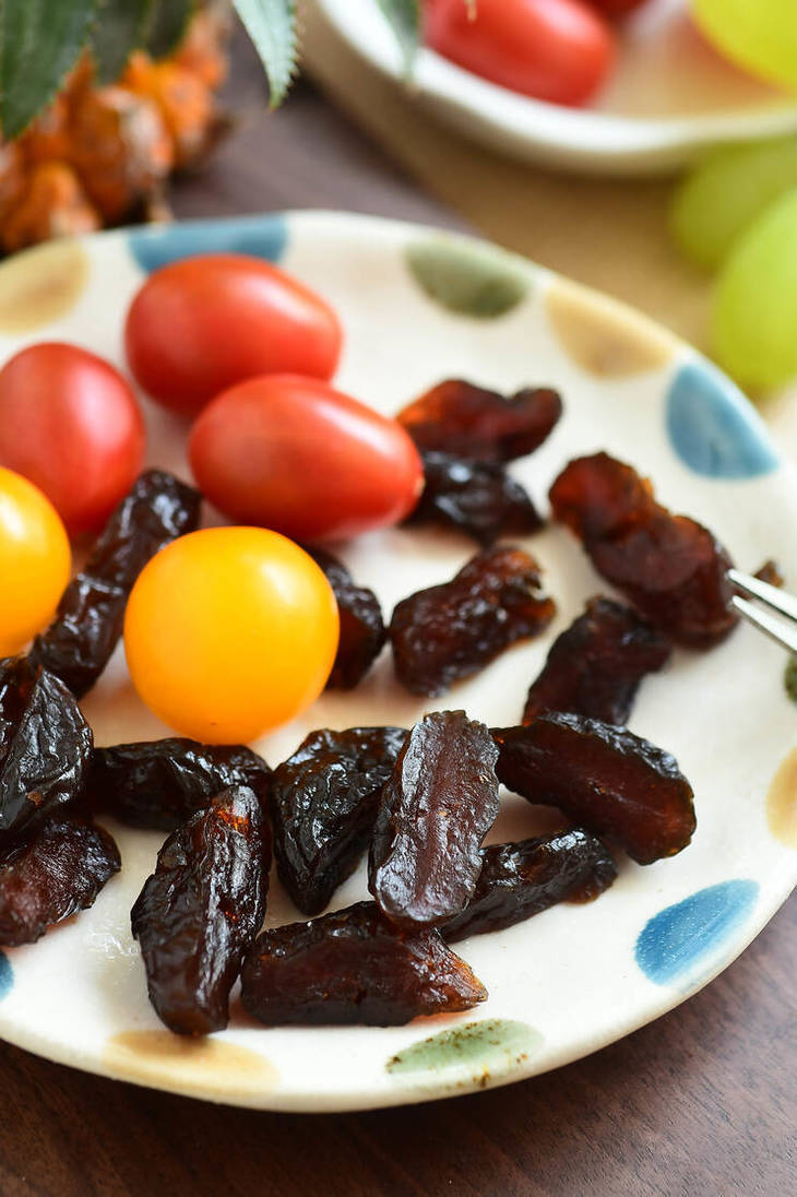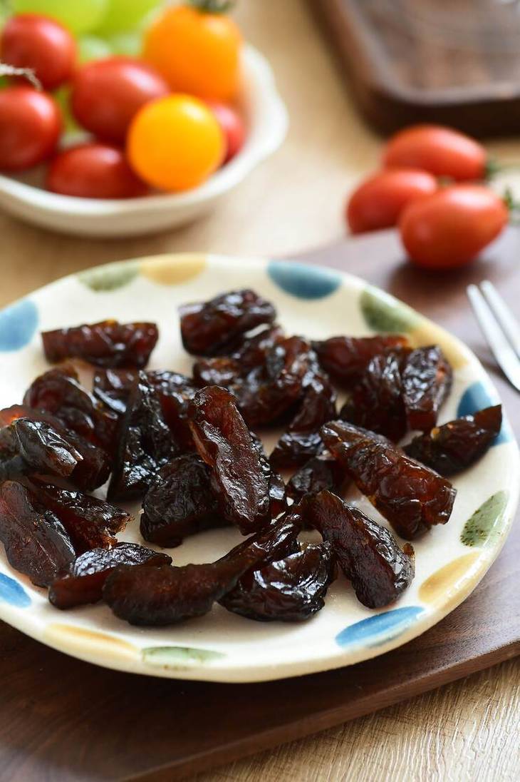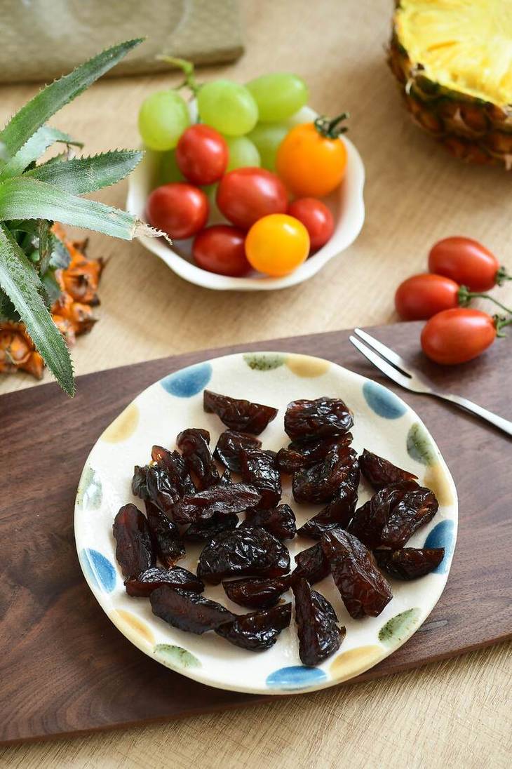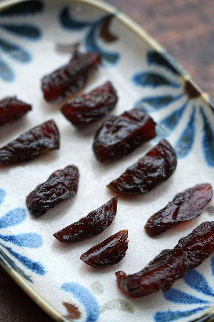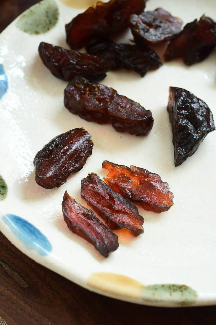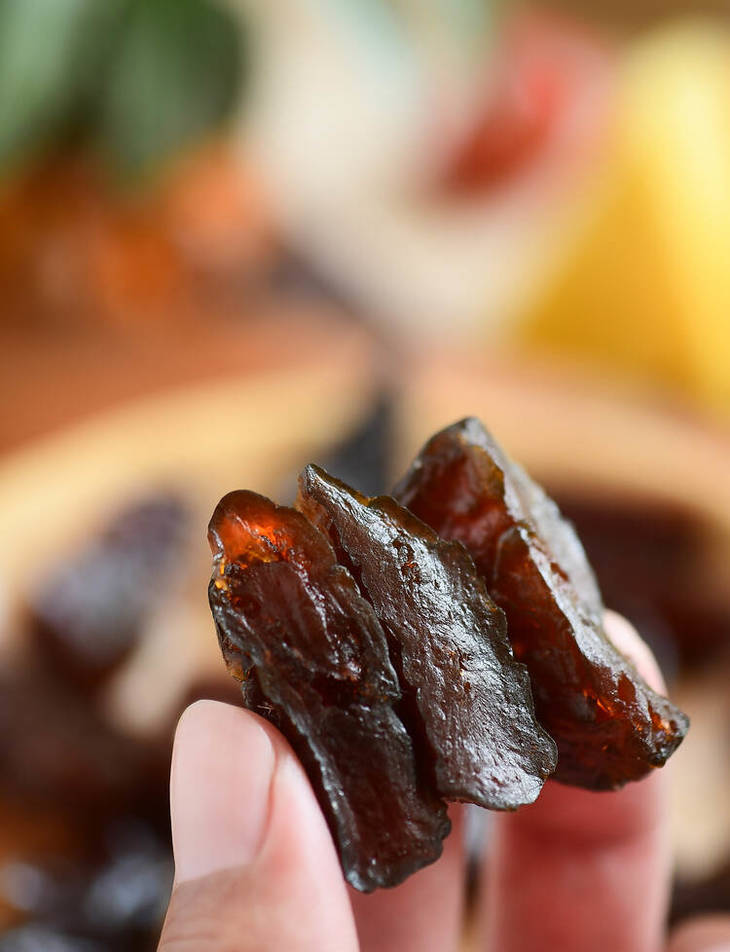 ✅ 糖酸比的微妙平衡 忍不住吞口水,吃了还想吃。 市场有的乌梅条加了大量的糖齁甜。我们一方云拾的乌梅为了接近酸甜黄金比。有意控制糖的添加。让整体刚刚好。更适合百搭各种水果。也适合单独当零食吃。