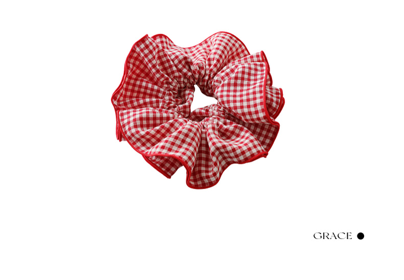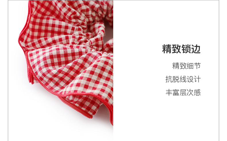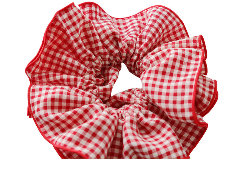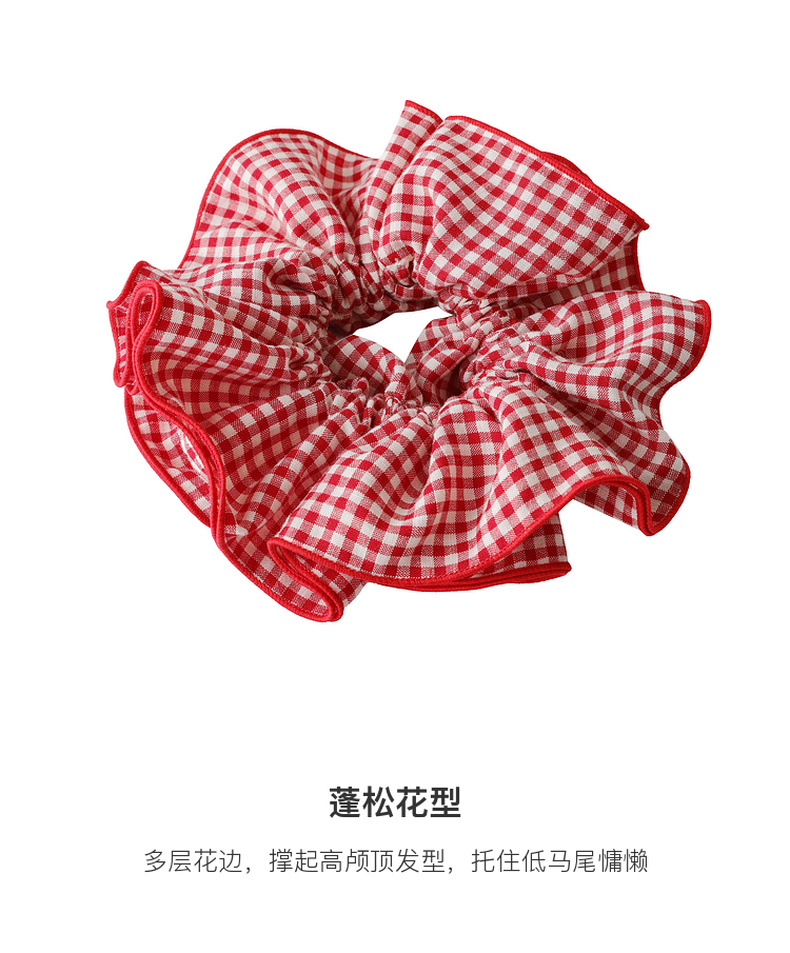 三彩2025新款miu系红白格纹发圈通勤简约复古蓬松花边甜美头饰女