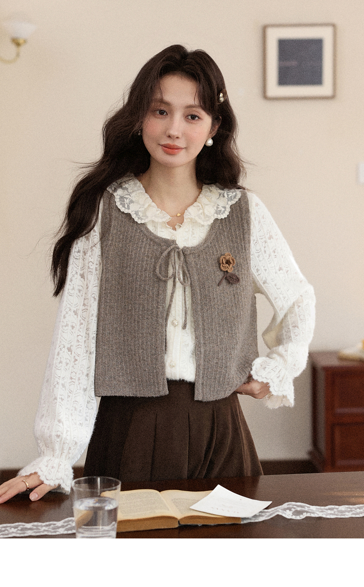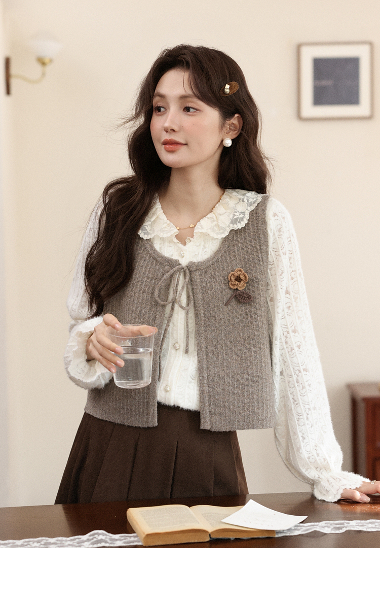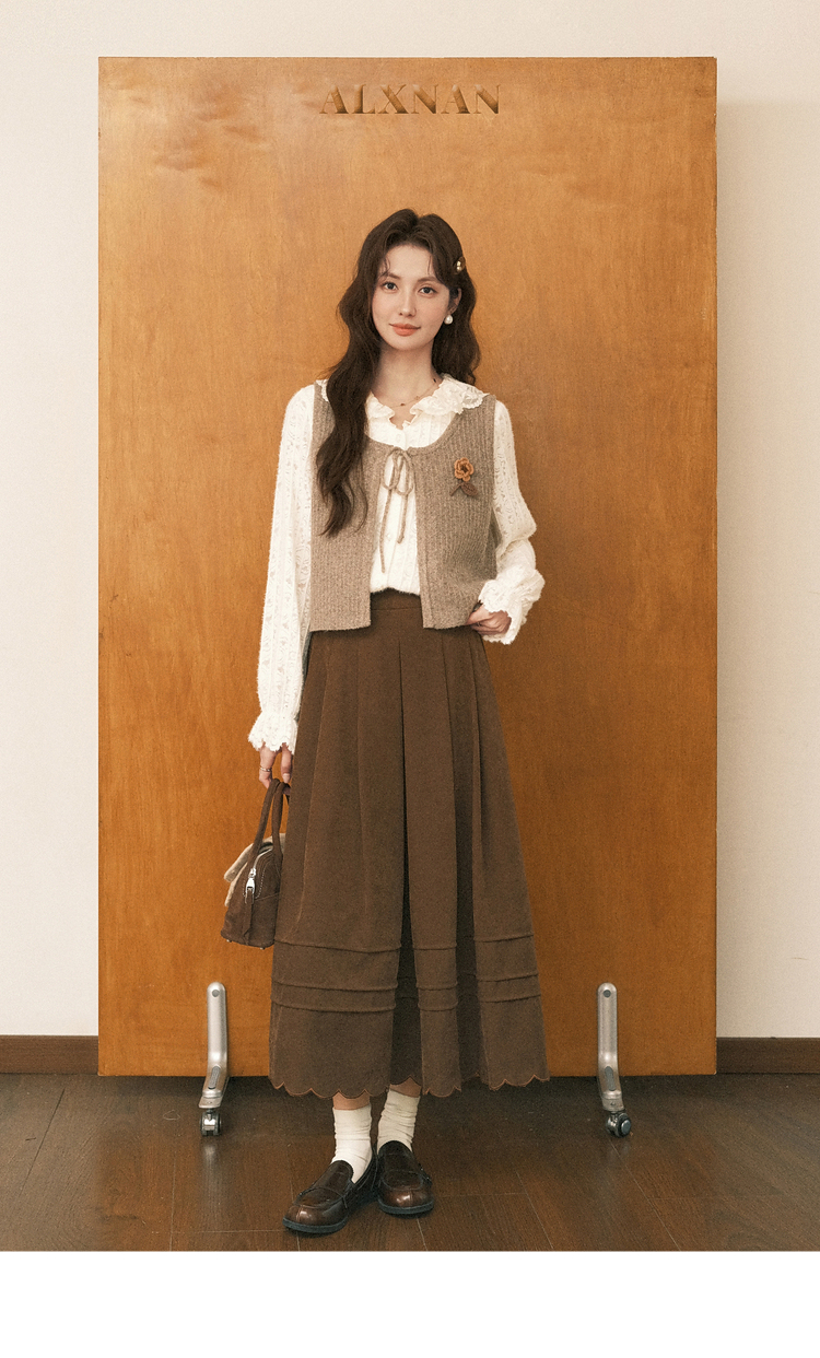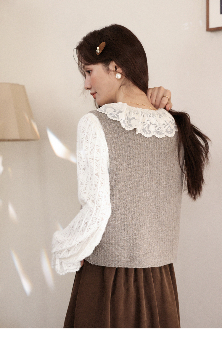 鹿向南「燕麦巧巧」法式气质学院风燕麦色外搭上衣马甲背心女秋季