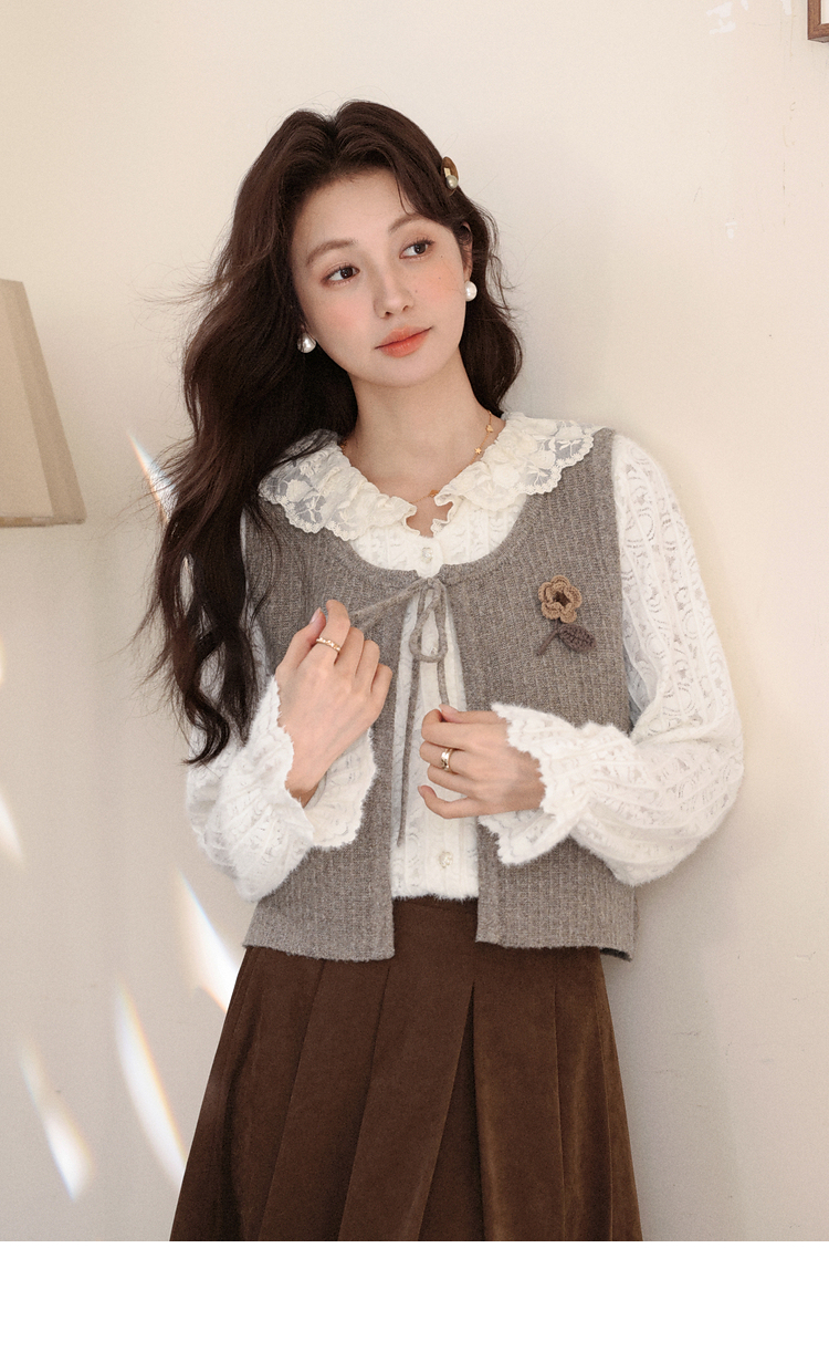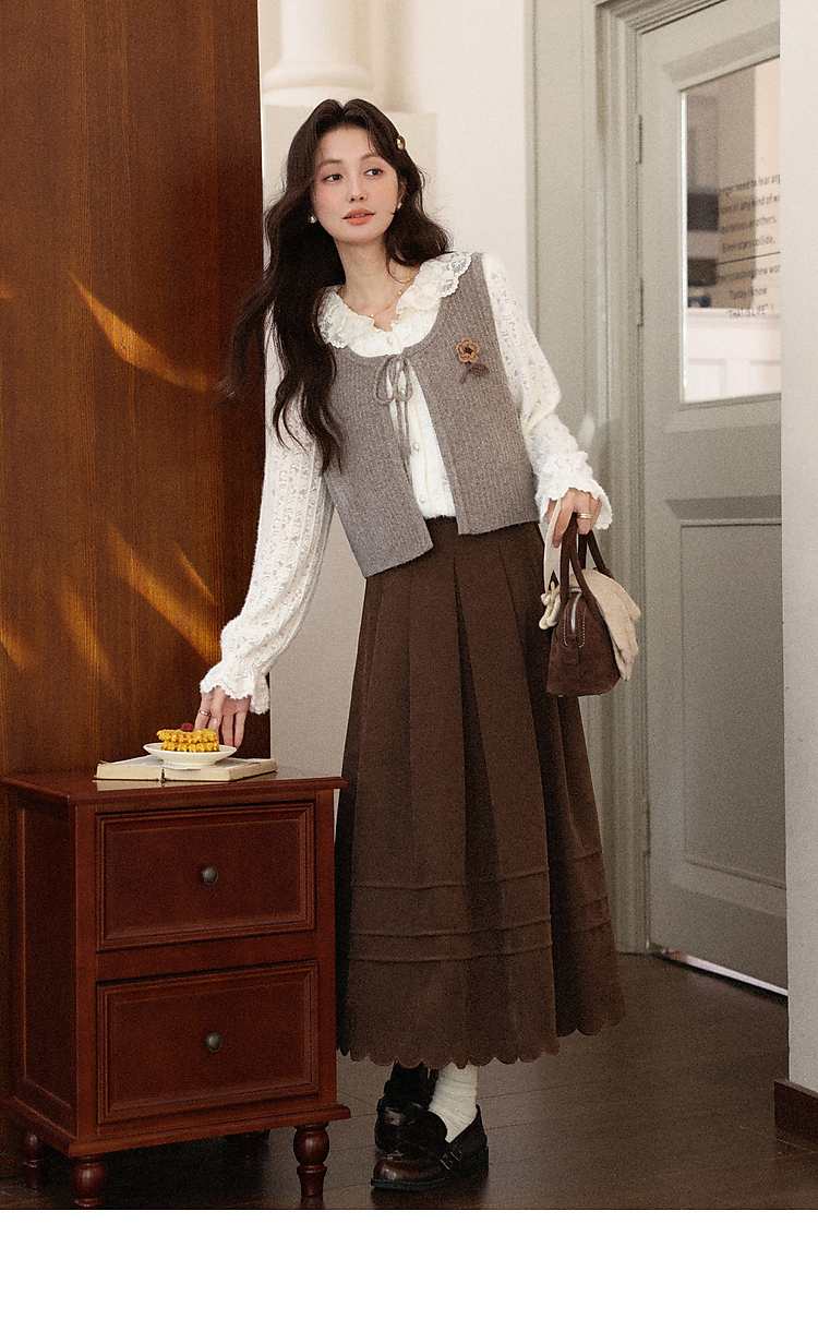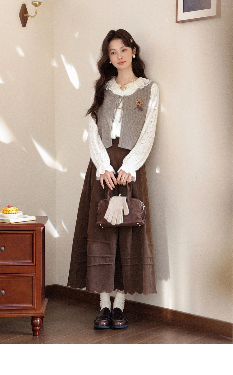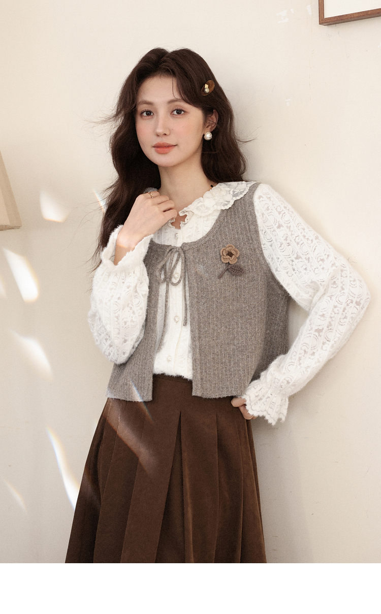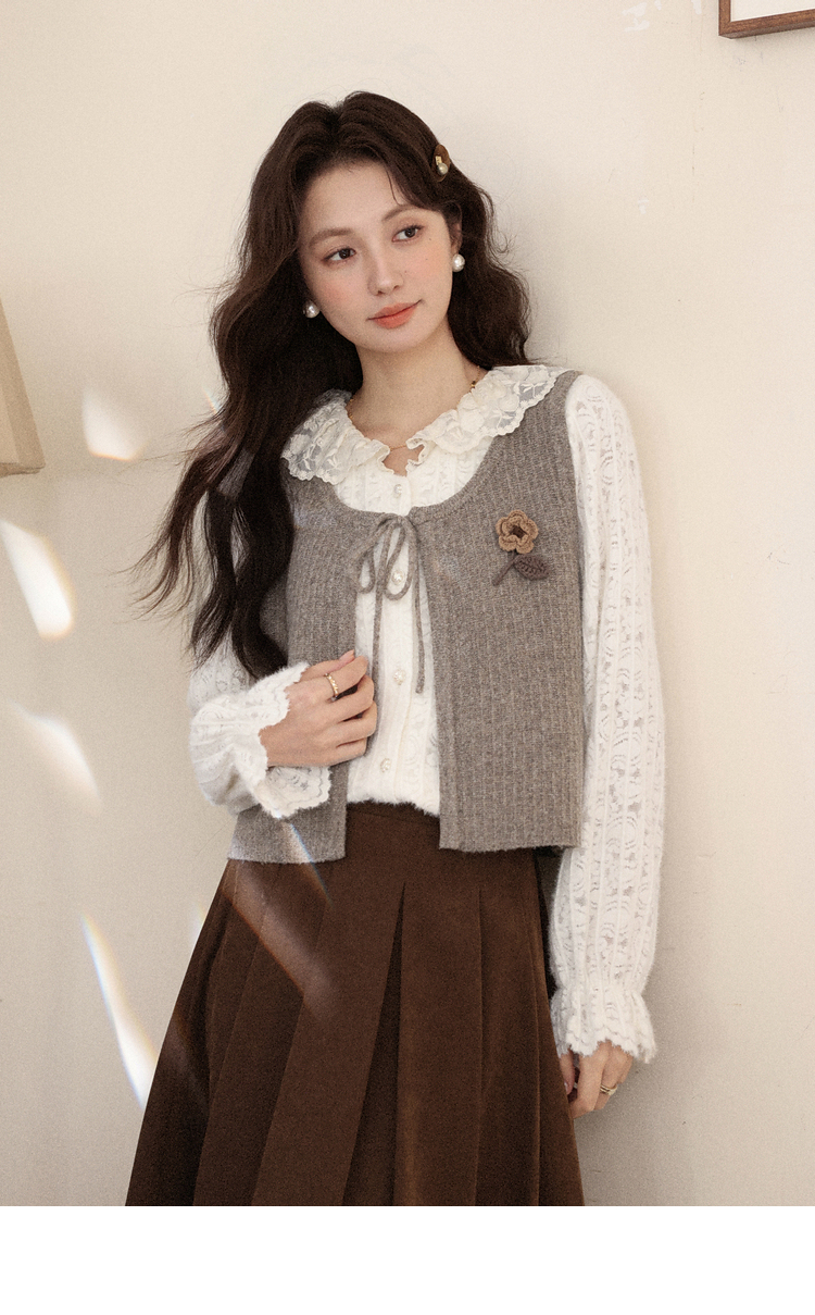 鹿向南「燕麦巧巧」法式气质学院风燕麦色外搭上衣马甲背心女秋季