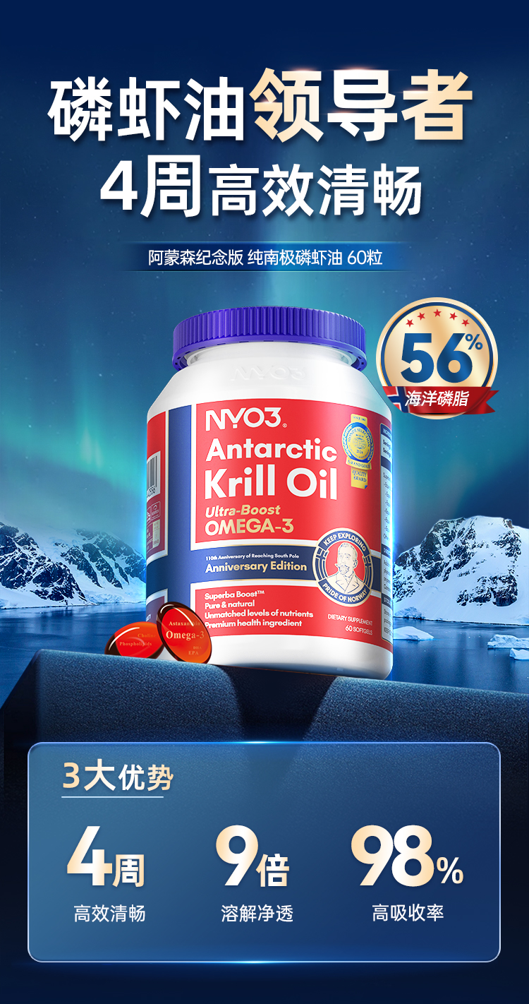 NYO3挪威97%高纯度rTG深海鱼油 120粒 卷王成人omega-3高性价比