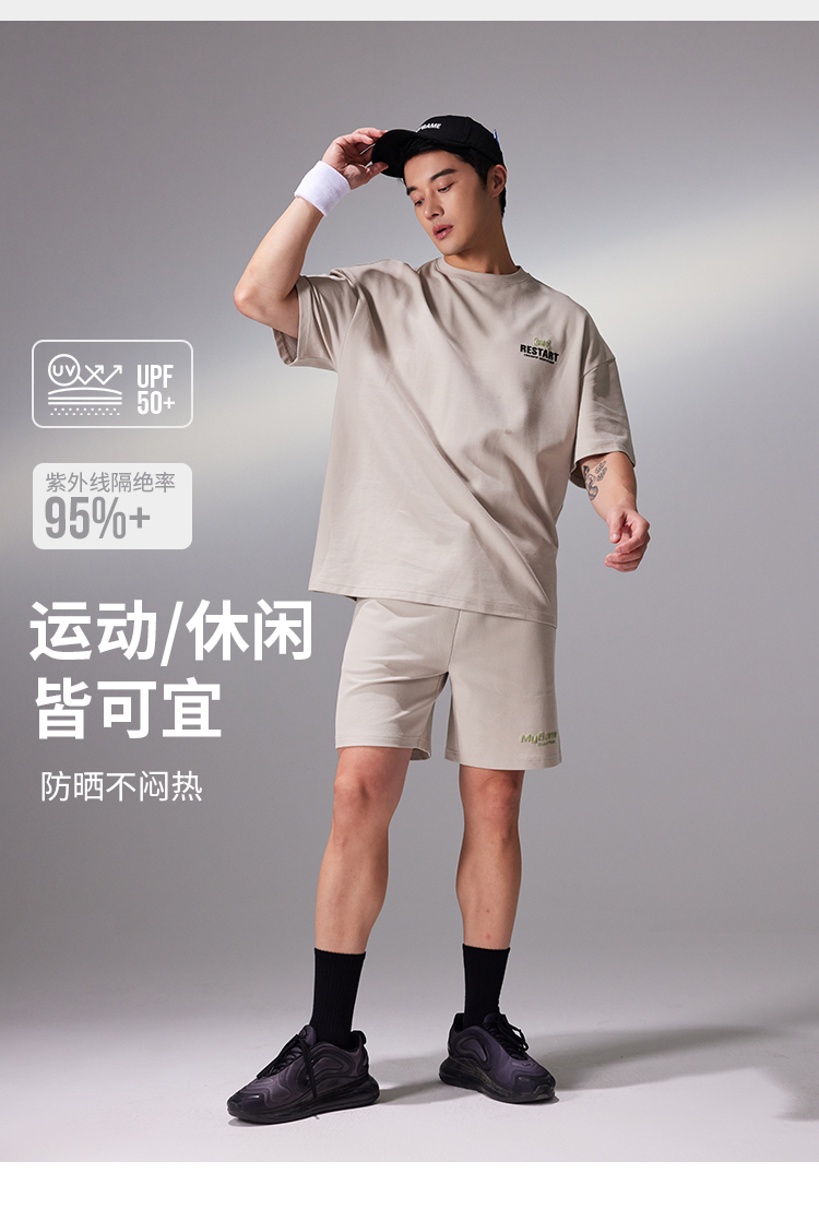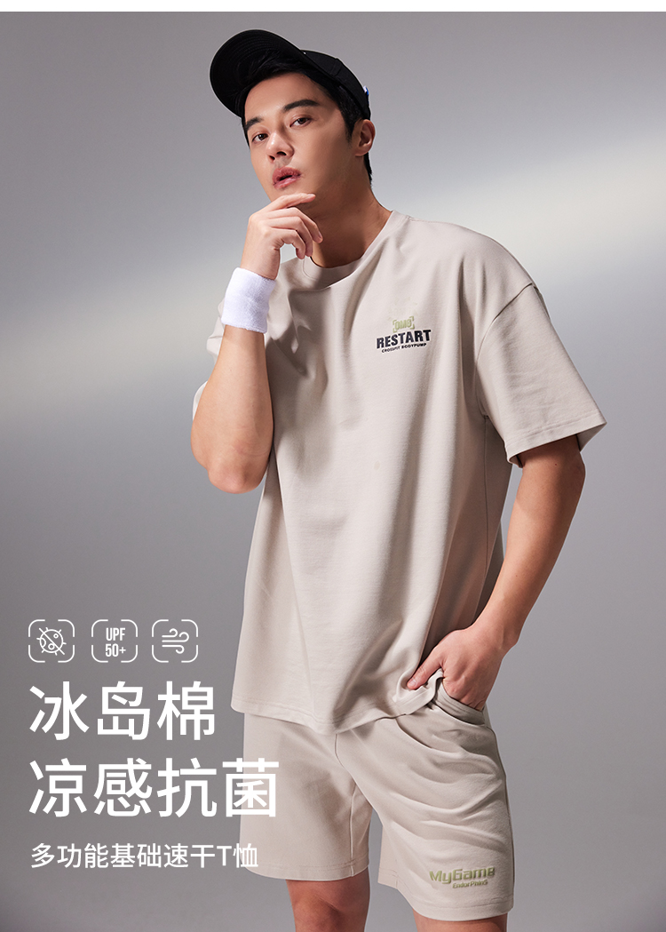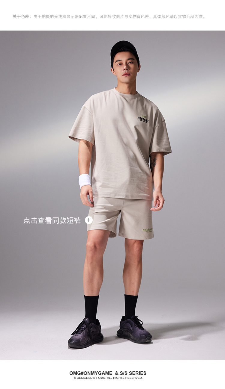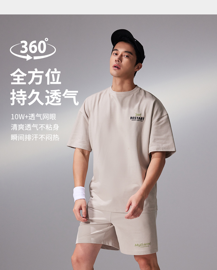 OMG运动 速干棉宽松短袖套装吸湿排汗凉感休闲夏季健身t恤圆领