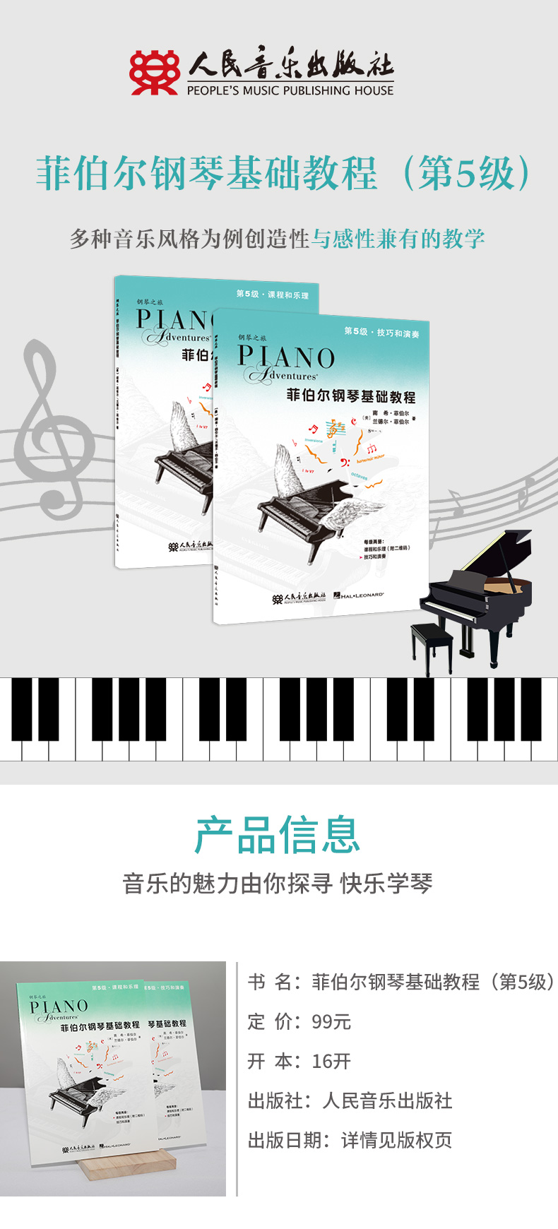 新版菲伯尔钢琴基础教程(第5级共2册)人民音乐出版社正版 儿童钢琴练习曲集入门五线谱自学乐理 菲博尔非伯尔歌曲教材