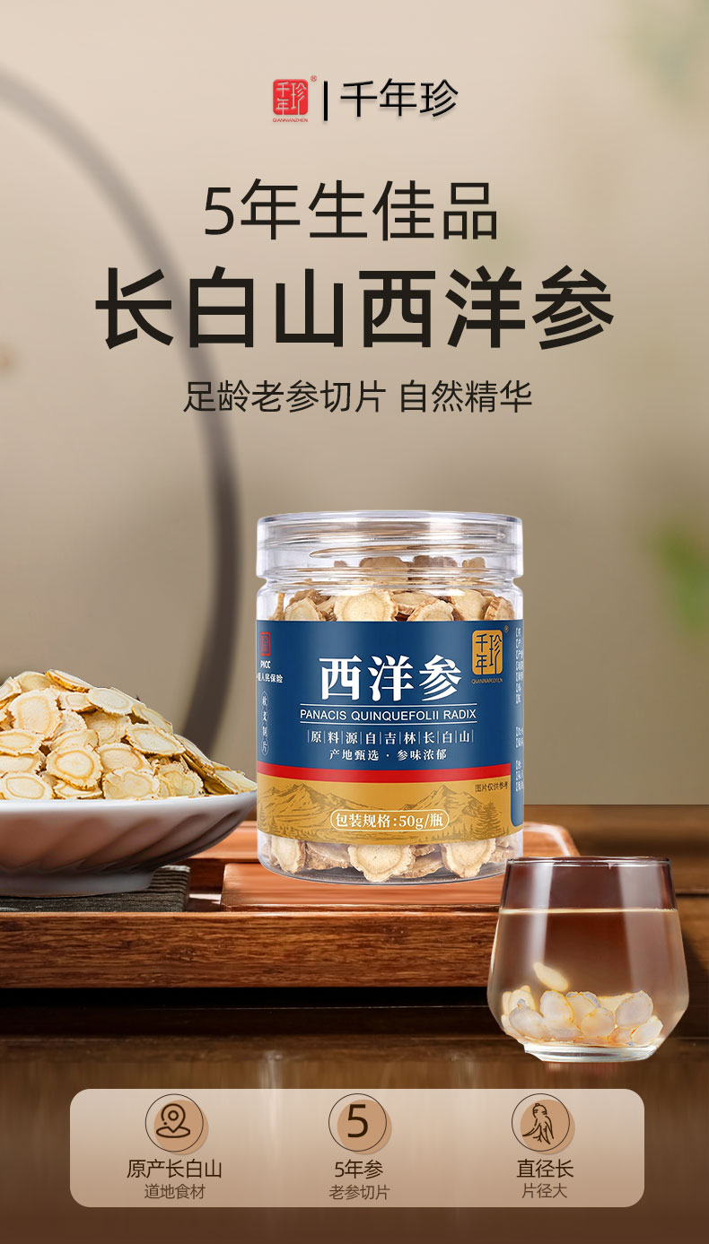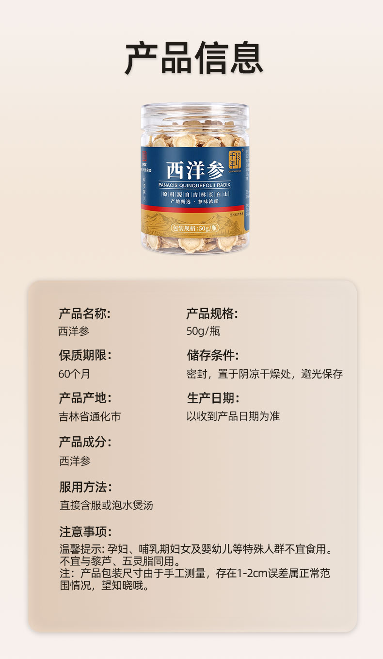 50g*4罐 西洋参片(0.8cm)送1瓶100g枸杞