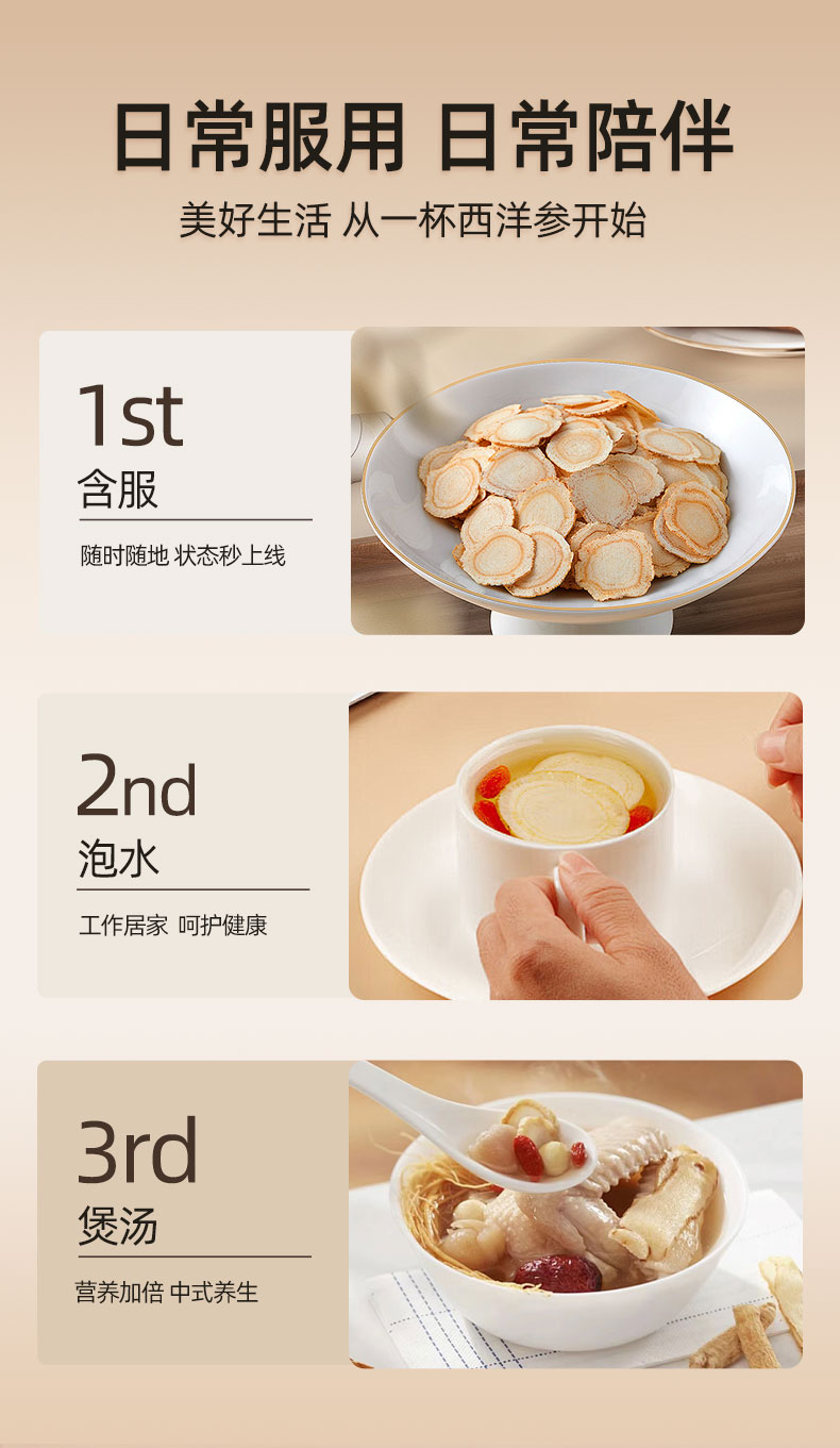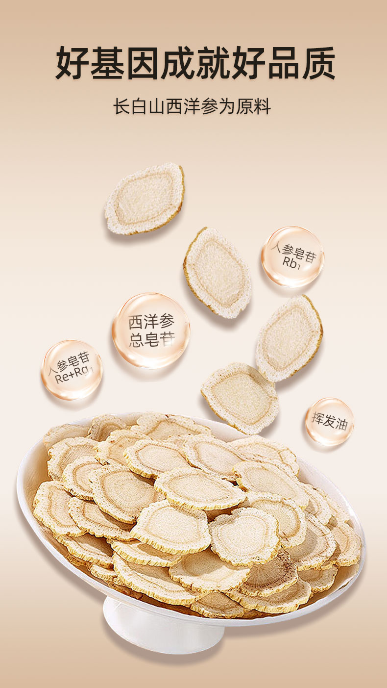 100g/瓶 参香活色 加拿大进口西洋参片 多规格可选