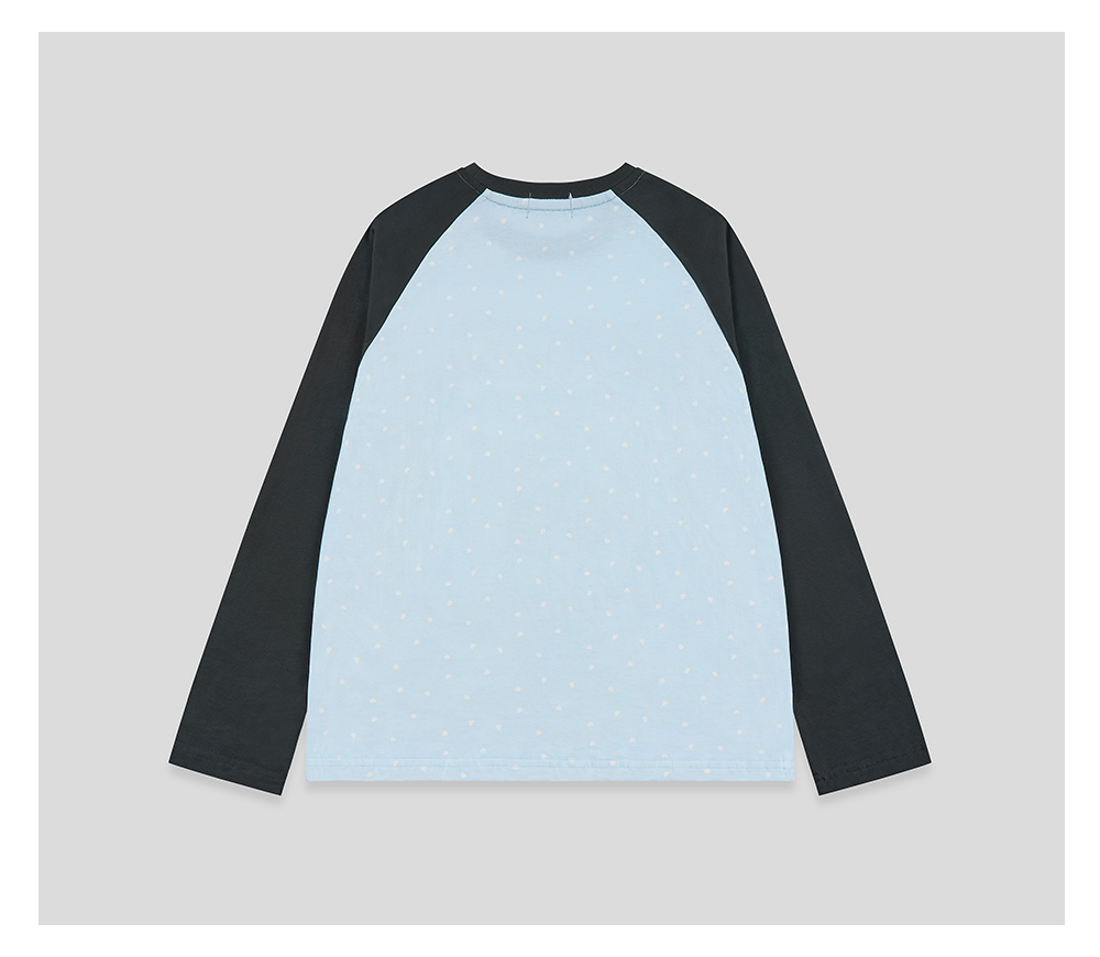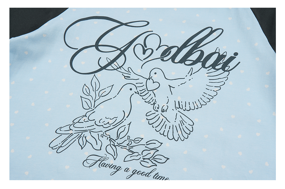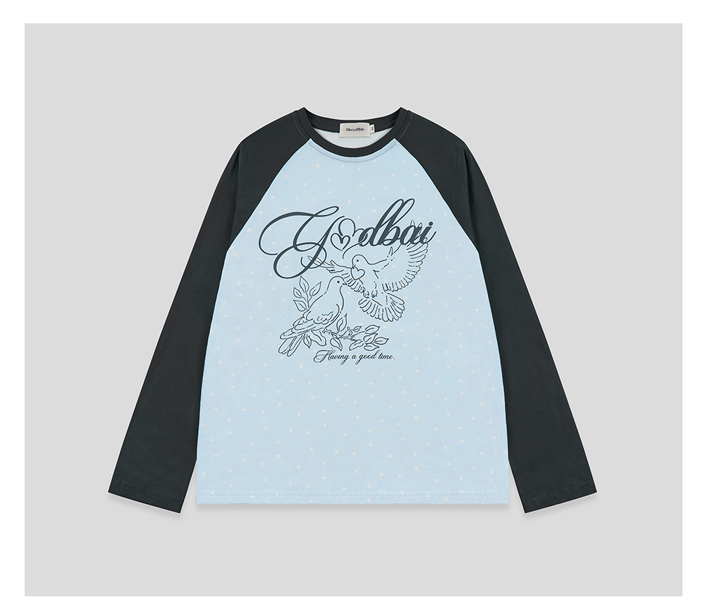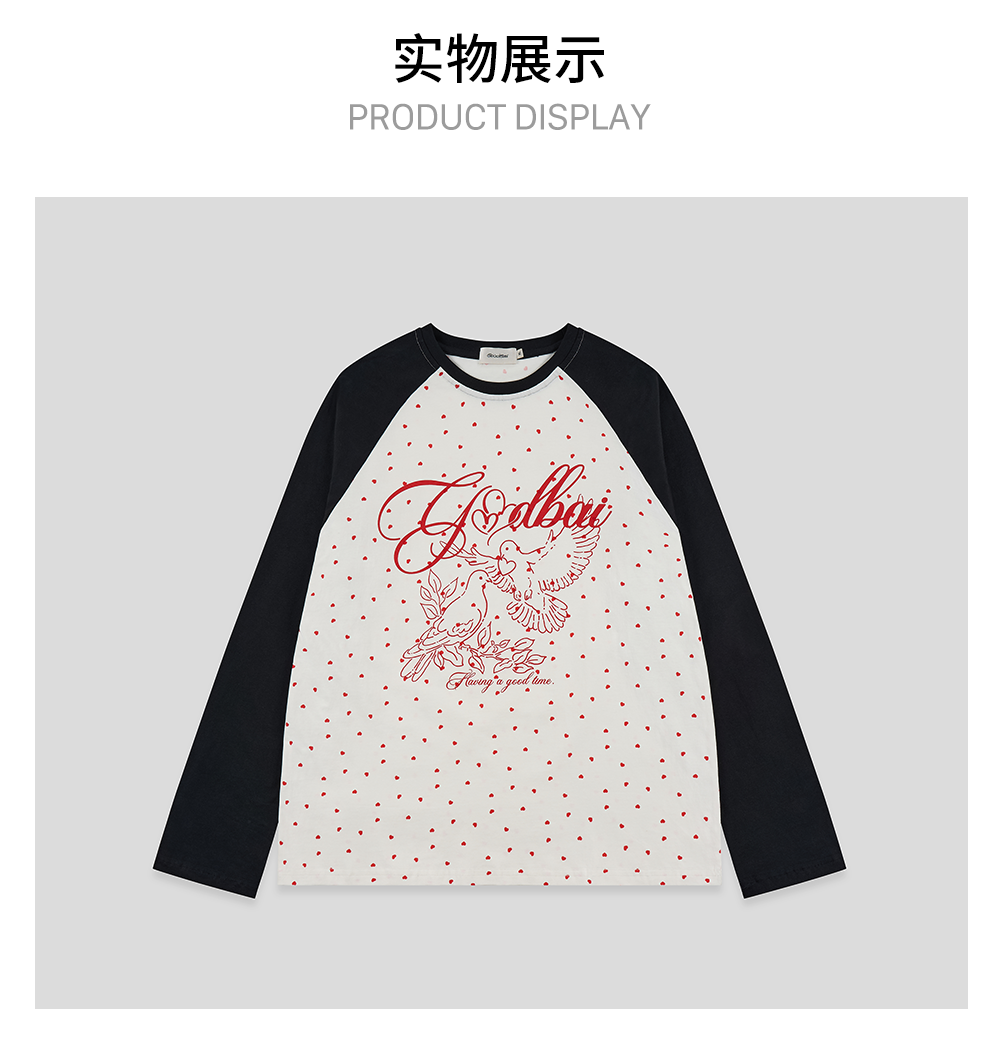 GOODBAI 春夏双鸽爱心撞色印花休闲宽松插肩袖长袖T恤女