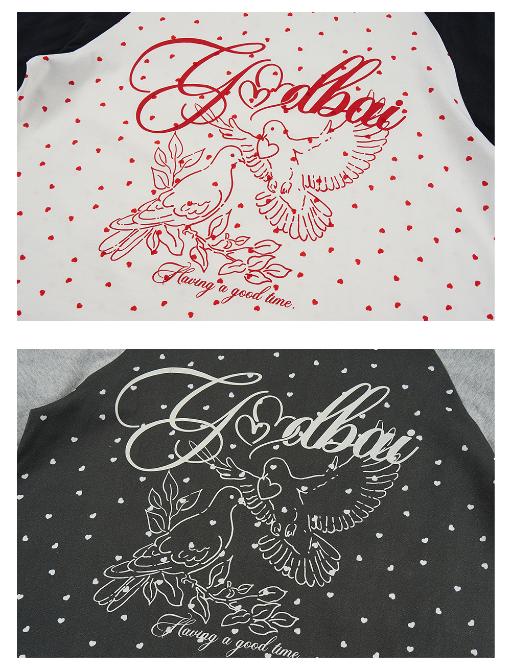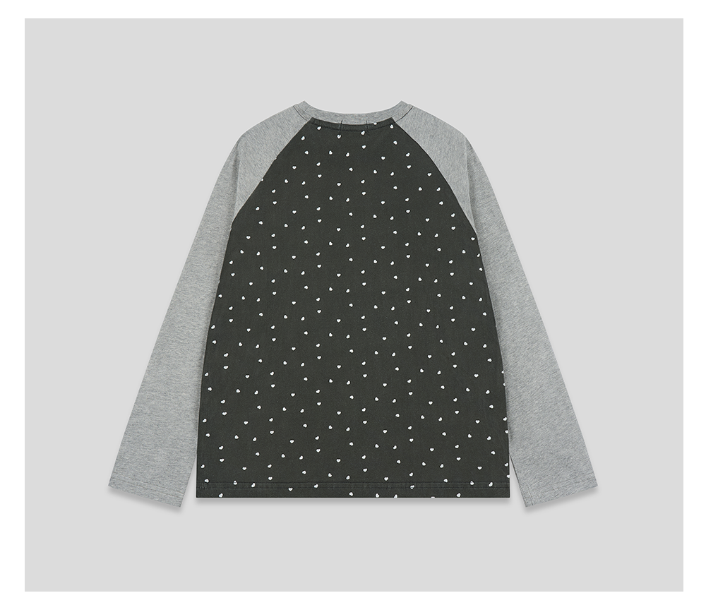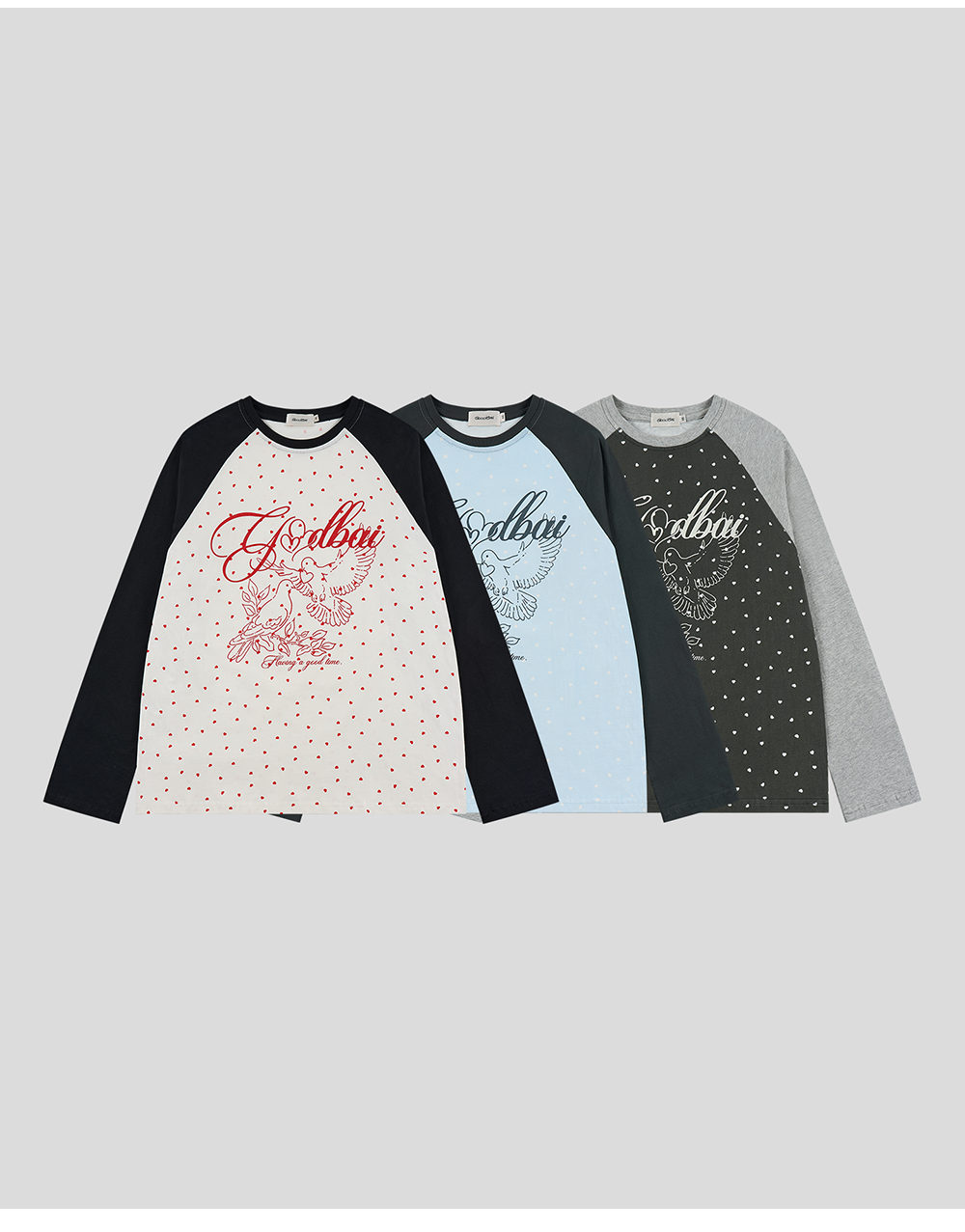 GOODBAI 春夏双鸽爱心撞色印花休闲宽松插肩袖长袖T恤女