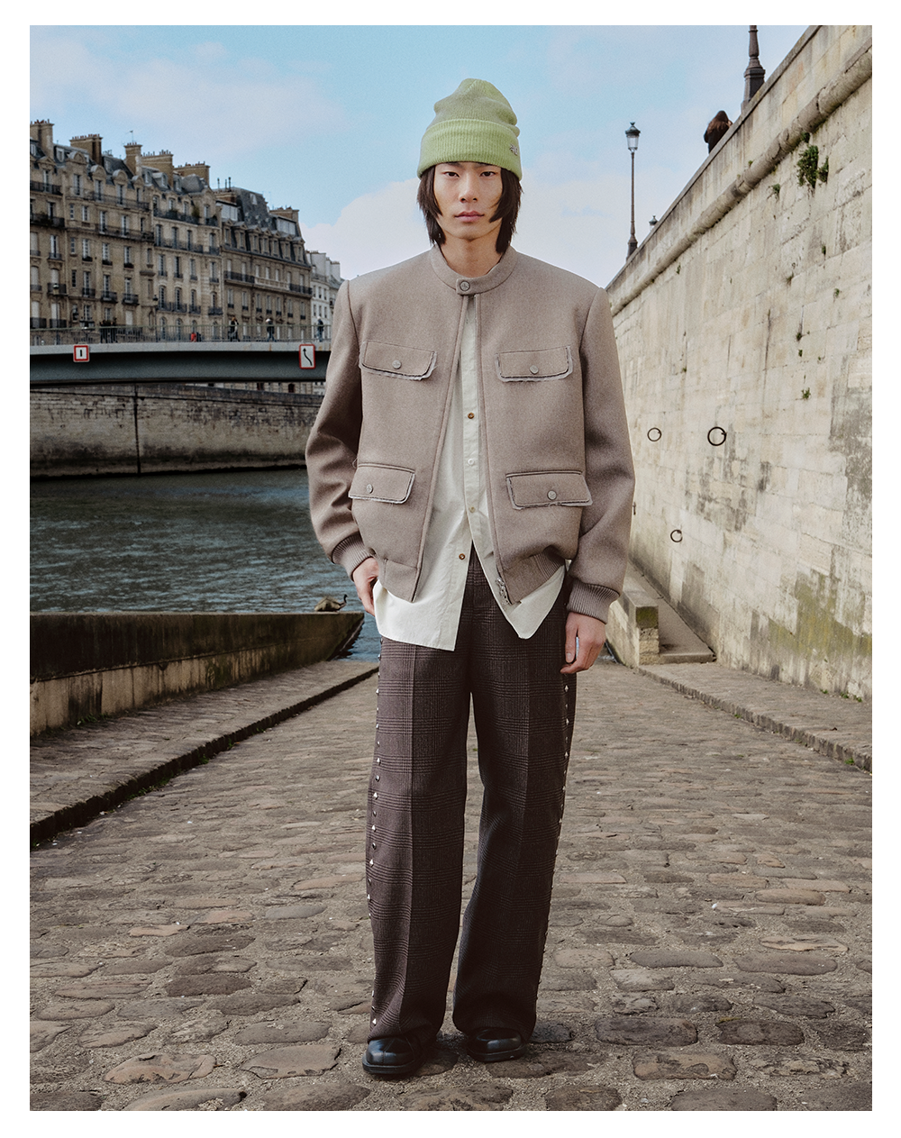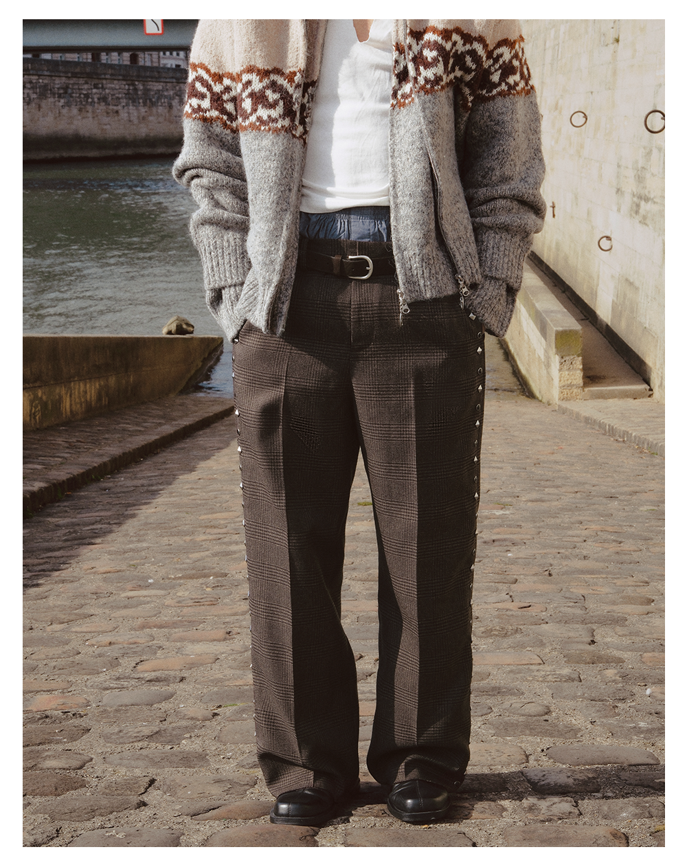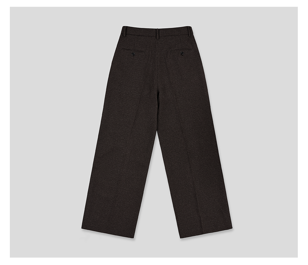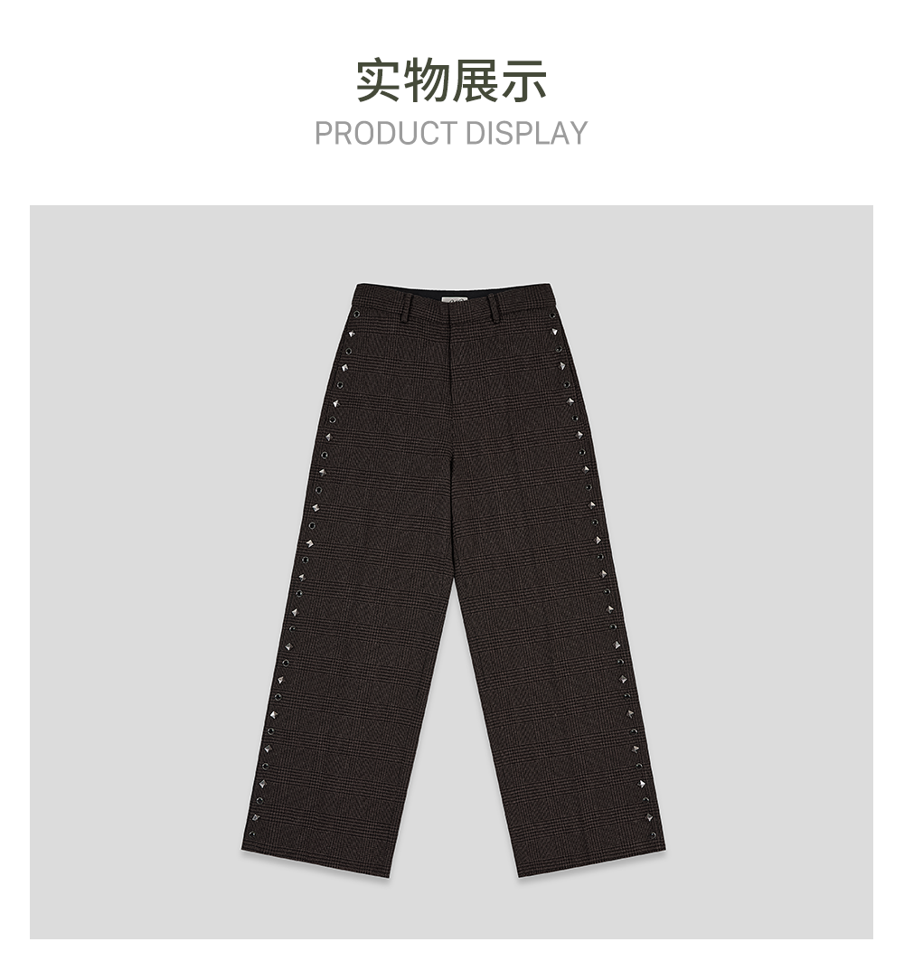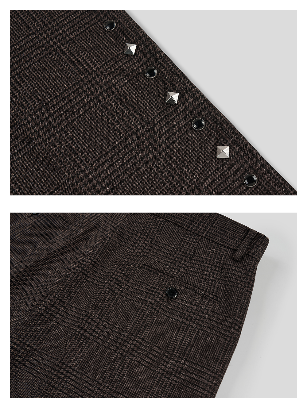 GOODBAI 916 格纹铆钉装饰毛边直筒休闲裤