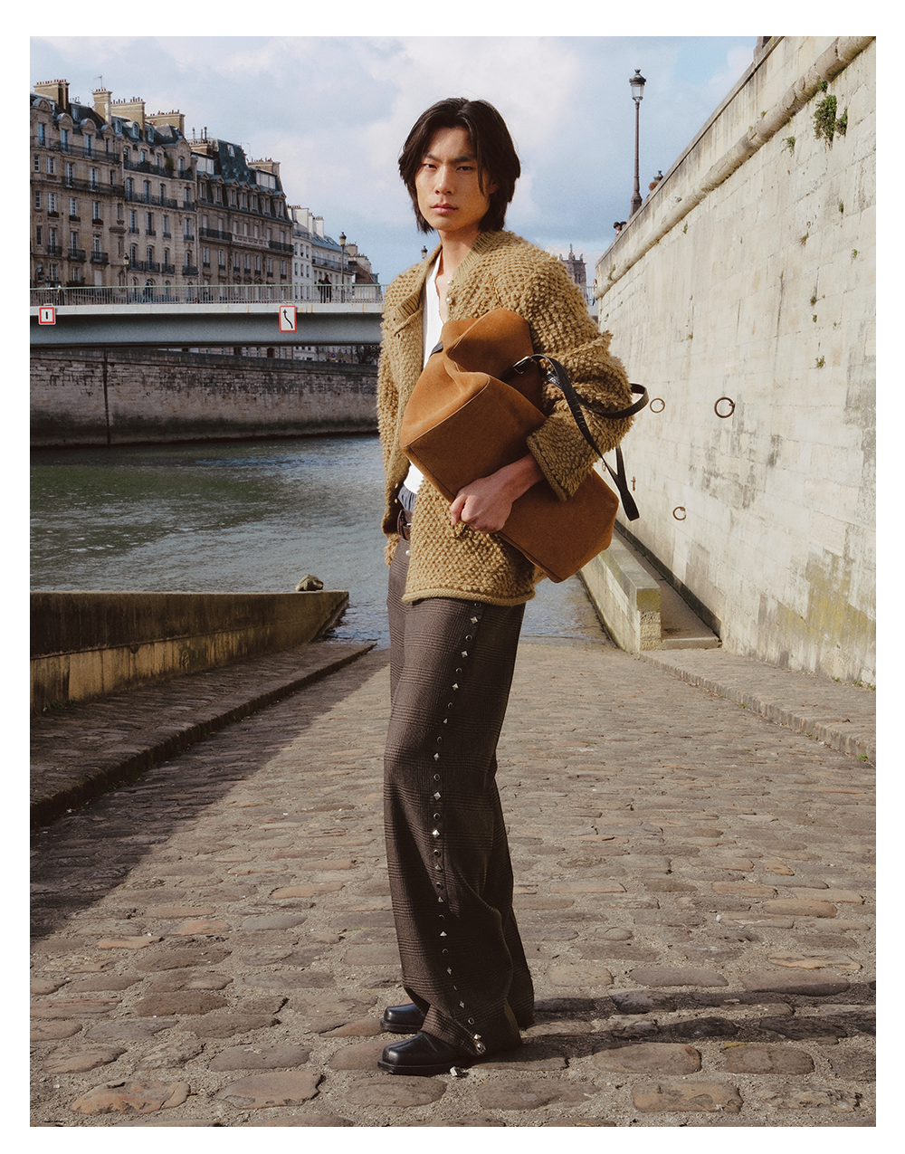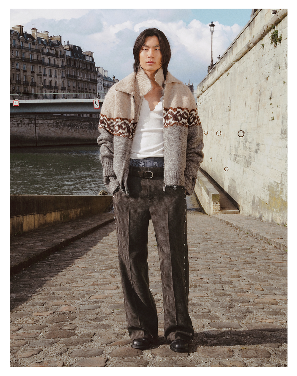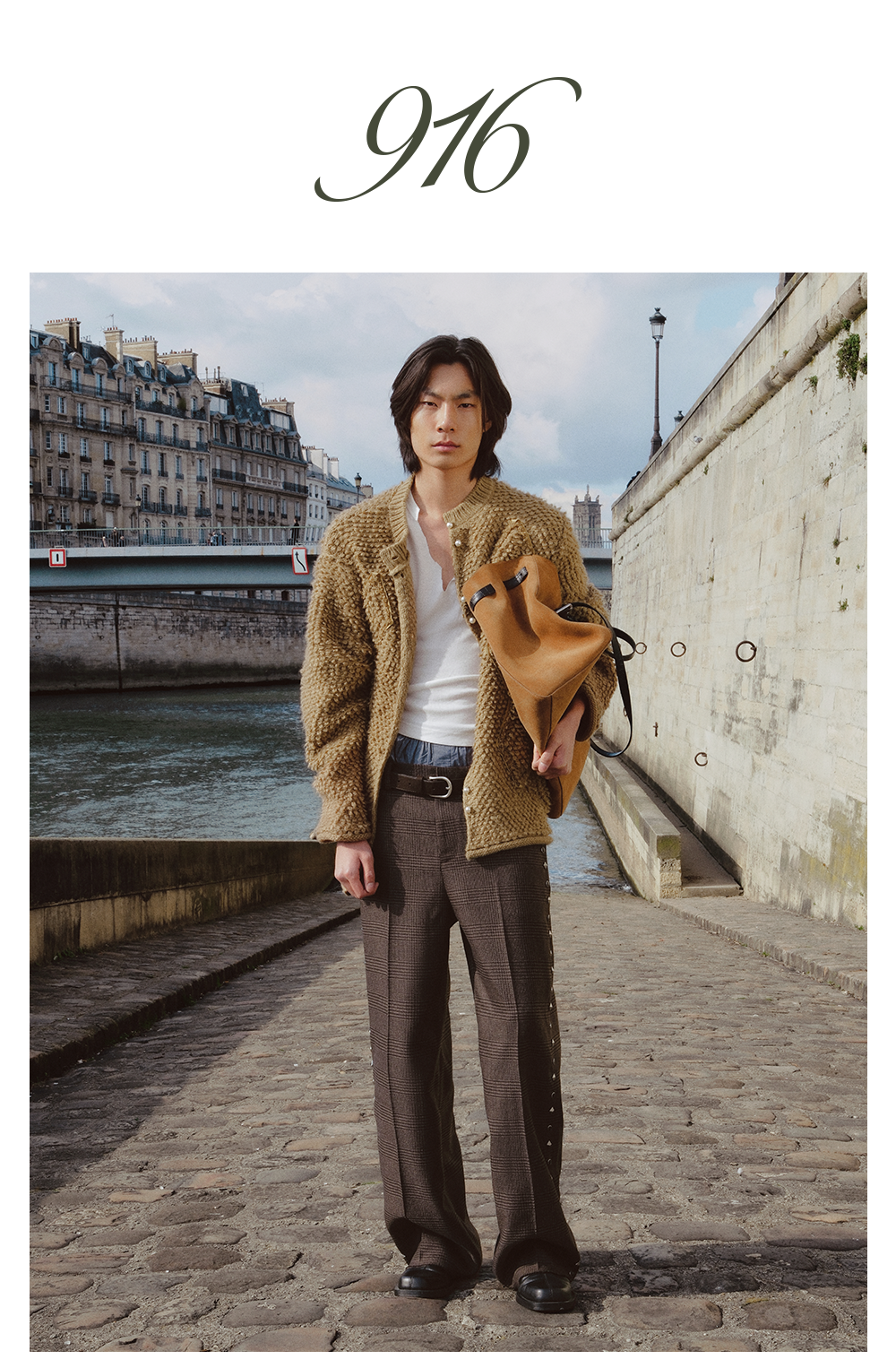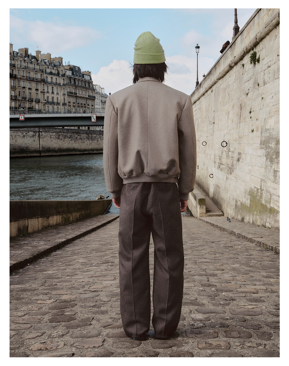 GOODBAI 916 格纹铆钉装饰毛边直筒休闲裤