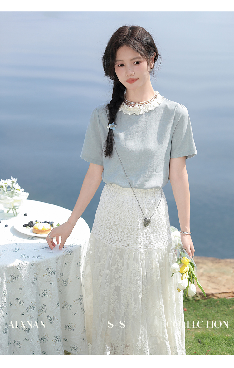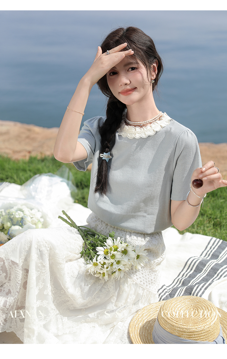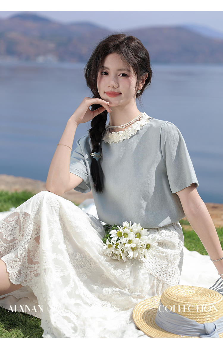 鹿向南「清新蓝语」圆领正肩休闲T恤2025夏季新款通勤短袖上衣女 商品图3