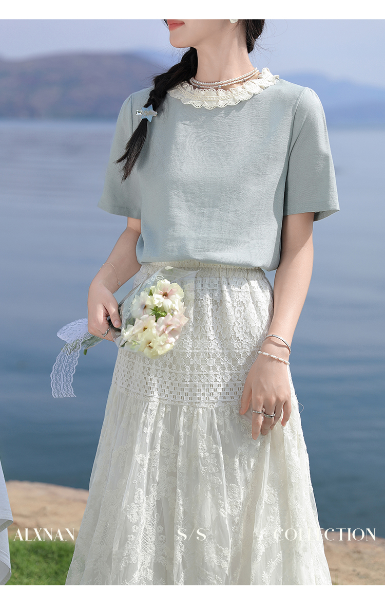 鹿向南「清新蓝语」圆领正肩休闲T恤2025夏季新款通勤短袖上衣女 商品图4