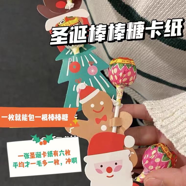 彩色圣诞装扮棒棒糖果包装卡片送女友可爱糖果装饰卡片(sdj01)