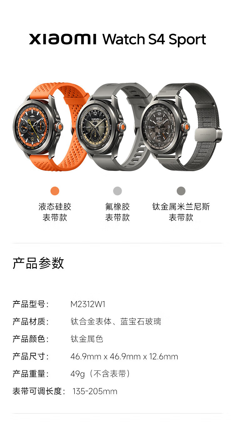 小米 Xiaomi Watch S4 Sport (液态硅胶表带)手表
