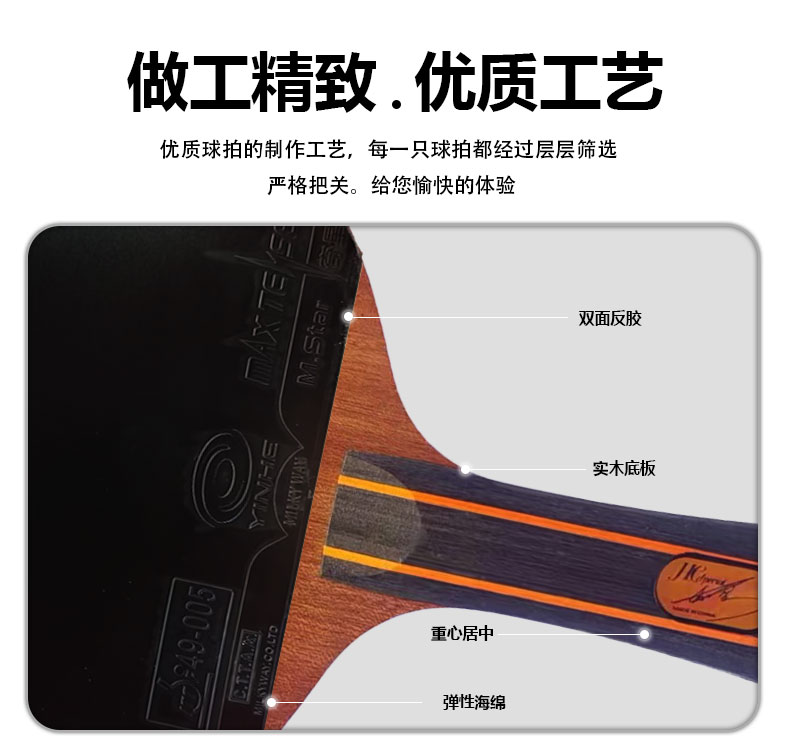 【双12特惠】黄晨特制木星弧圈快攻乒乓球底板专业乒乓球拍弹性实木现货