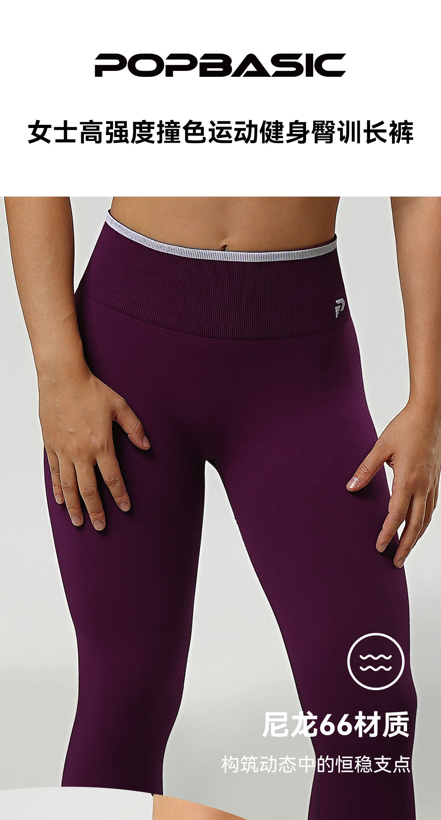 POPBASIC焕醒系列女士高强度撞色运动健身臀训长裤