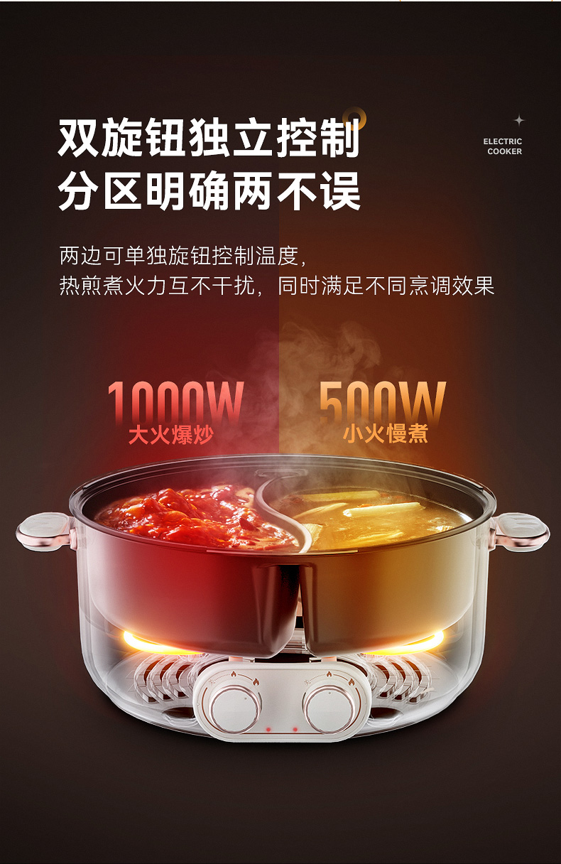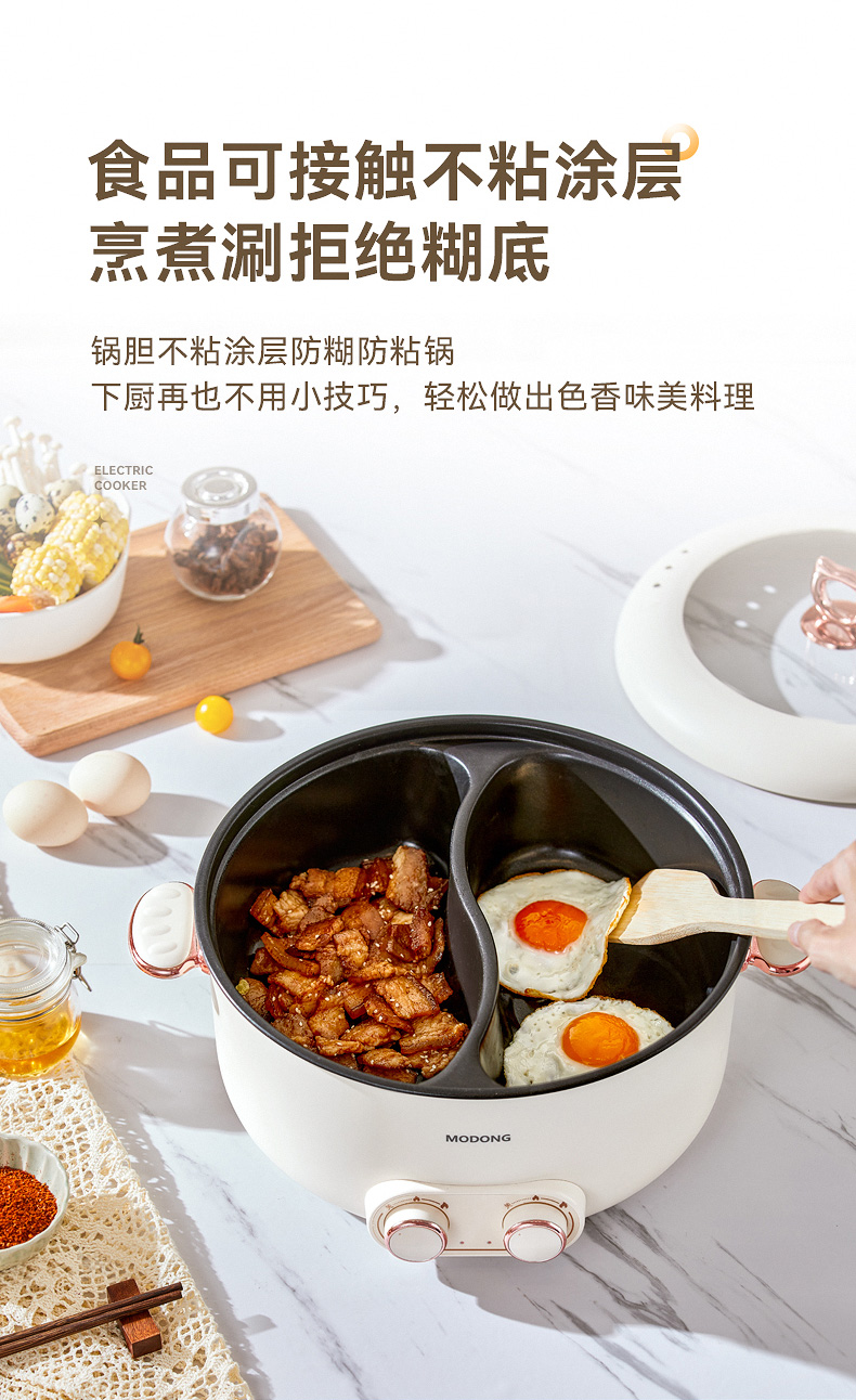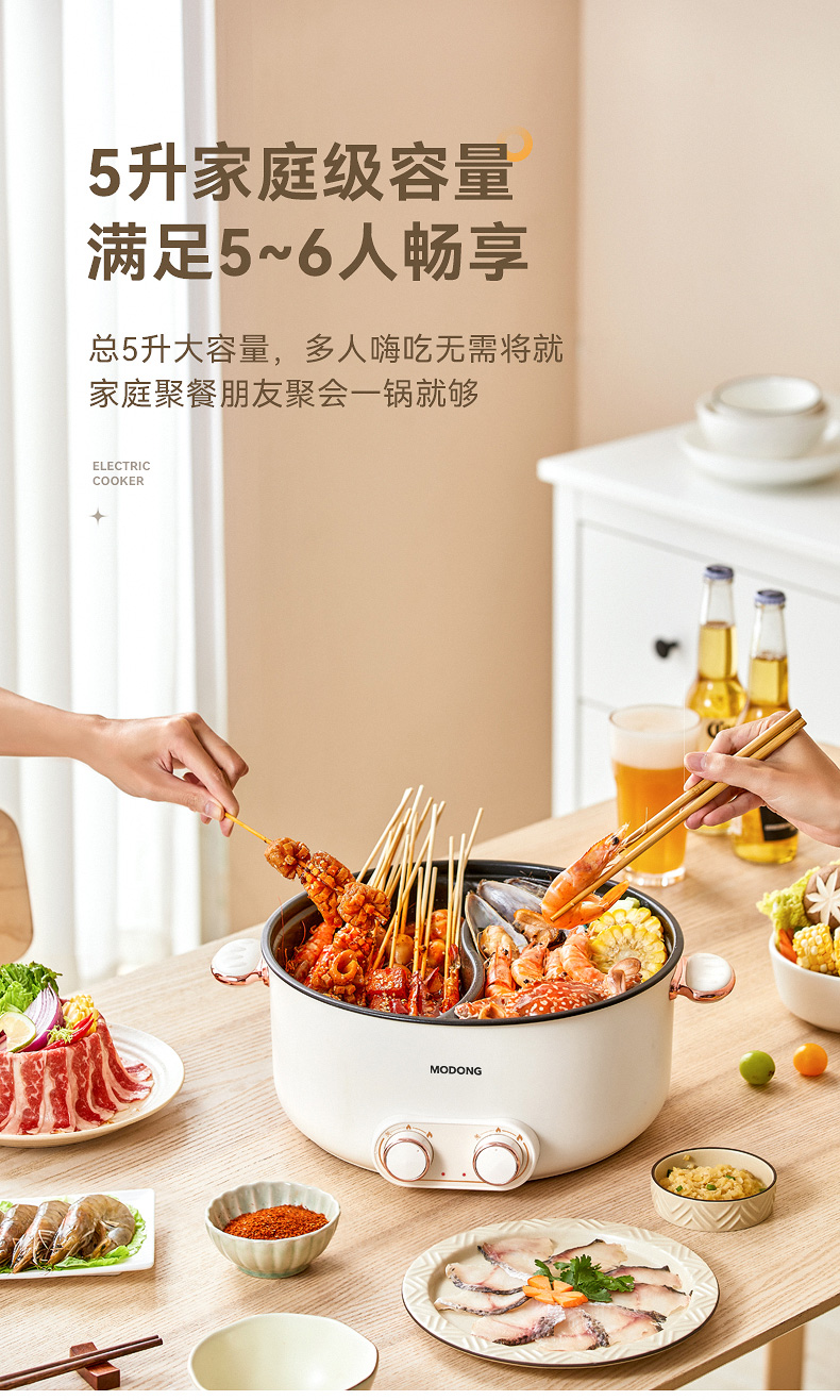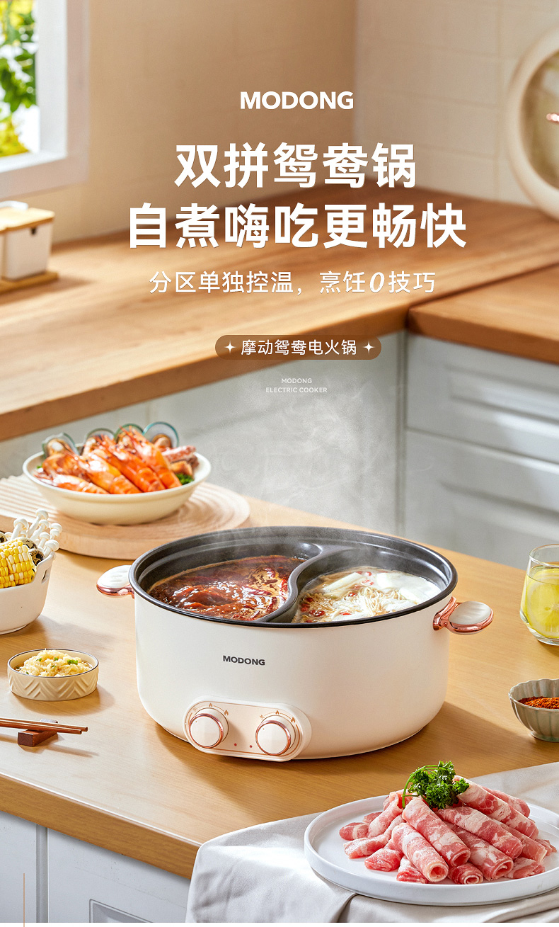 严选 | MODONG摩动鸳鸯锅5L 分区单独控温 2000w大火力 不粘涂层 易清洗 5L大容量 满足5-6人畅享