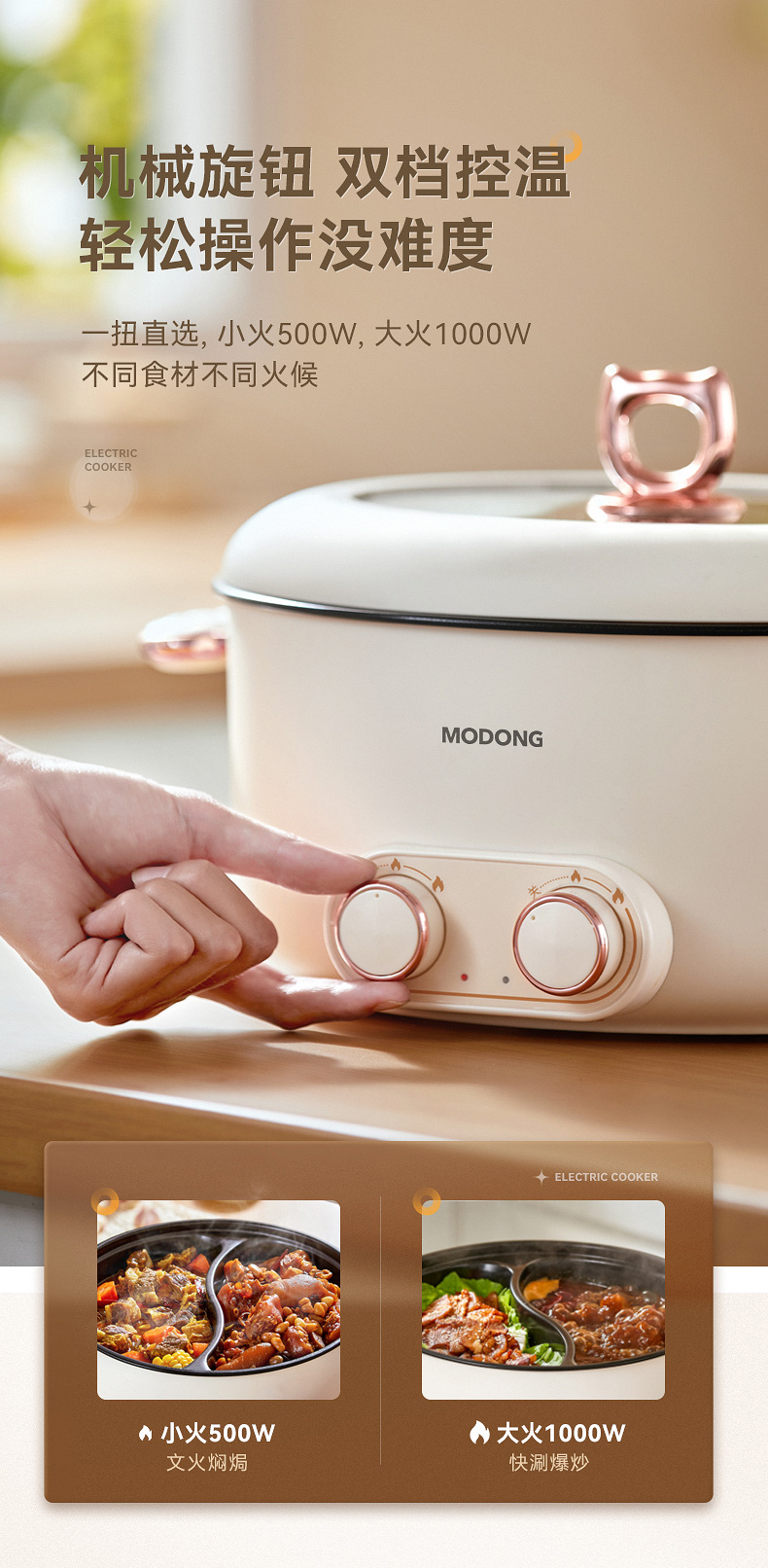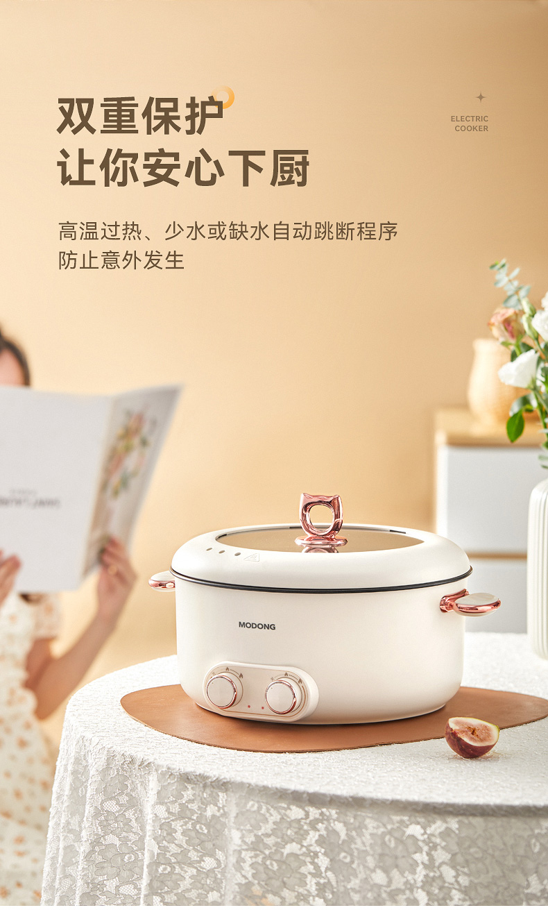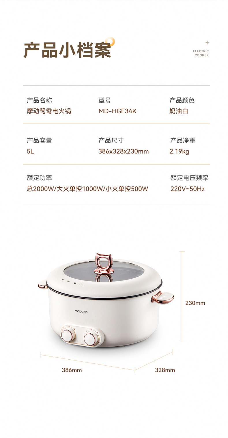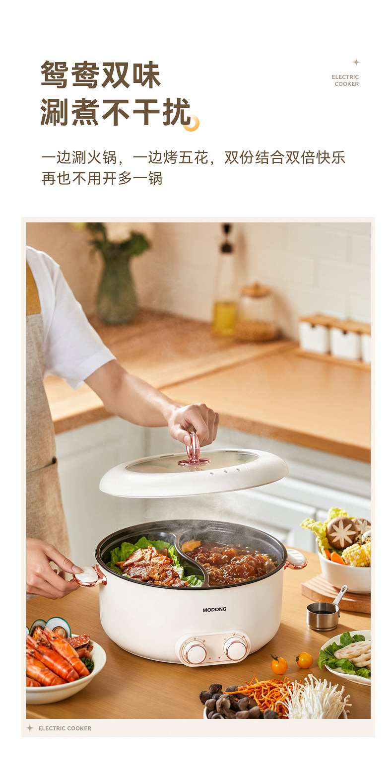 严选 | MODONG摩动鸳鸯锅5L 分区单独控温 2000w大火力 不粘涂层 易清洗 5L大容量 满足5-6人畅享