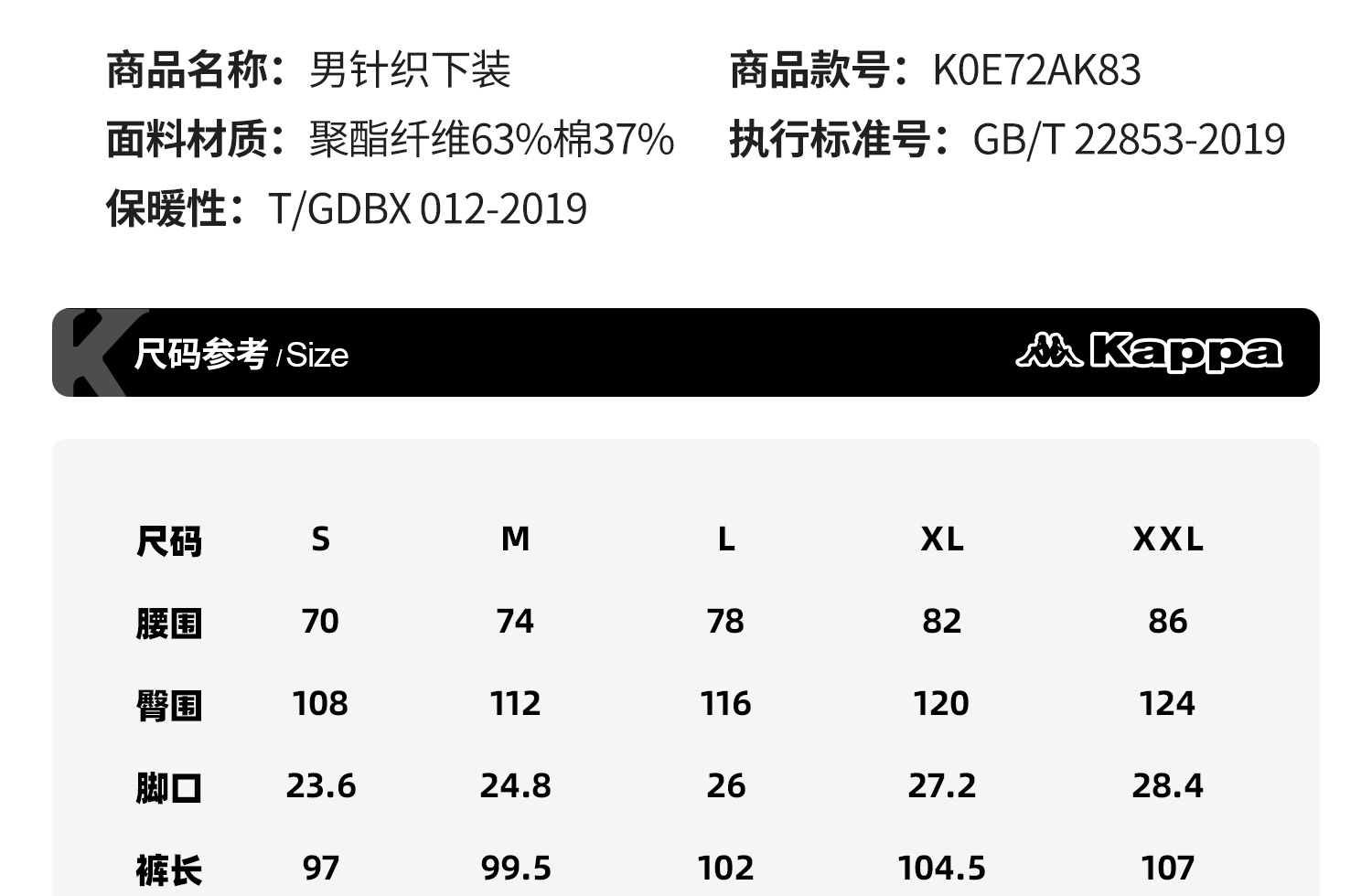 Kappa卡帕背靠背秋季新款针织长裤男复古运动裤休闲保暖束脚裤子K0E72AK83