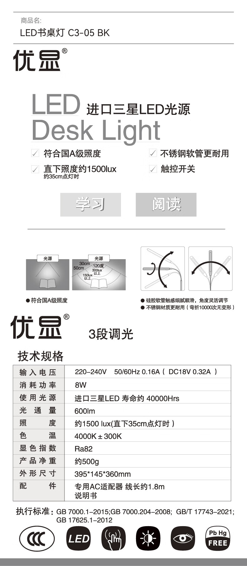 NITORI宜得利家居 学生书桌台灯卧室书桌国AA级LED书桌灯