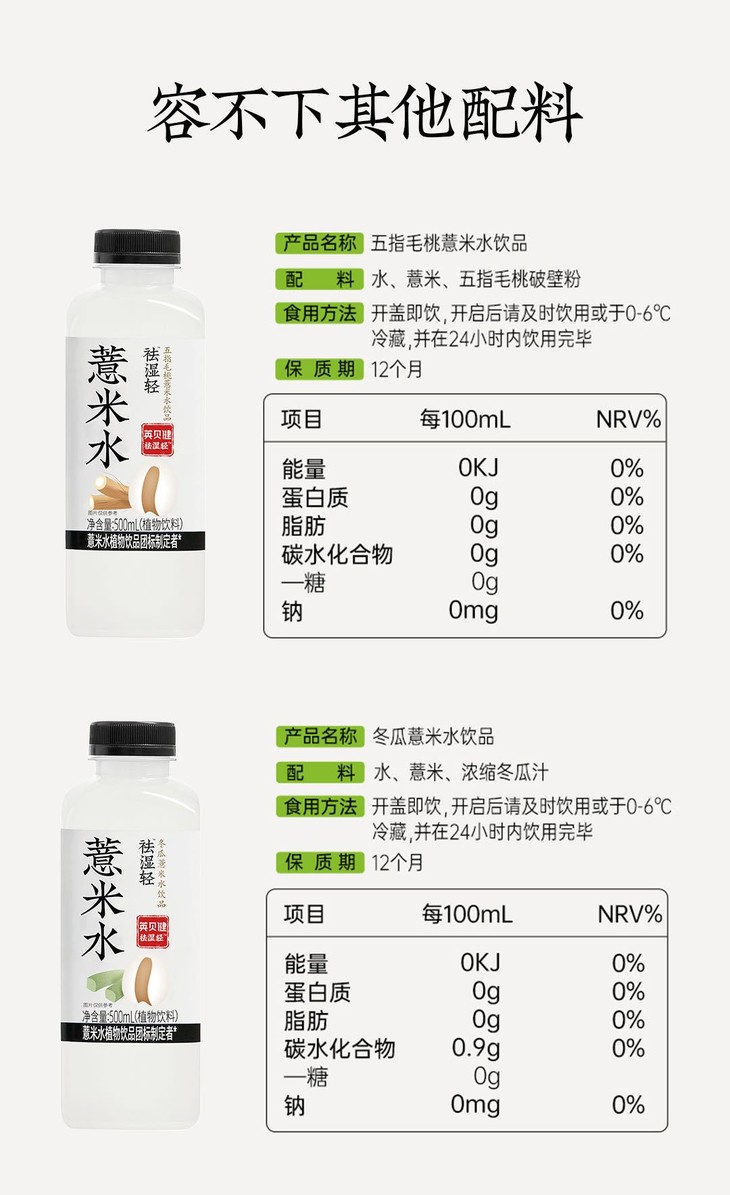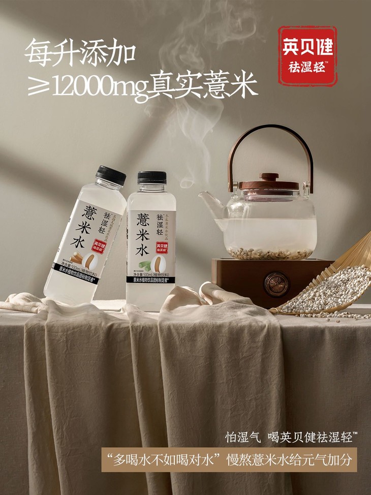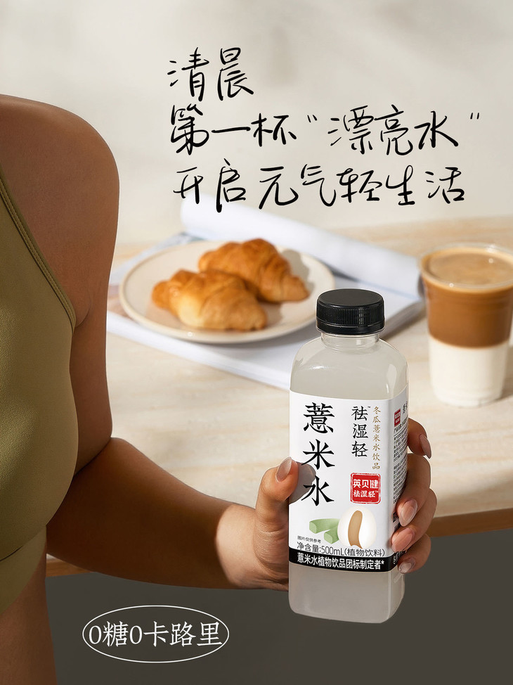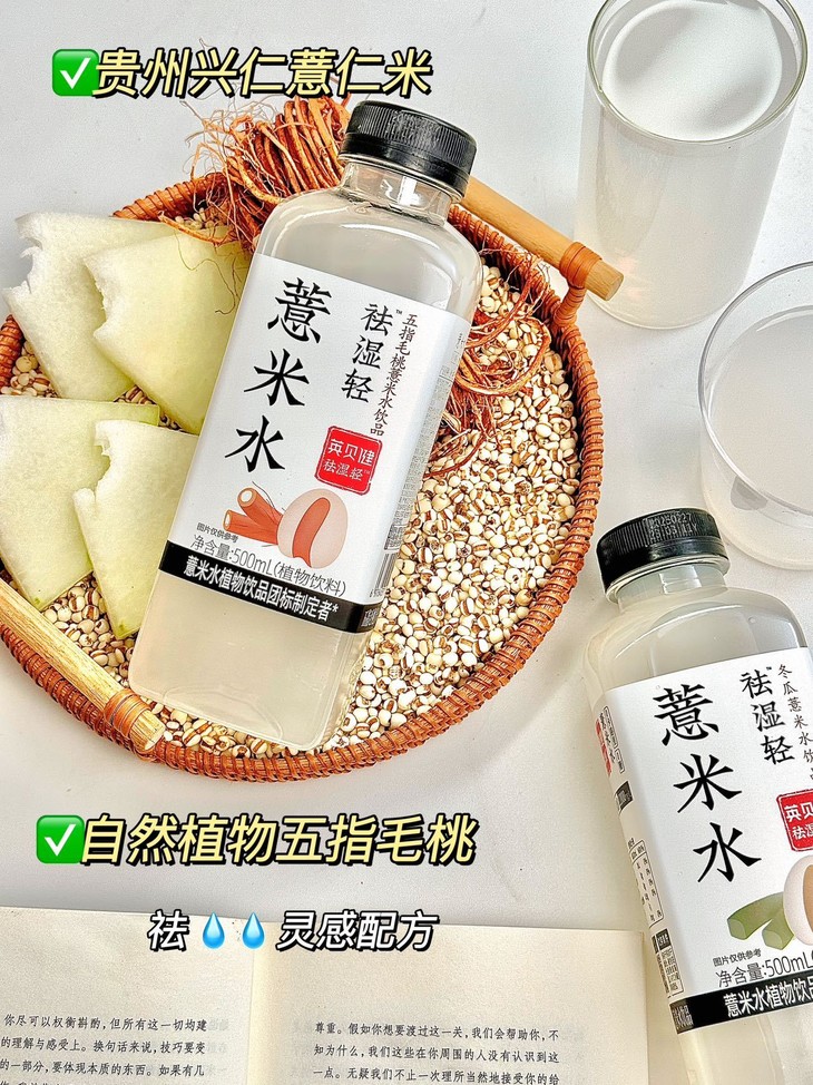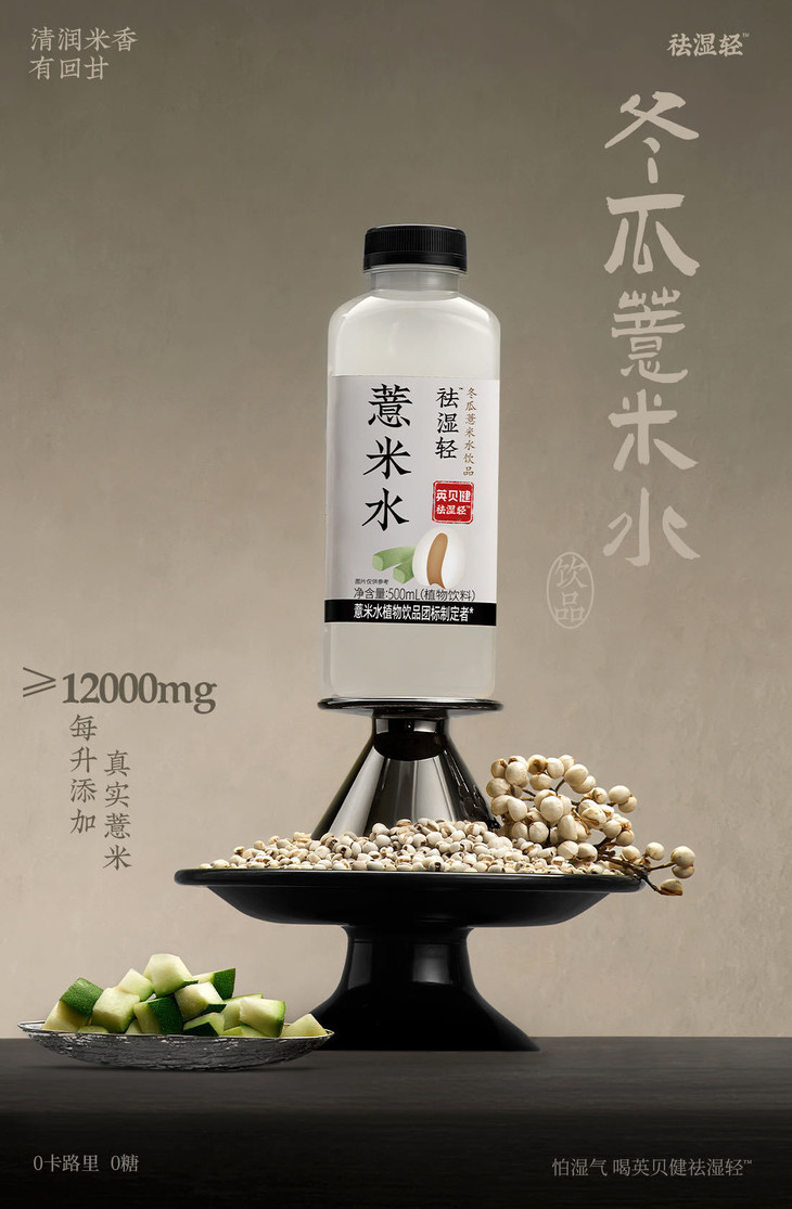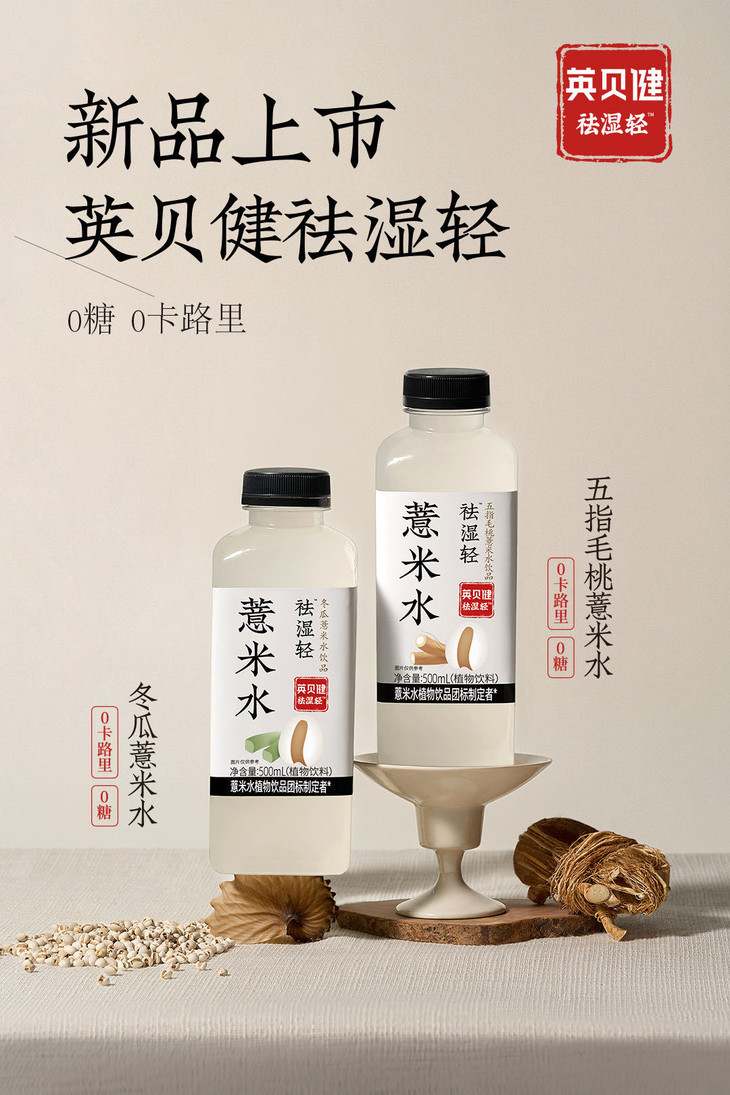 🔥英贝健推出新品——祛湿轻™️薏米水 赶走湿气💧无「湿」一身「轻」☁️ 遵循先祖留下的“养生智慧”✨食药同源 ✅薏米+五指毛桃✅薏米+冬瓜 两种口味搭配!祛湿又解渴! 这个薏米水🫖免熬煮免冲泡! 因为都给你120分钟底火慢熬好了 拧开就喝,方便😋😋 每天喝,真能感觉🈚湿一身轻