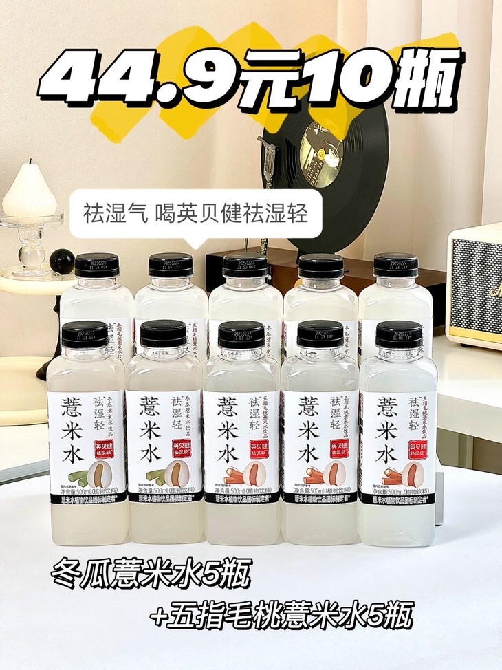 英贝健祛湿轻™️薏米水开团❹❹.❾元10瓶 五指毛桃薏米水5瓶+冬瓜薏米水5瓶!适合女孩子喝的祛湿漂亮水💧