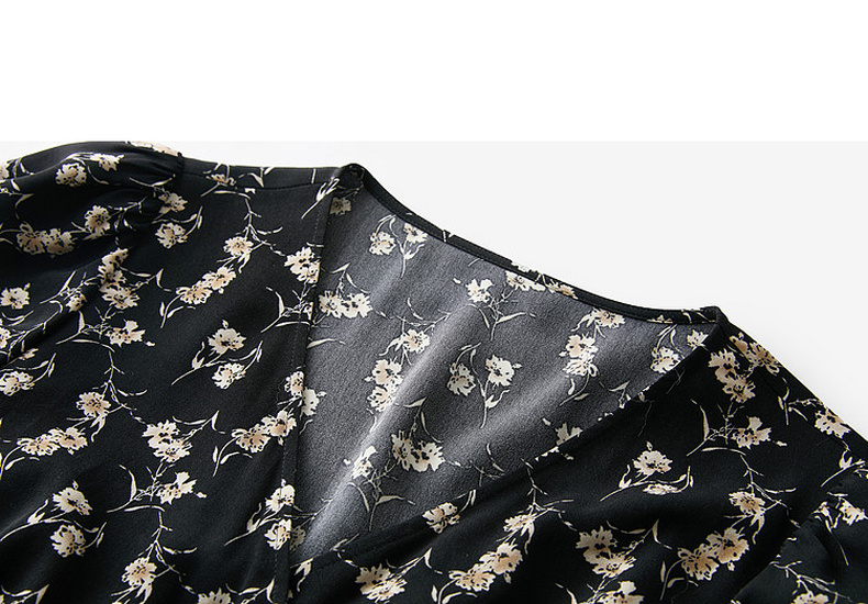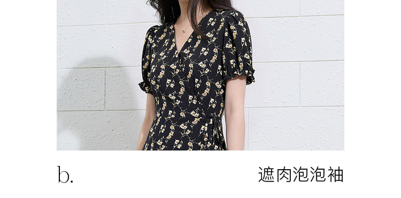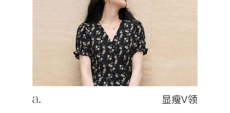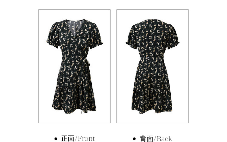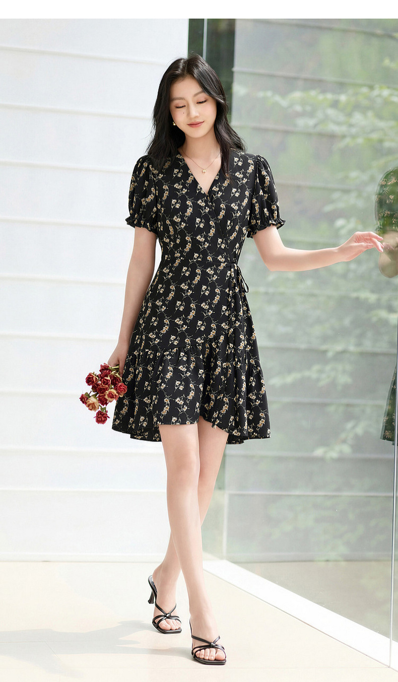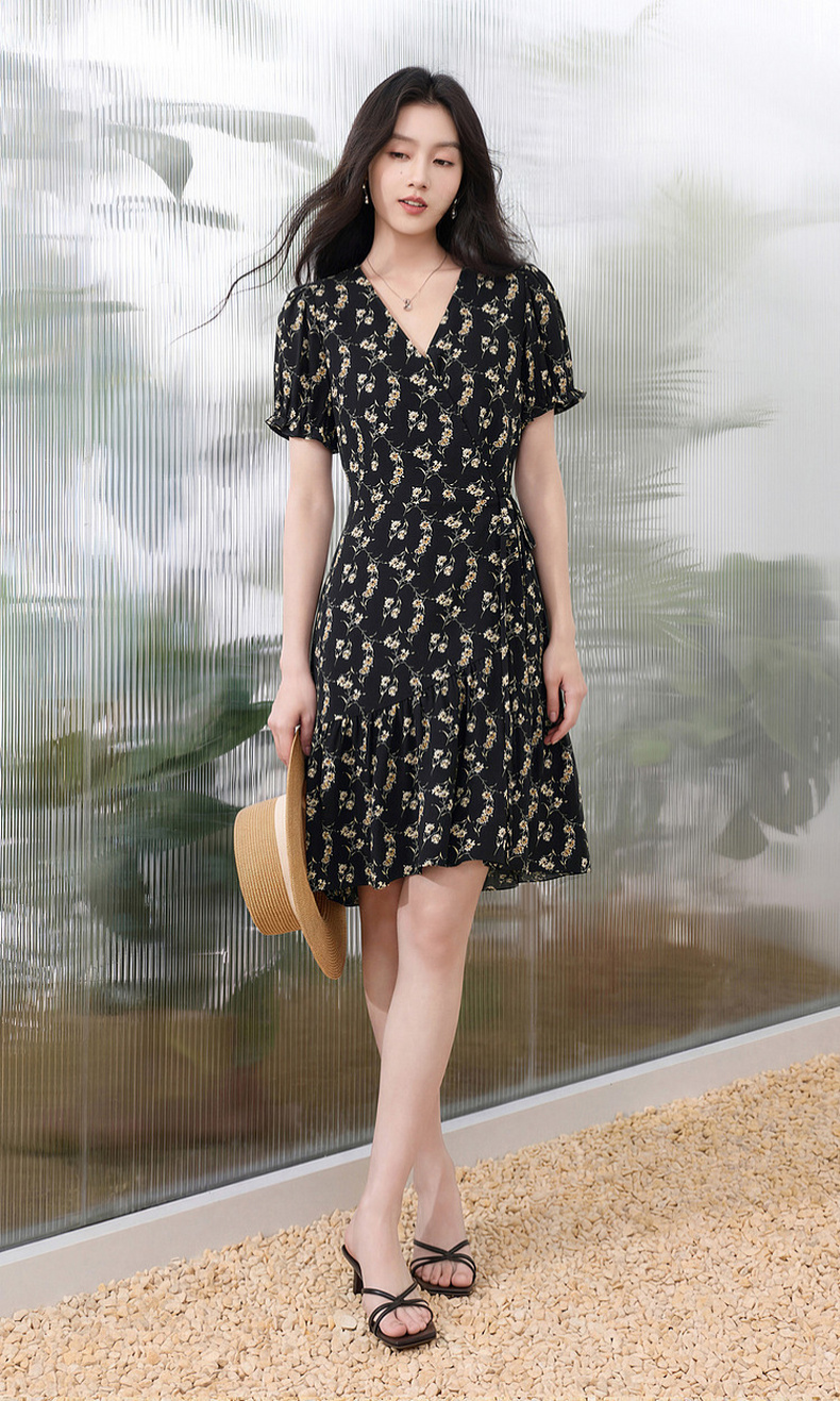 三彩2026夏季新款碎花连衣裙法式V领收腰A字裙短裙S