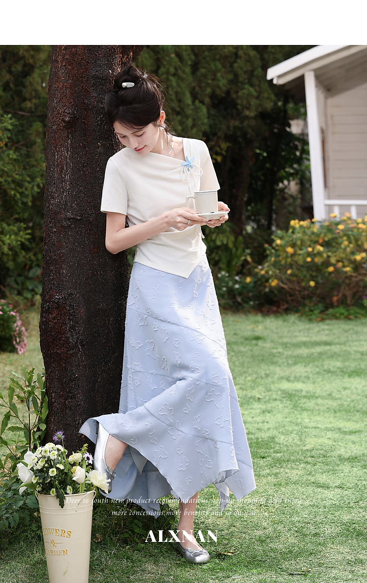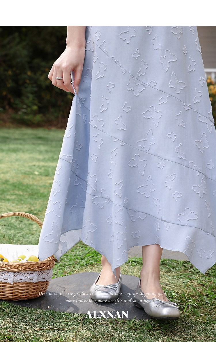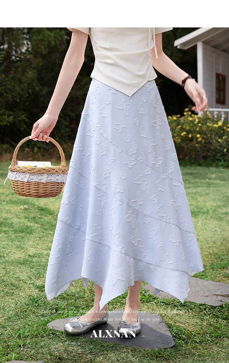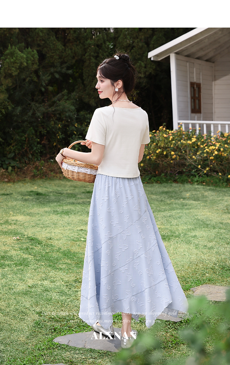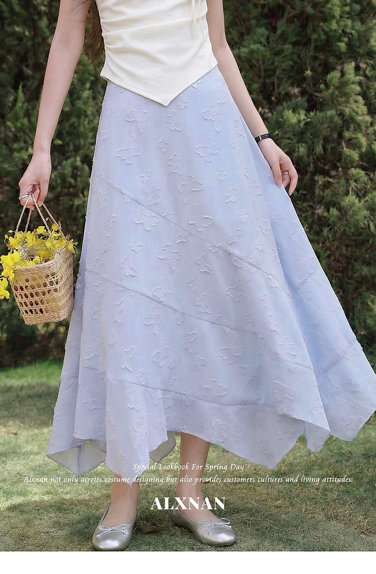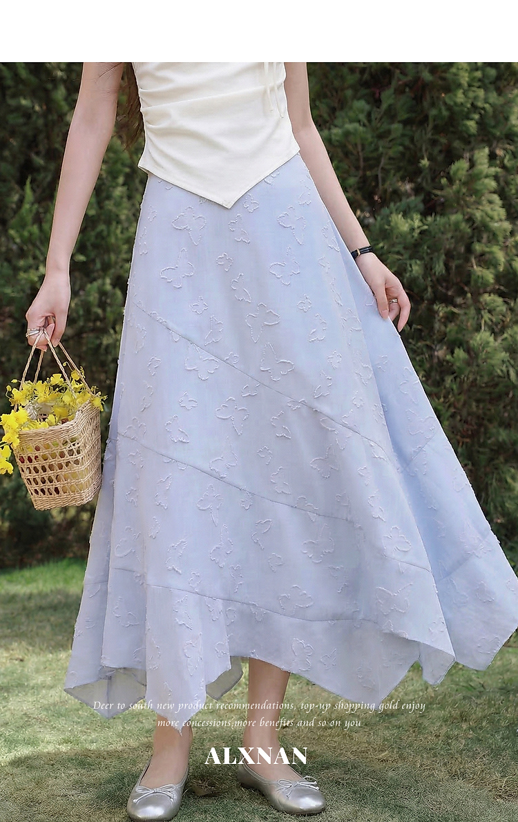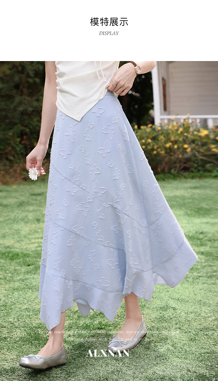 鹿向南「岸泊幻想」浅蓝色气质半身裙女夏新款提花设计A字长裙女