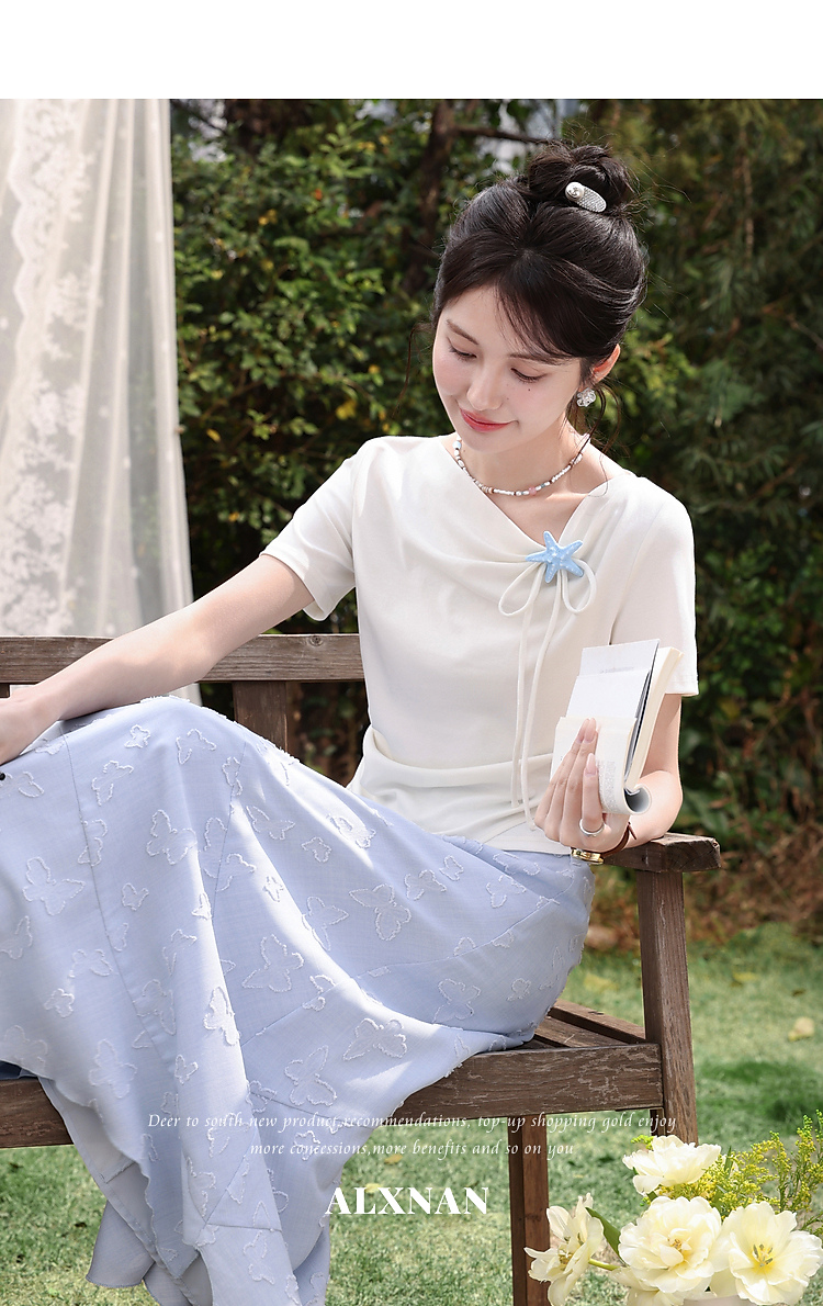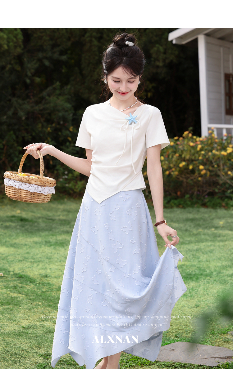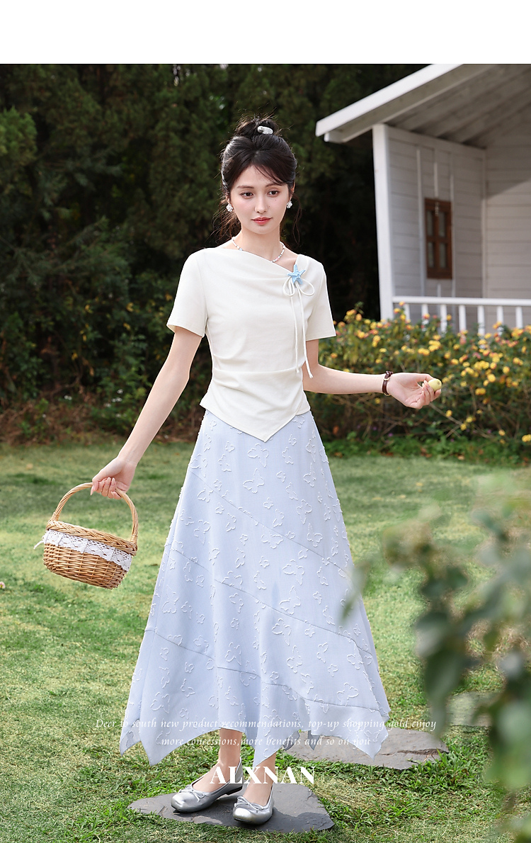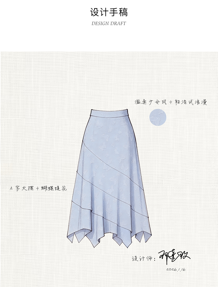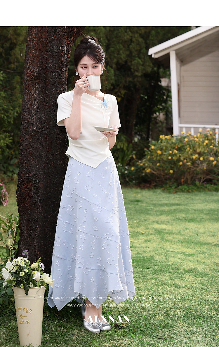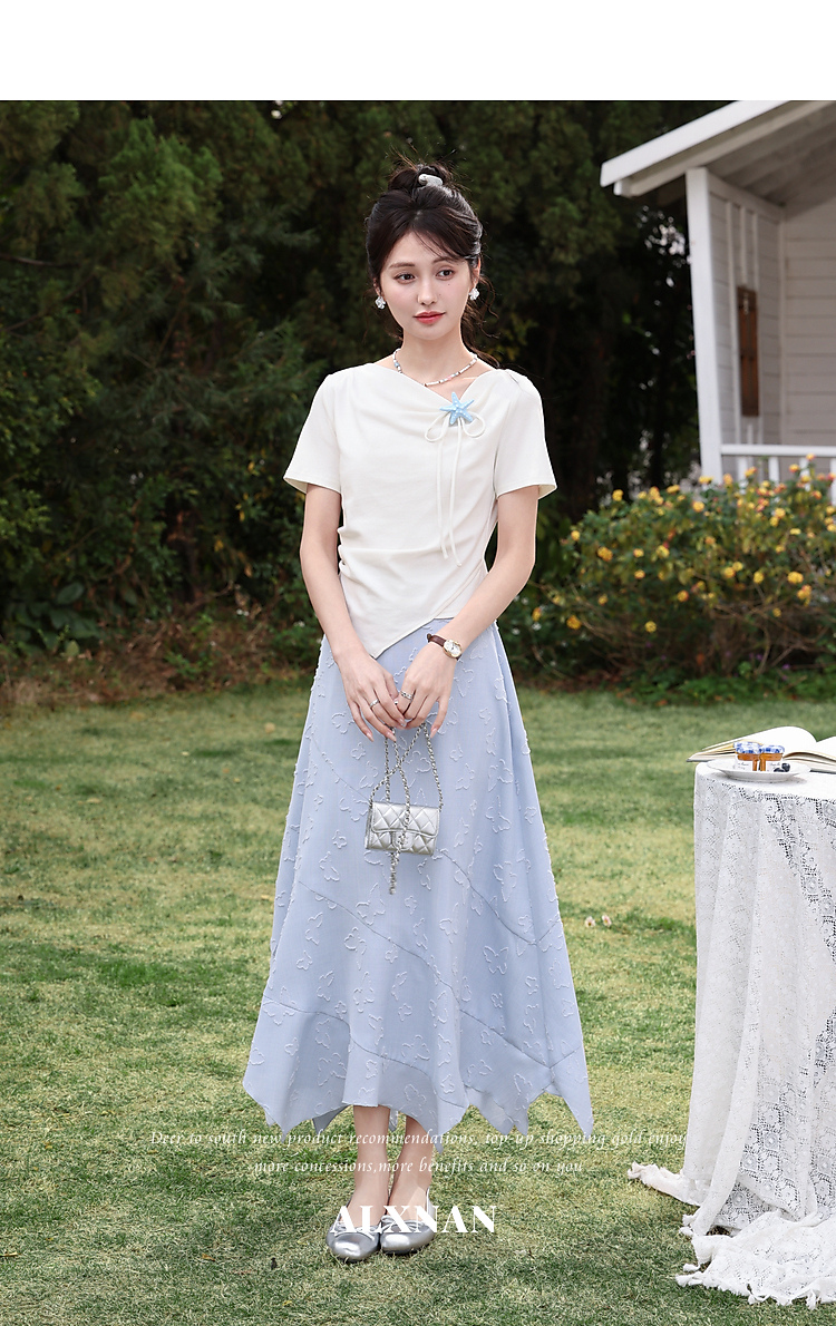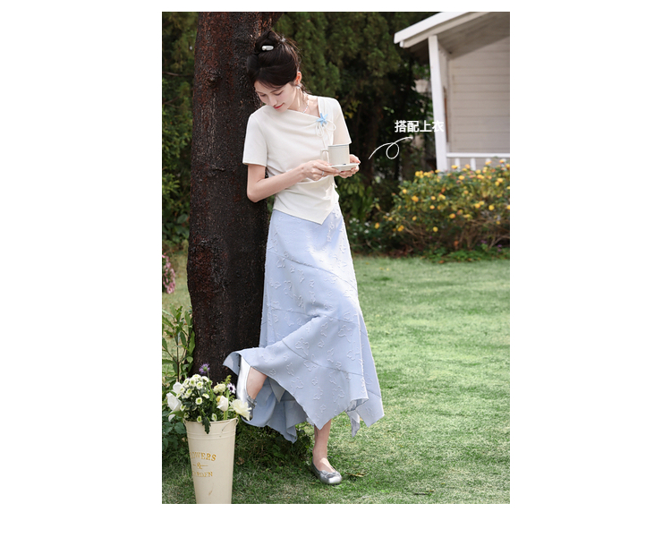 鹿向南「岸泊幻想」浅蓝色气质半身裙女夏新款提花设计A字长裙女