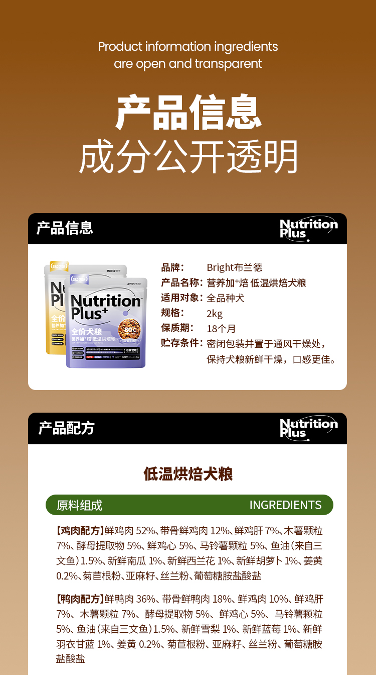 布兰德全价营养加焙烘焙犬粮 2kg/袋