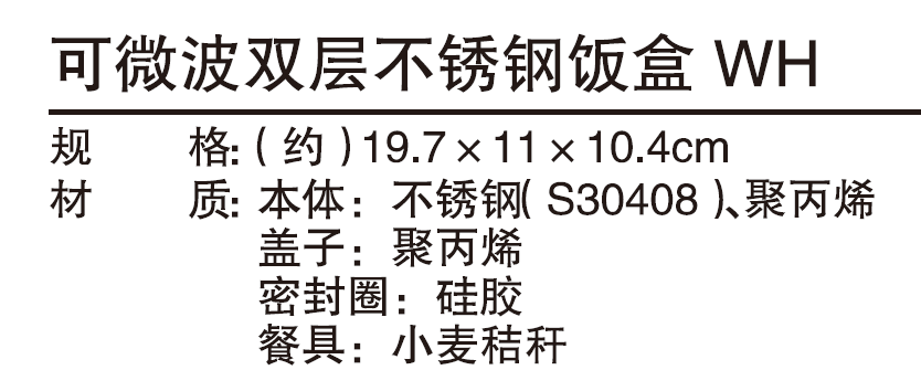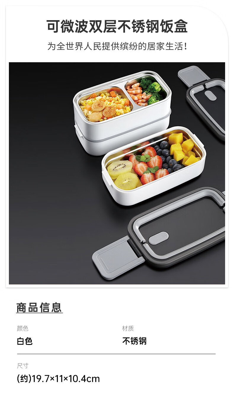 可微波单/双层不锈钢饭盒 白色