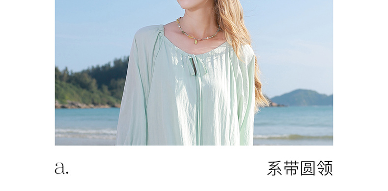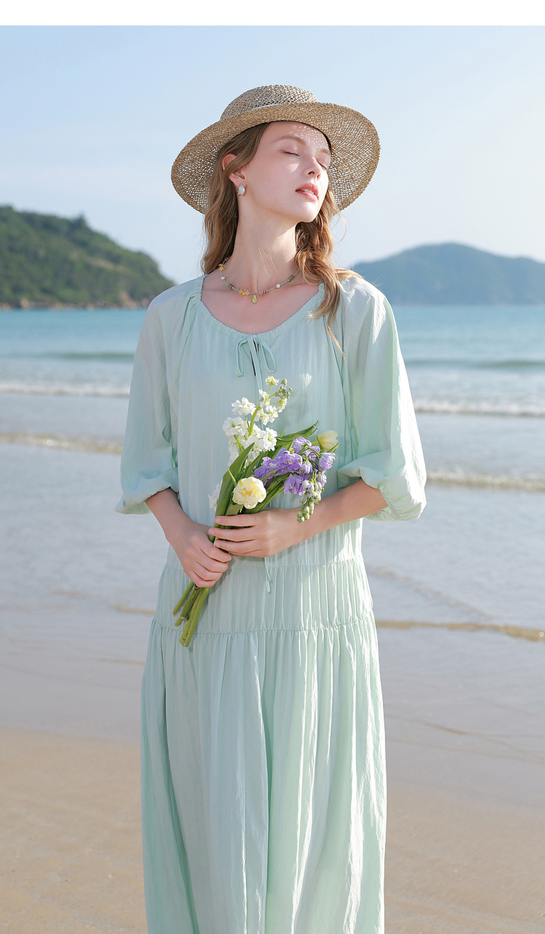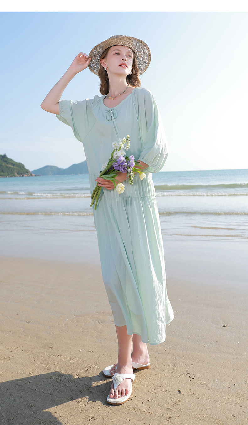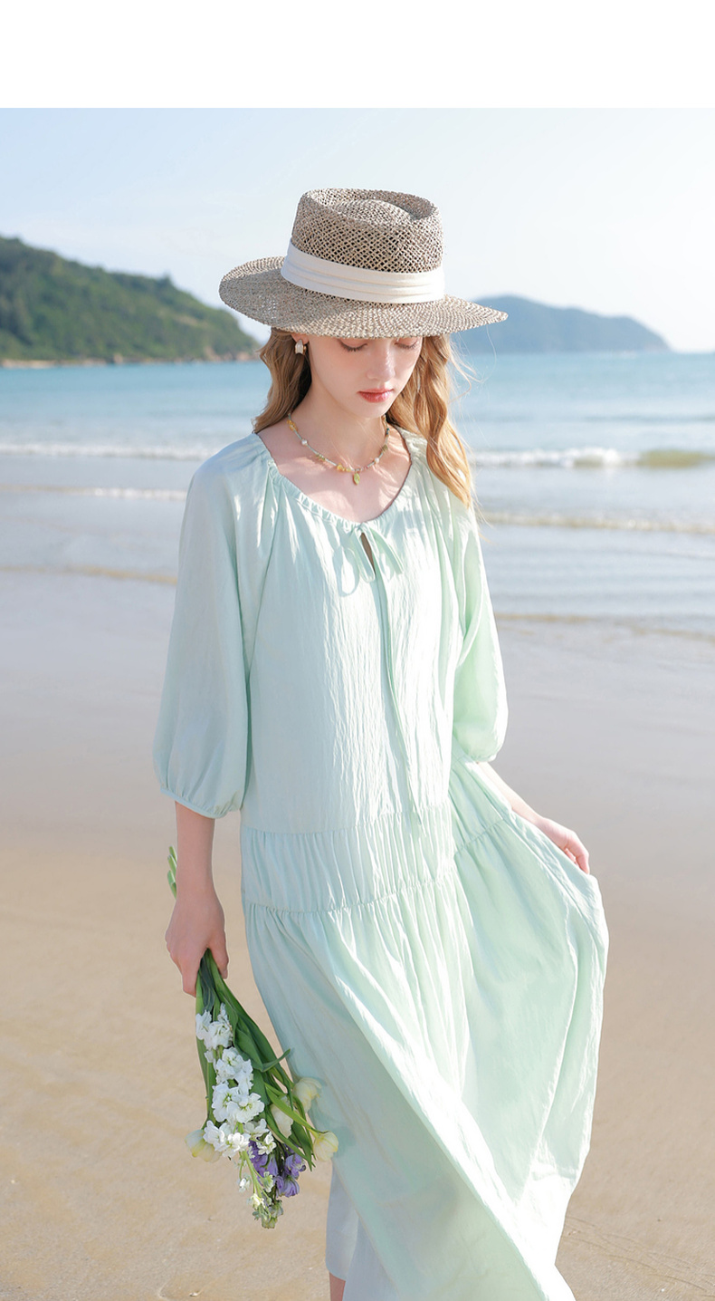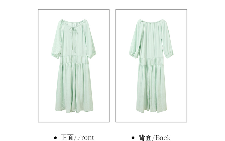 三彩2026春季新款灯笼袖A字裙法式连衣裙宽松长裙系带圆领M