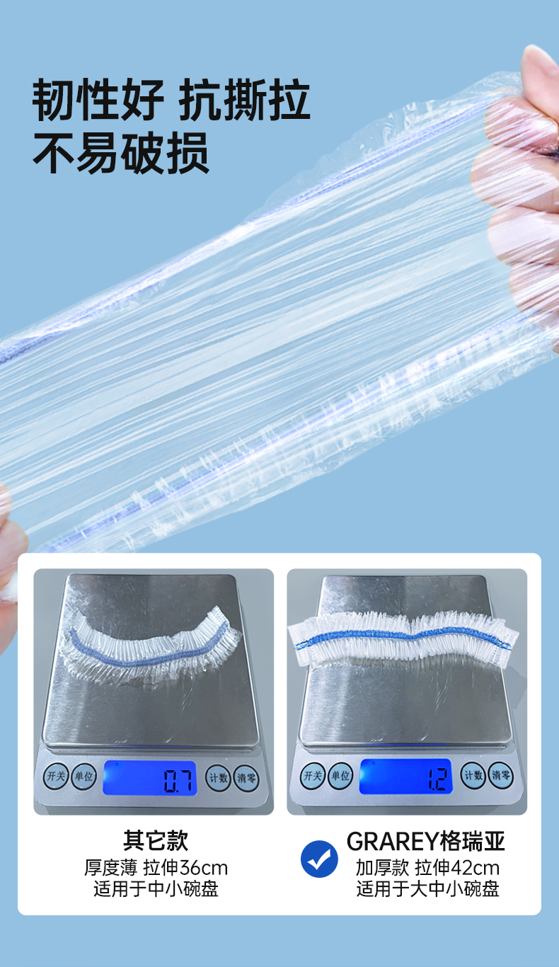 【GRAREY格瑞亚-加厚保鲜膜套-盒装】无需手撕,一开一罩,轻松告别食品保鲜问题!