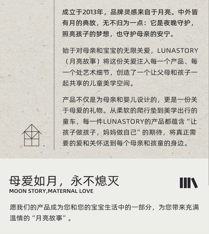- Lunastory是2017年全新推出的母婴用品高端品牌,致力于维护孩子的安全与健康。以父母之心,开发多种母婴用品,目标是让客户只用Lunastory就能打造出温馨的儿童房。